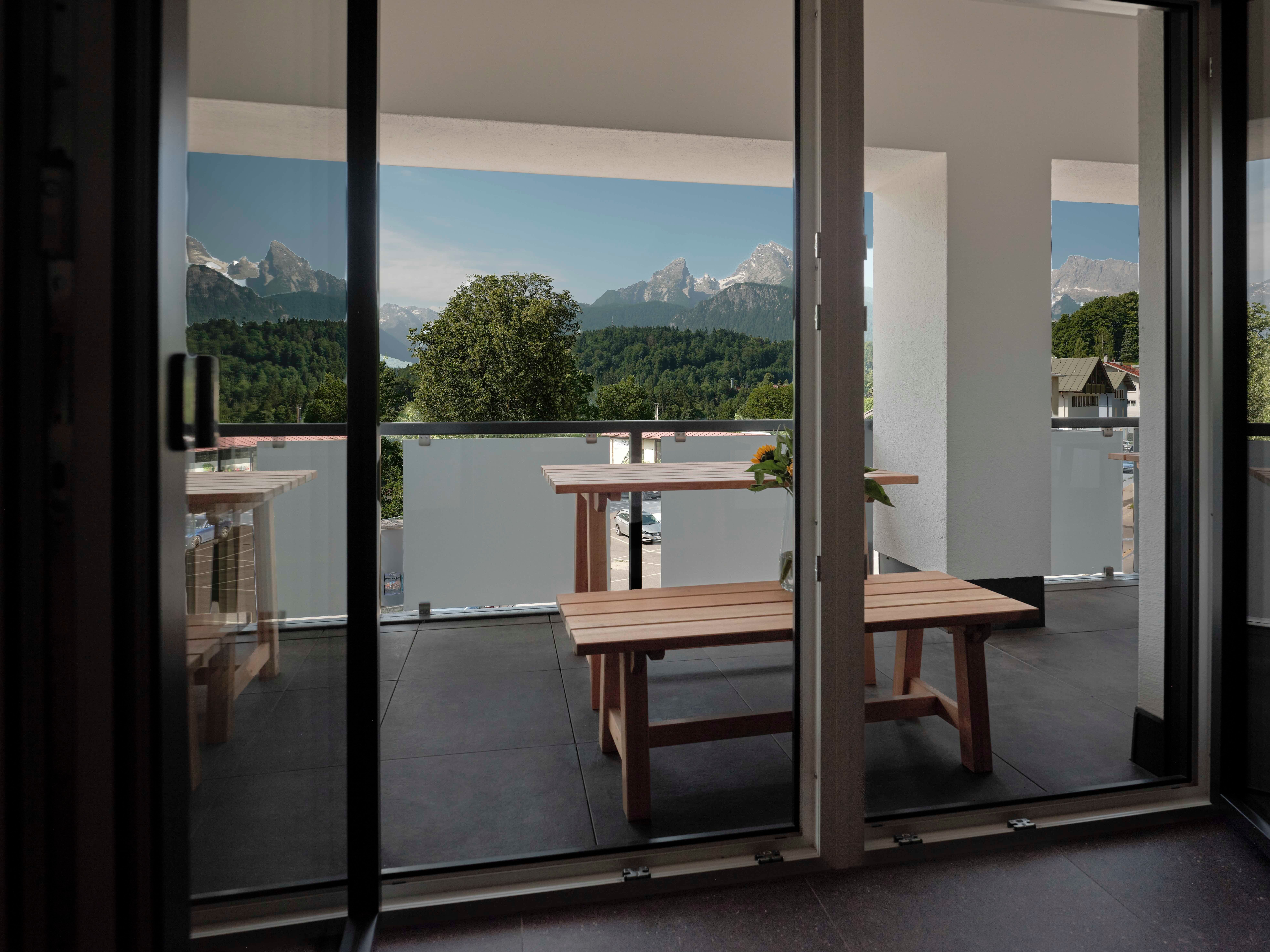 Das Rottenhöfer Retreat Alpine Penthouse. Offene Räume, klare Linien und ein weiter Blick auf den Watzmann.