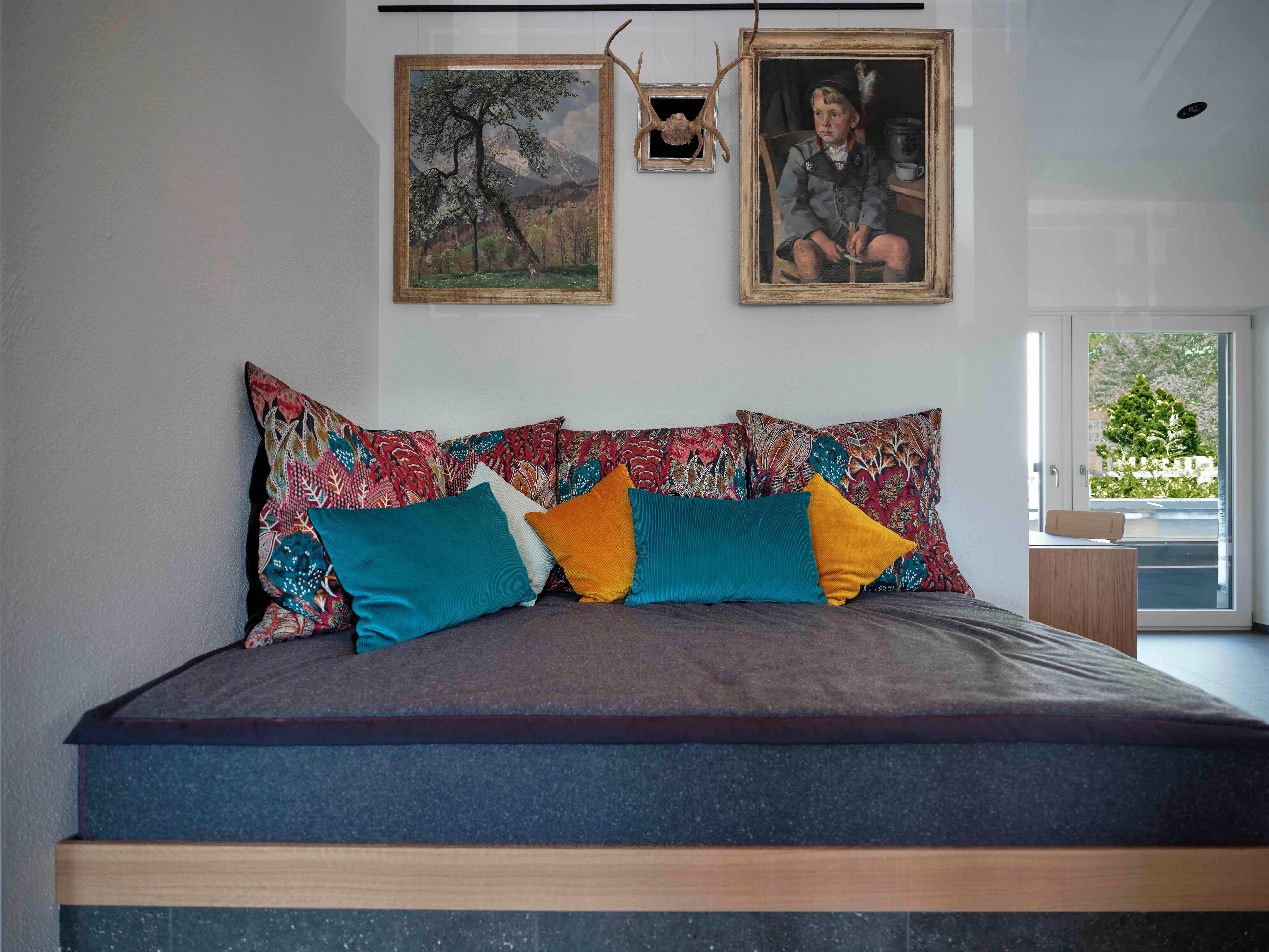 Das Penthouse liegt zentral im Ort, direkt am Luitpoldpark, in Nachbarschaft zur königlichen Villa der Wittelsbacher. Der beeindruckende Blick auf Hochkalter, Watzmann und Hohen Göll ist kein Zufall, schon die bayerischen Könige wussten diese Lage zu schätzen. Kuratierte Kunst im Innenraum unterstreicht den besonderen Charakter dieses Rückzugsortes. Zwei Parkplätze und Abstellräume für Räder, Ausrüstung und Skier sind vorhanden.