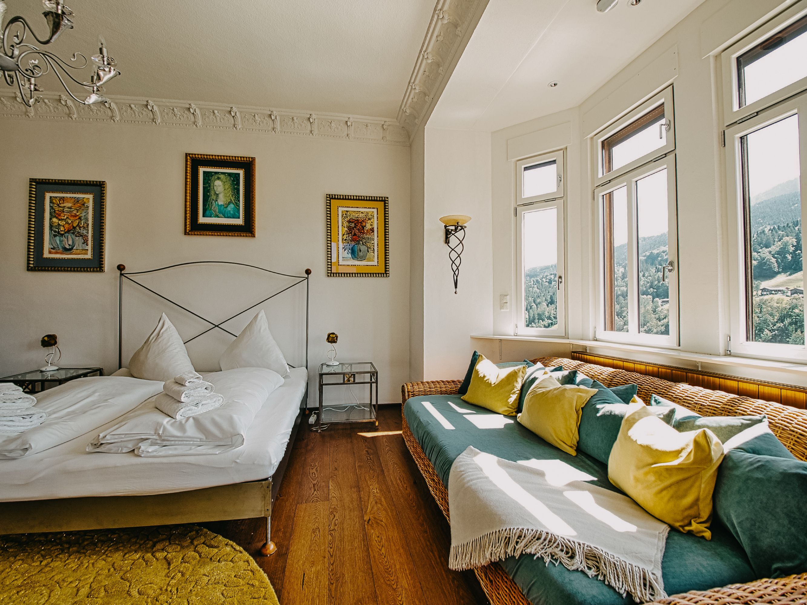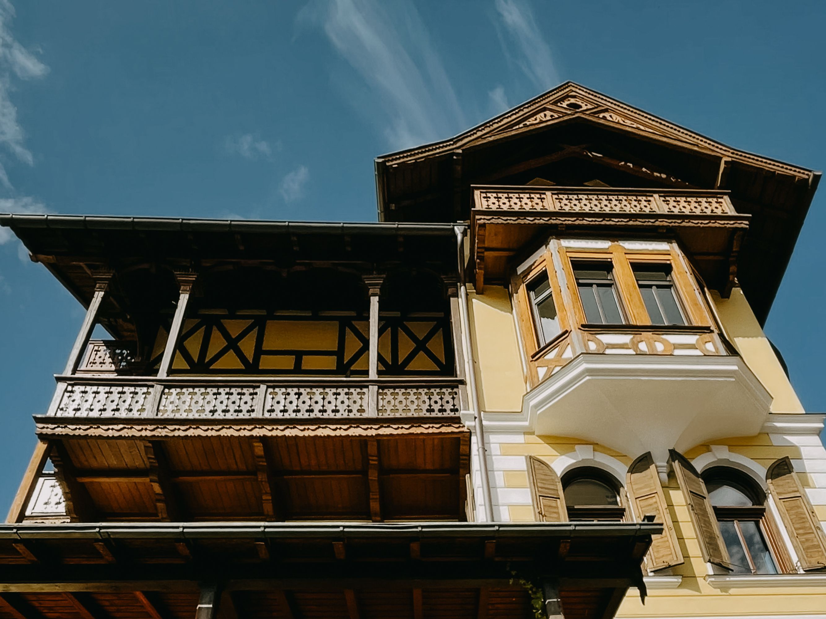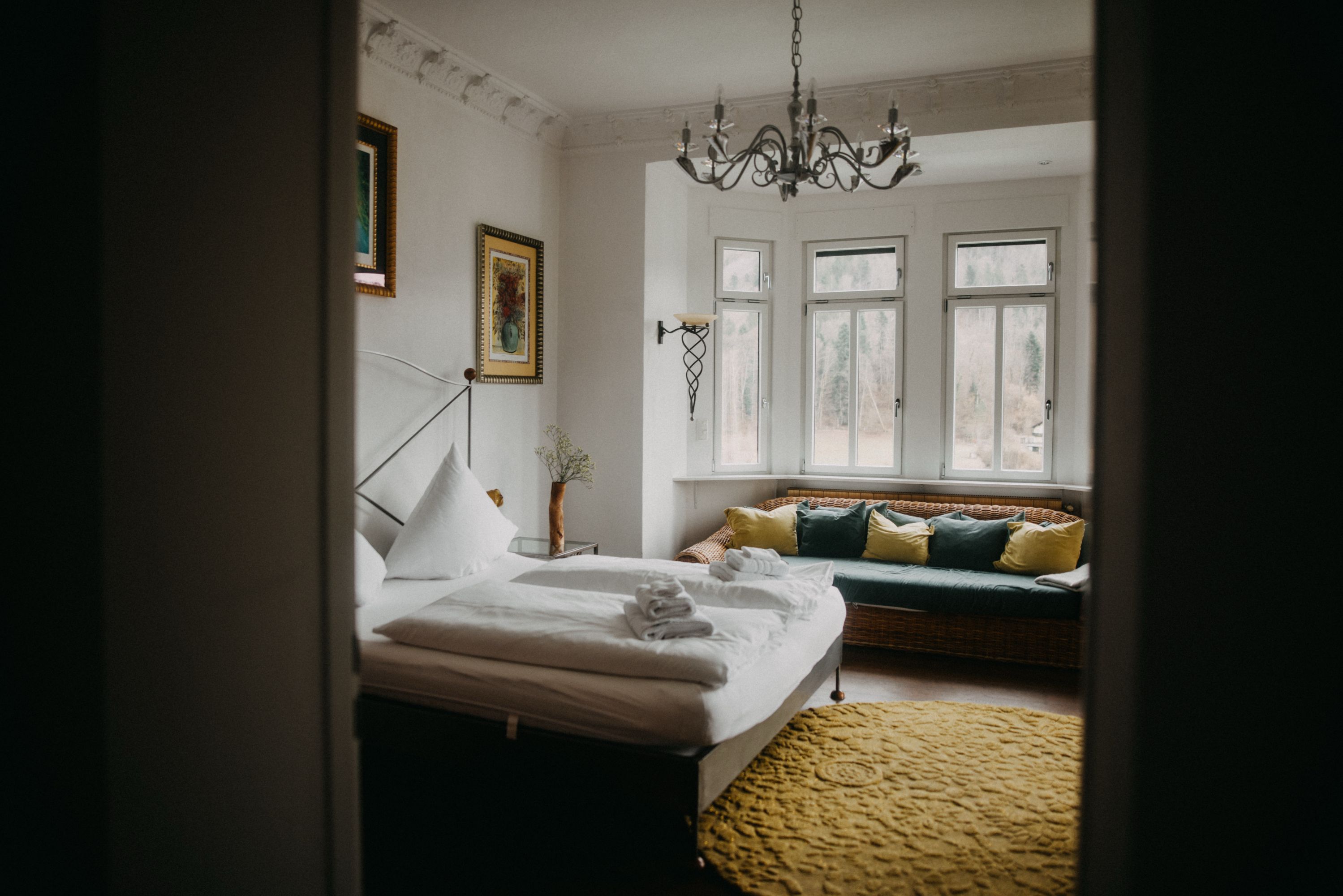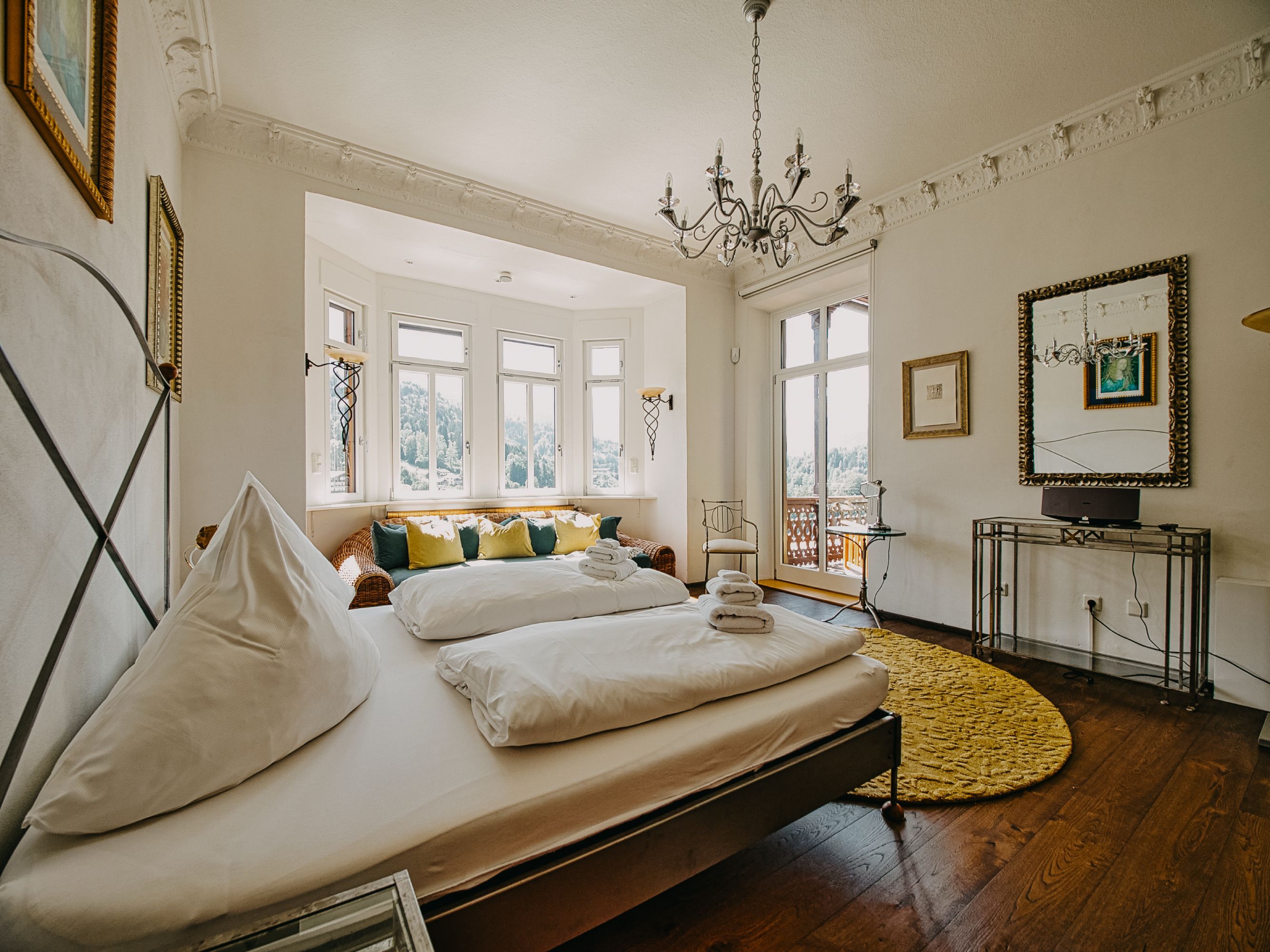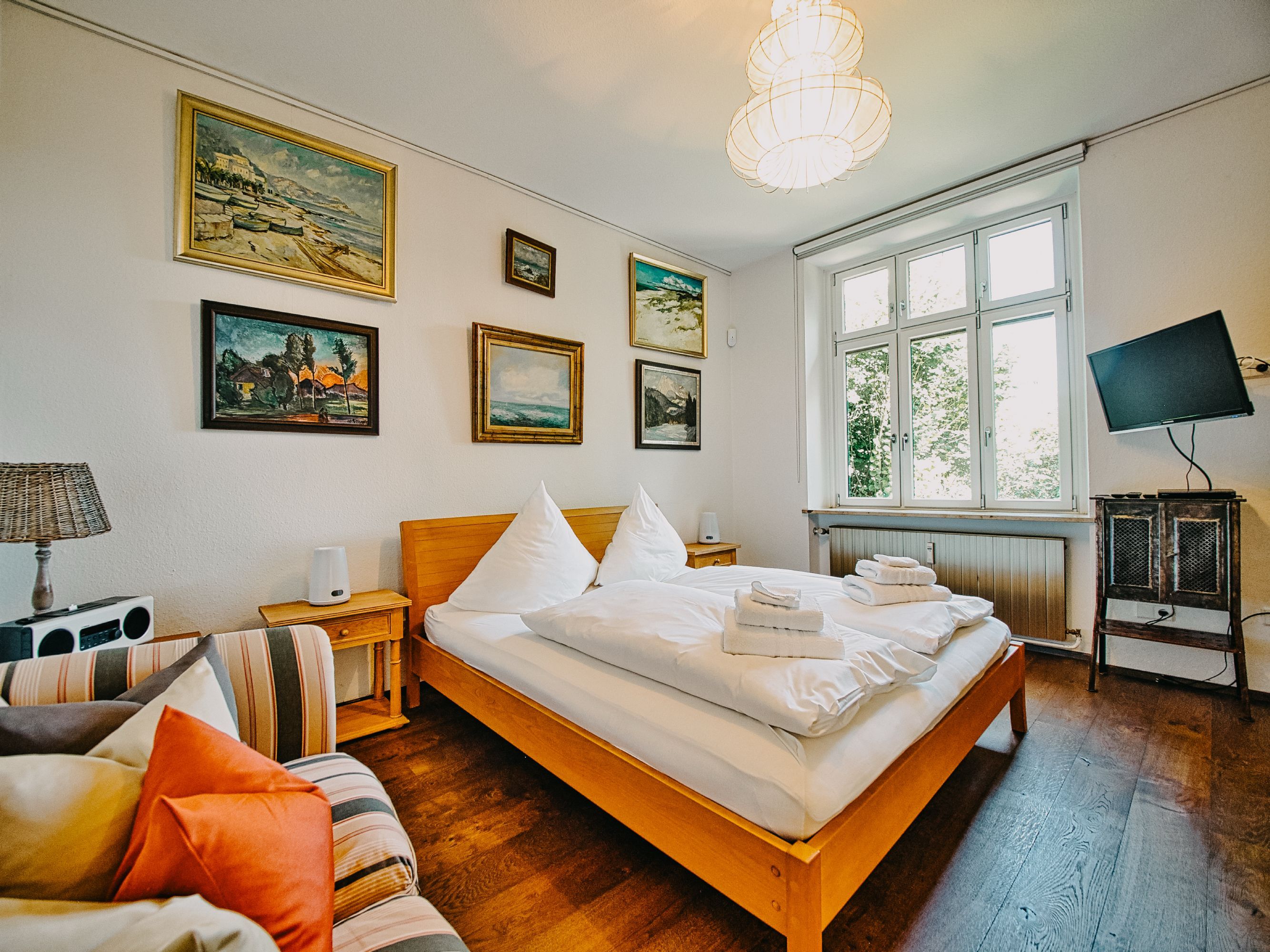 Unser Apartment liegt im ersten Stock einer Villa im alpinen Jugendstil aus dem Jahr 1899. Ein Aufzug ist vorhanden. Hohe Stuckdecken, Holzfußböden, ausgesuchte Kunst und harmonische Einrichtung sorgen für eine besondere Atmosphäre. Große Fenster geben den Blick auf die Berchtesgadener Alpen frei. Licht, Landschaft und Jahreszeiten werden Teil des Raumes.