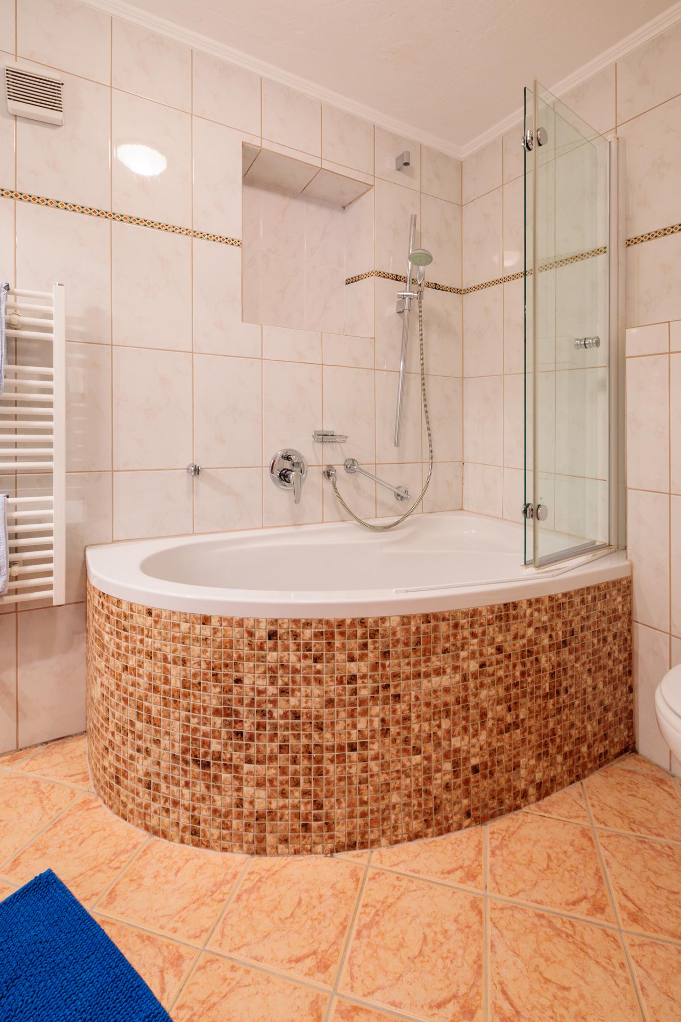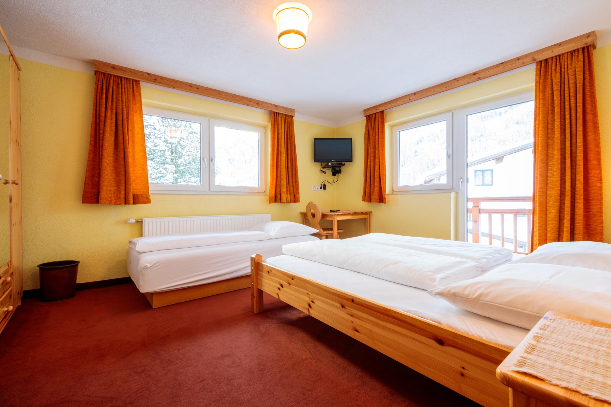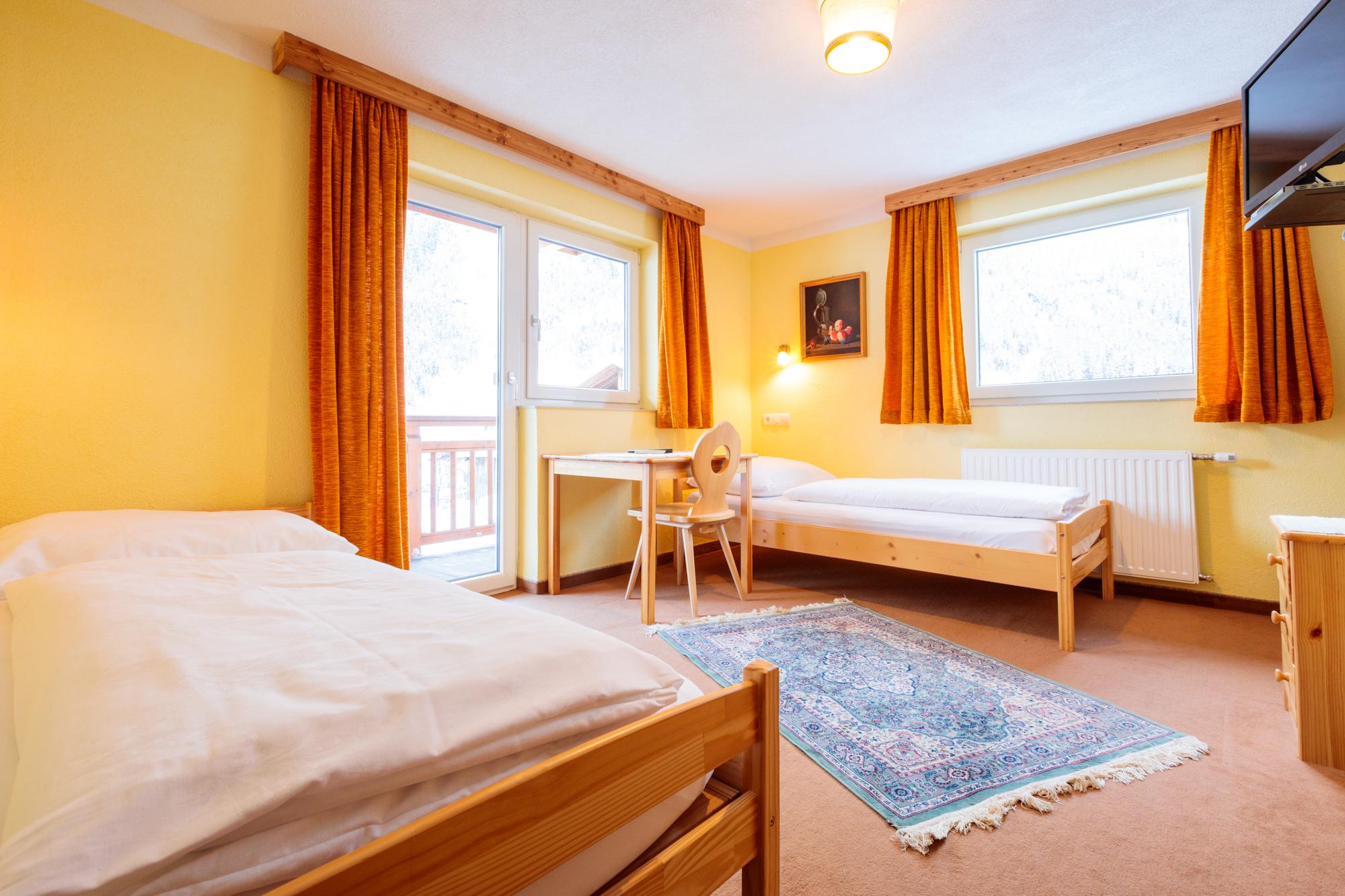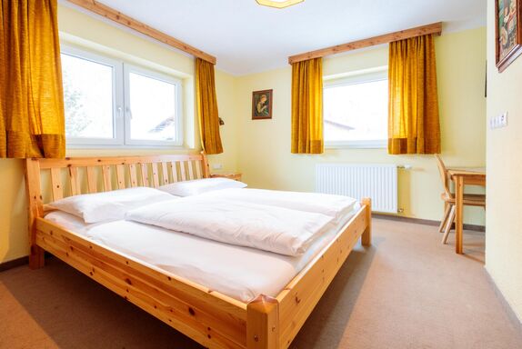Das Ferienhaus Gurschi (ca. 175 m²) mit eigenem Eingang lädt im Erdgeschoss zu geselligen Stunden in einer gemütlichen Tiroler Stube mit Kachelofen und Sat-TV ein, ideal auch für gemeinsame Mahlzeiten. Eine voll ausgestattete Küche (Cerankochfeld, Backofen, Mikrowelle, Kühlschrank mit Gefrierfach, Spülmaschine, Filterkaffeemaschine, Wasserkocher und vieles mehr), zwei Doppelzimmer – jeweils mit Zugang zu einem gemeinsamen Badezimmer mit Dusche/WC – sowie ein Romantik-Doppelzimmer mit Badewanne/WC runden das Angebot im Erdgeschoss ab.