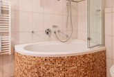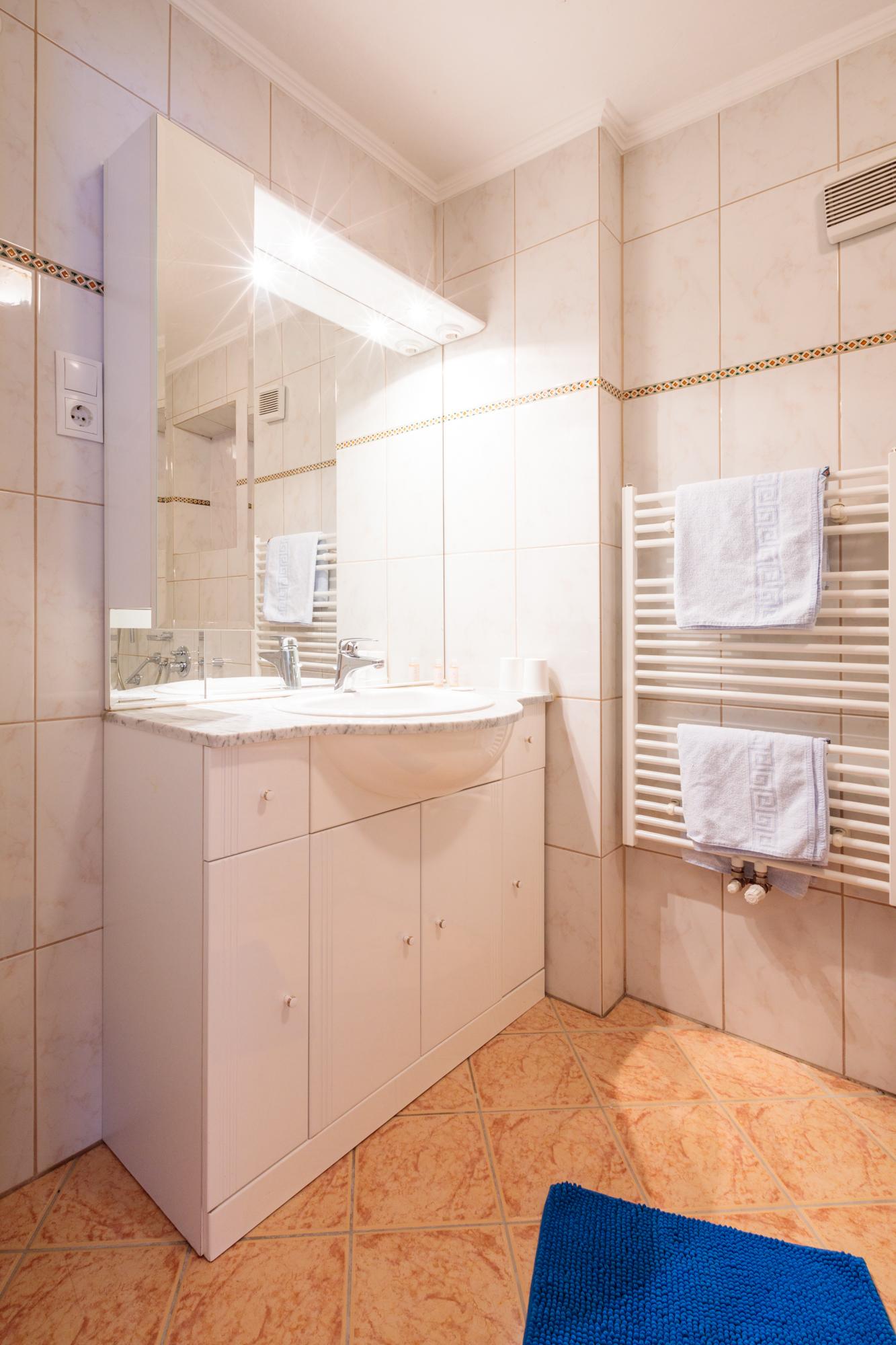 Im ersten Stock befindet sich ein Einzelzimmer mit Dusche/WC, ein Zweibett- und ein Dreibettzimmer mit einem gemeinsamen Badezimmer mit Dusche/WC, sowie ein Doppelzimmer und ein Zweibettzimmer, die sich ebenfalls ein Badezimmer mit Dusche/WC teilen. Bis auf das Einzelzimmer verfügen alle Zimmer über einen eigenen, möblierten Balkon. Vom privaten Kellerabteil führt das Stiegenhaus direkt ins Ferienhaus. Ein weiteres Highlight ist der großzügige, möblierte Garten mit Grillmöglichkeit und die weitläufige möblierte Terrasse, die perfekt zum Entspannen und Genießen der Natur einladen.