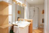 Stilvolle, sehr gemütliche ca. 60 m² Parterrewohnung mit Garten (nur für diese Wohnung). 2 getrennte Schlafzimmer mit Doppelbett + 3.Bett + Sat-TV, 1 separate Wohnküche mit Geschirrspüler, Cafemaschine, Wasserkocher, Toaster, 4-Platten-Ceranfeld + Backrohr, Kühlschrank mit Gefrierfach, Besteck und Geschirr für bis zu 7 Personen + Spülmittel vorhanden, Vorraum mit (Schi-)Schuregal .