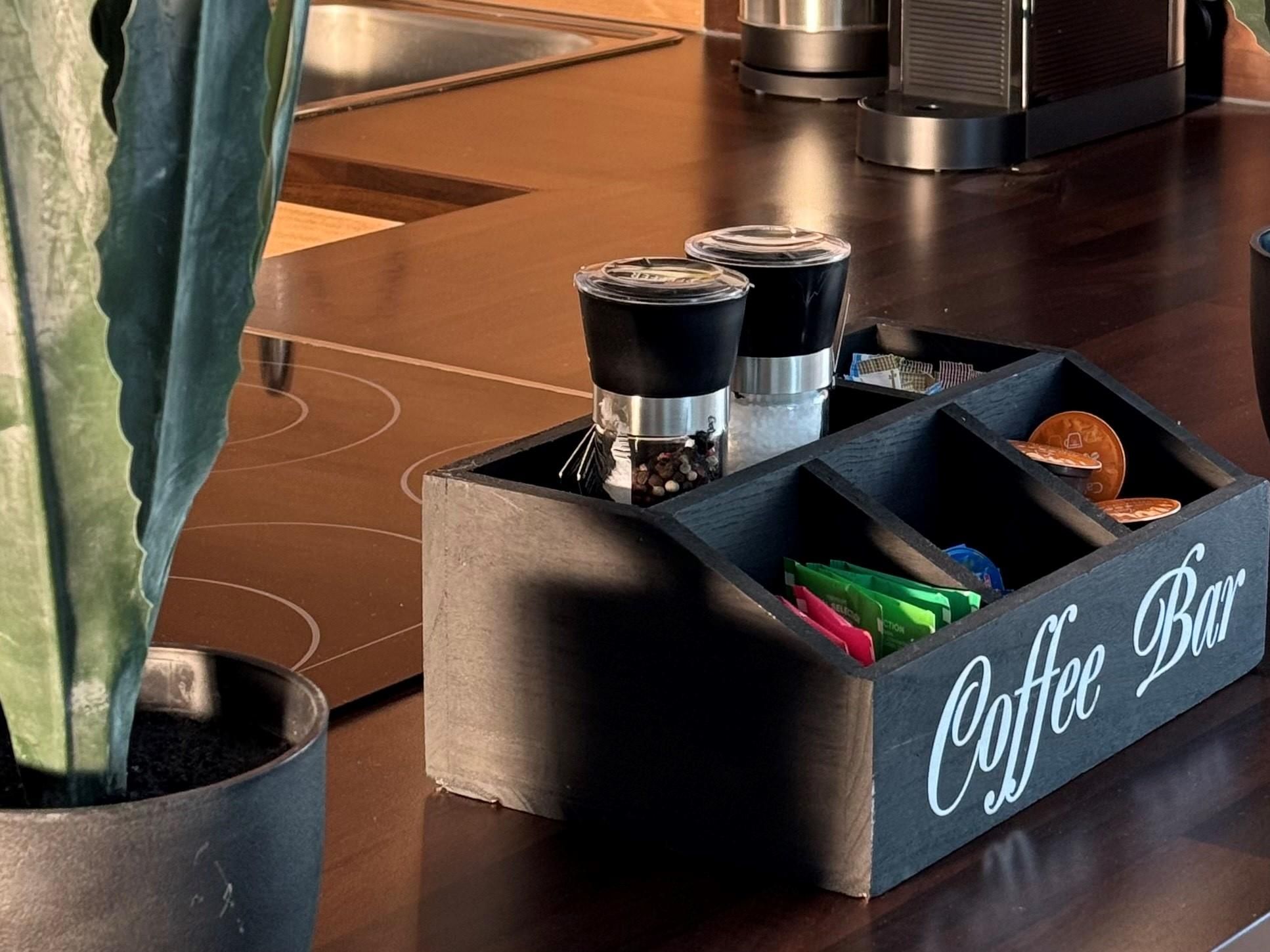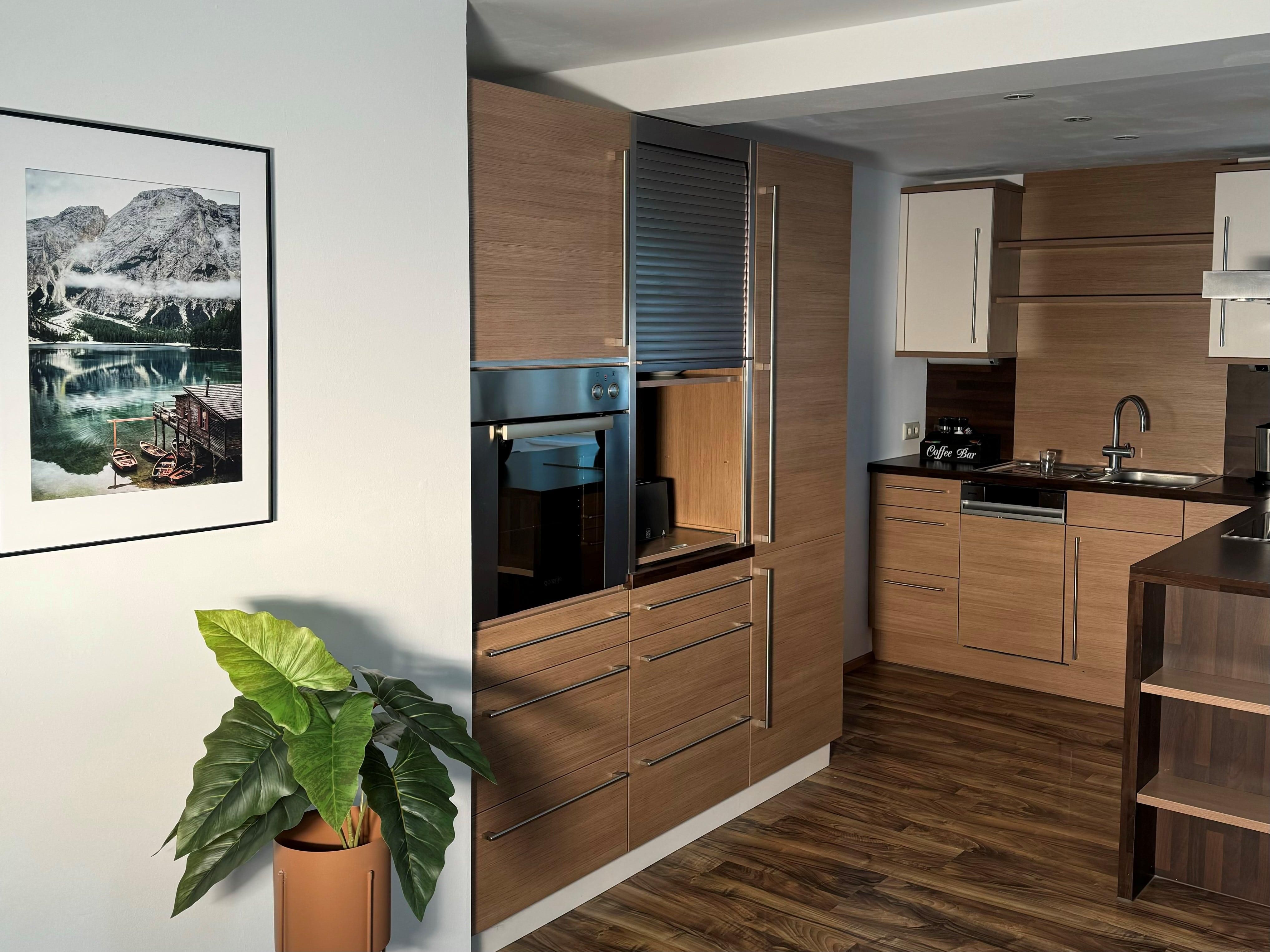 Im grossen Badezimmer befindet sich eine Dusche und eine zusätzliche Eckbadewanne. Zu den weiteren Annehmlichkeiten zählen eine Waschmaschine mit Bügelaustattung, kostenfreie Wasch- und Pflegeprodukte, Kaffeemaschine, Spülmaschine, … .