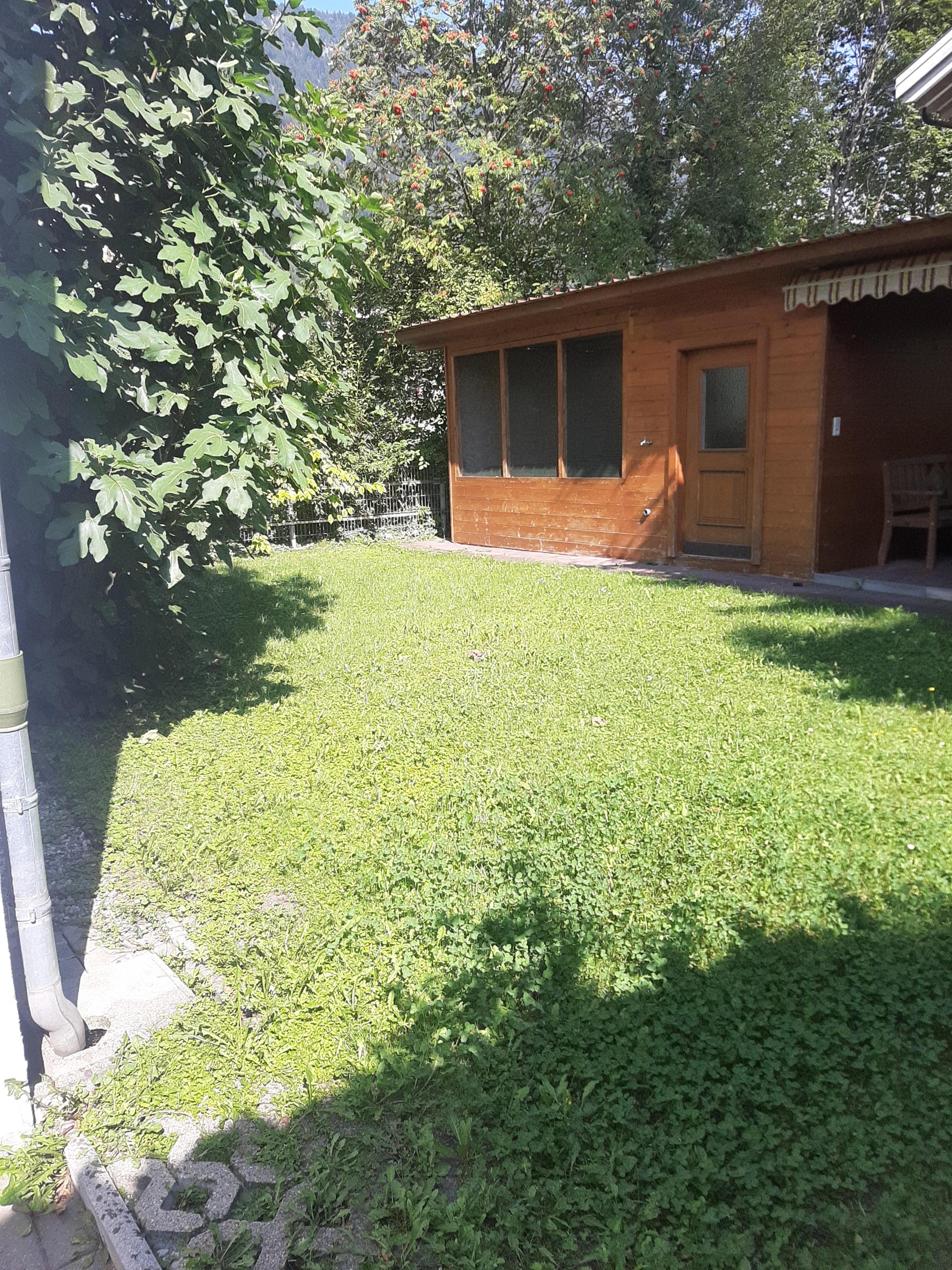 Der Aussengarten des Apartments, welches sich im ersten Stock befindet, ladet auch ein, den Abend mal im Freien ausklingen zu lassen.