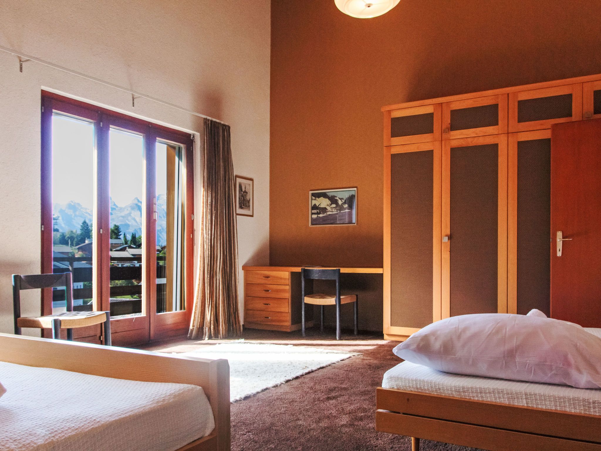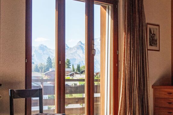 Weber 2, 3-Zimmer-Wohnung 190 m2 im 5. Stock. Geräumig, einfach eingerichtet: grosses Wohn-/Esszimmer mit offenem Kamin und Kabel-TV. Ausgang zum Balkon. 1 grosses Zimmer mit 2 Betten (90 cm, Länge 200 cm), 1 Schlafmöglichkeit (90 cm, Länge 190 cm). Ausgang zum Balkon, Richtung Süden und Richtung Osten. 1 Zimmer mit 1 Bett (90 cm, Länge 190 cm), 1 Doppelbett (2 x 90 cm, Länge 190 cm), Bad/Dusche/WC. Ausgang zum Balkon, Richtung Süden und Richtung Westen. Küche (4 Kochplatten, Backofen, Geschirrspüler, Toaster, Wasserkocher, elektrische Kaffeemaschine, Racletteofen, Fondue Set (Chinoise, Käse)). Dusche/WC. Balkon, Ostlage und Westlage. Schöne Sicht auf das Tal. Zur Verfügung: Internet (WLAN, gratis). Garage (2 Autos). Bitte beachten: Nichtraucher-Unterkunft. Maximal 1 Haustier/Hund erlaubt.