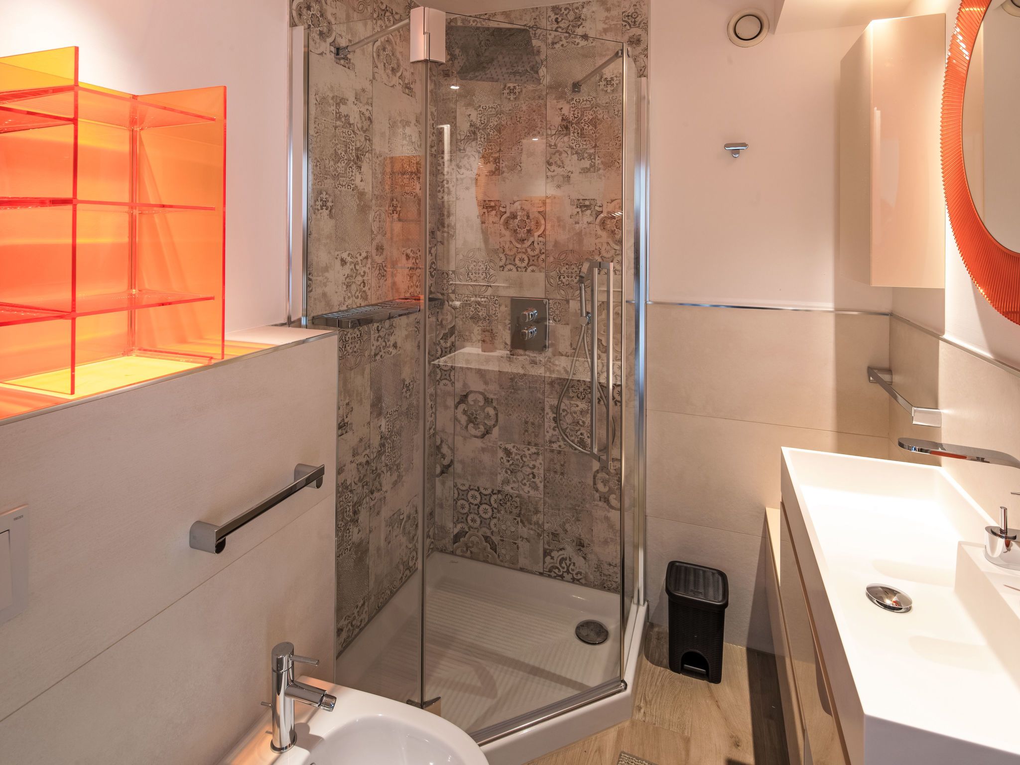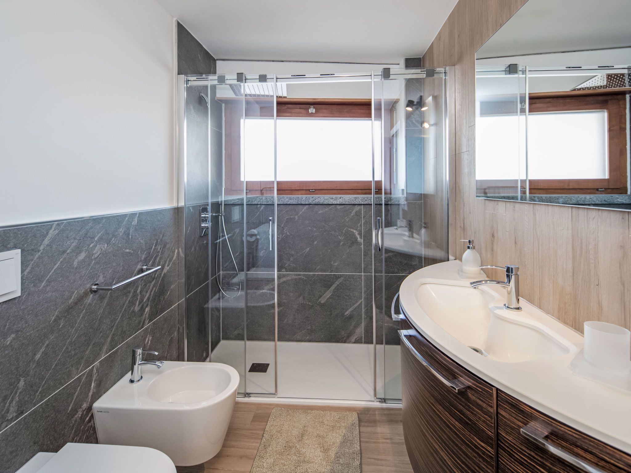 Rond-Point Apt. 20, 5-Zimmer-Wohnung 115 m2 im 3. Stock. Objekt geeignet für 4 Erwachsene + 3 Kinder. Geräumig, teilweise renoviert, komfortabel und gemütlich eingerichtet: Wohn-/Esszimmer mit Kabel-TV. Ausgang zum Balkon, Richtung Südwesten. 1 grosses Zimmer mit 1 franz. Bett (180 cm, Länge 200 cm), Dusche/Bidet/WC. Ausgang zum Balkon, Richtung Süden. 1 Zimmer mit 2 Betten (90 cm, Länge 200 cm). Ausgang zum Balkon, Richtung Norden. 1 kleines Zimmer mit 1 Klappbett. Ausgang zum Balkon, Richtung Norden. 1 Zimmer mit 2 Betten (90 cm, Länge 200 cm). Ausgang zum Balkon, Richtung Norden. Offene Küche (Backofen, Geschirrspüler, 4 Induktionskochplatten, Wasserkocher, Tiefkühler, elektrische Kaffeemaschine, Kapseln für die Kaffeemaschine (Nespresso) extra, Kombinationsmikrowelle). Dusche/WC, Dusche/Bidet/WC. Grosser Balkon, Südwestlage. Terrassenmöbel. Schöne Sicht auf die Berge und die Ortschaft. Zur Verfügung: Haartrockner. Internet (Wireless LAN, gratis). Garage (1 Auto), Höhe 175 cm. Bitte beachten: geeignet für Familien. Nichtraucher-Unterkunft.