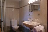 Das Badezimmer verfügt über Dusche, Waschbecken und WC.