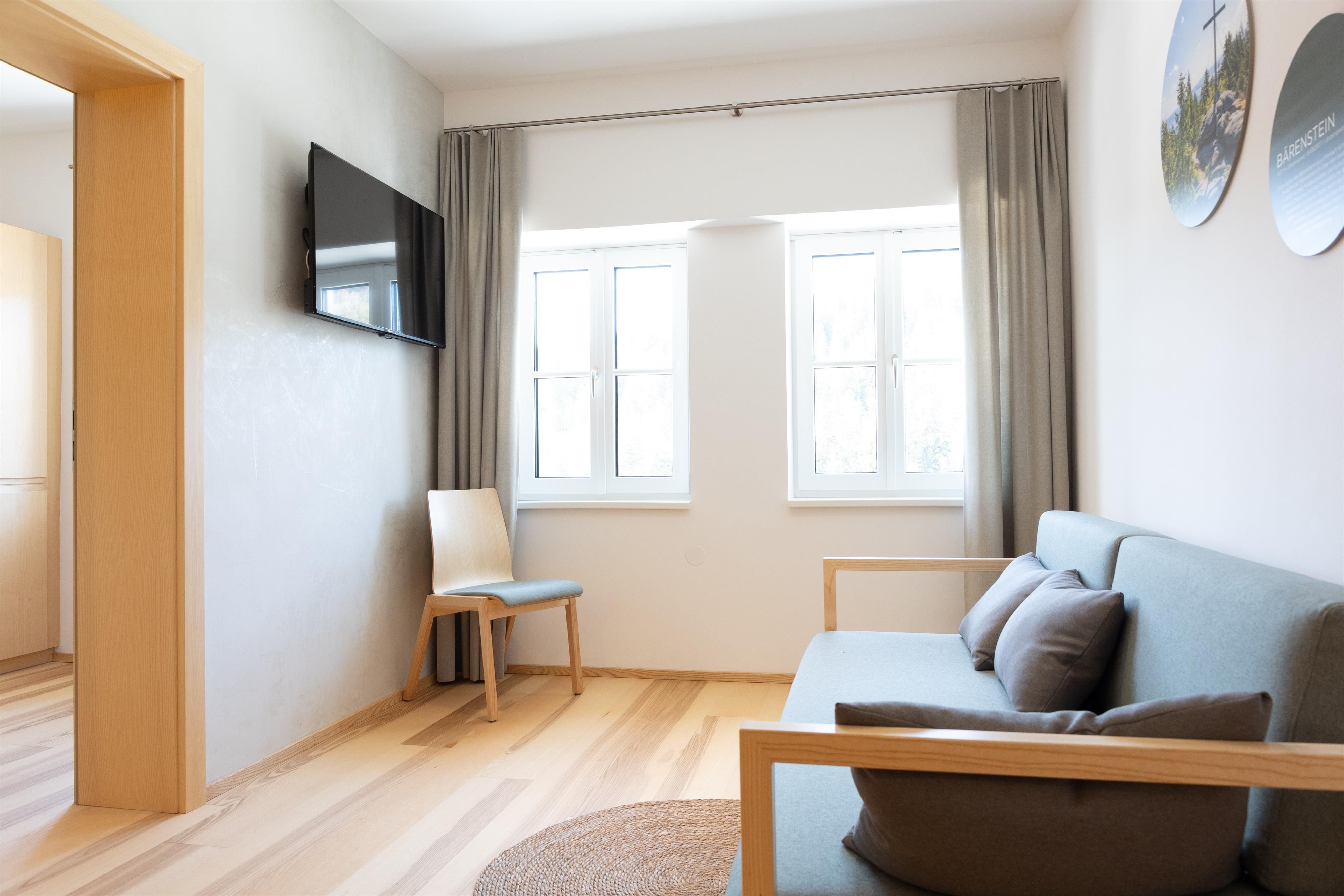 Willkommen im Apartment Bärenstein der Forsthaus Apartments! Diese charmante, barrierefreie Ferienwohnung bietet dir auf 35 m² Platz für bis zu 2 Personen. Freue dich auf einen gemütlichen Wohnbereich mit einer voll ausgestatteten Küche, ein modernes Badezimmer sowie ein komfortables Schlafzimmer mit Queensize-Bett. Ideal gelegen, unweit von der Skipiste, ist das Apartment die perfekte Wahl für einen erholsamen Skiurlaub! Im Sommer ist das Apartment der perfekte Ausgangspunkt für Radtouren und zahlreiche Outdoor-Aktivitäten in der Umgebung. Hier findest du Erholung und Abenteuer das ganze Jahr über!