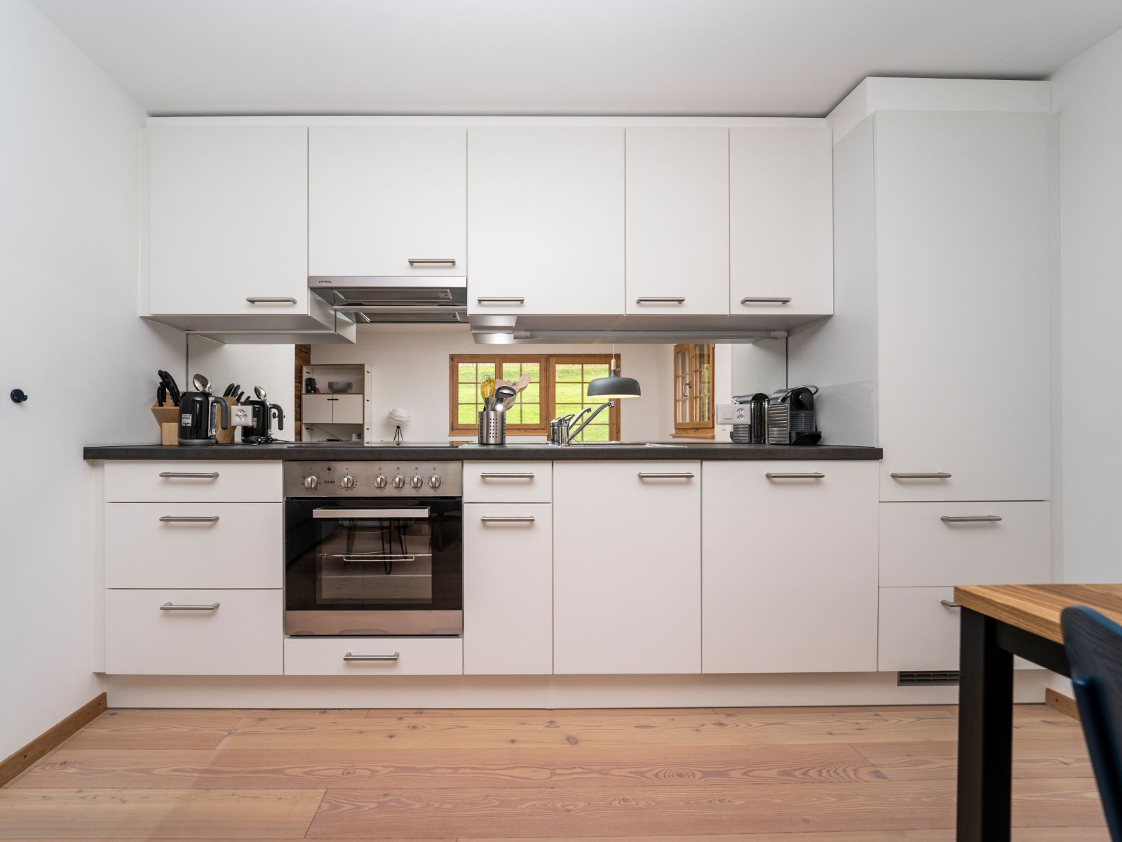 Die Küche verfügt über Glaskeramikkochfeld, Backofen, Geschirrspüler, Nespresso-Kaffeemaschine, Fonduerechaud und Racletteofen, Toaster, Wasserkocher, Tiefkühlfach, Kinderhochstuhl.
