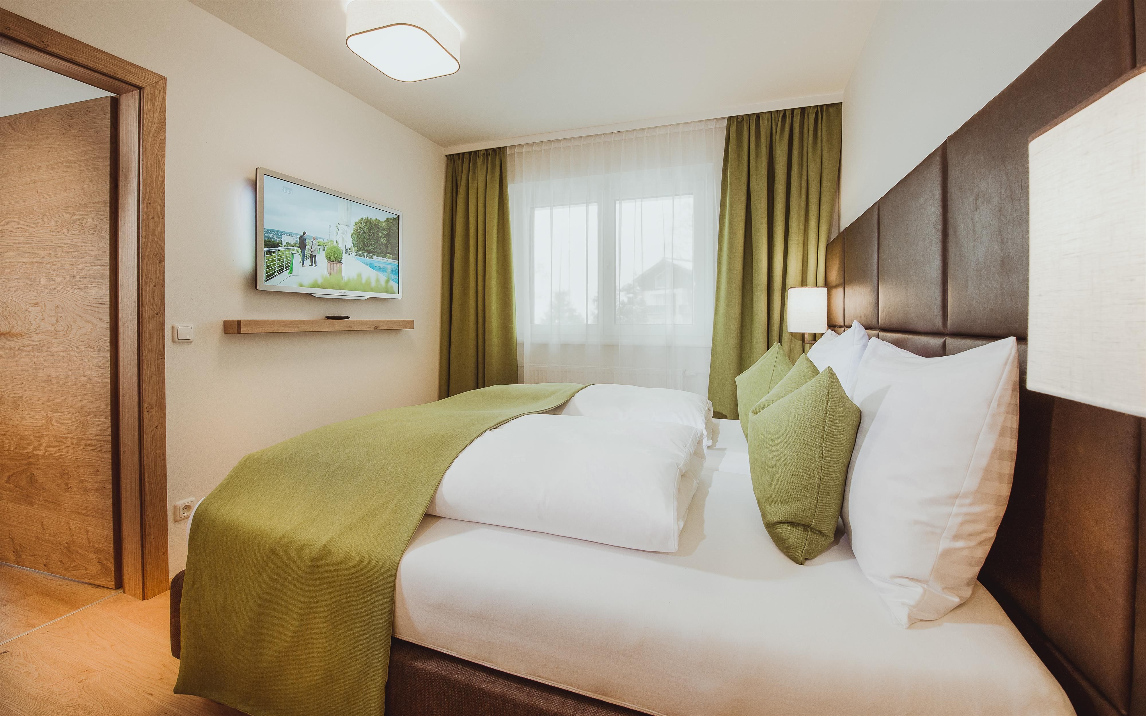 Wenn Tradition auf Moderne trifft – die Amarella Appartements bestechen durch ihre harmonische und stilvolle Einrichtung. Die Möbel, klassisch gehalten in Naturfarben, versprühen schon beim ersten Betreten Wohlfühlcharakter. Grüne Farbakzente verleihen der Unterkunft einen Touch Frische und Eleganz. Die Appartements, beginnend bei 45m² bis hin zu 70m², bieten Platz für zwei bis sechs Personen. Alle Wohnungen verfügen über 2 Schlafzimmer, sowie mindestens ein Badezimmer mit Dusche.