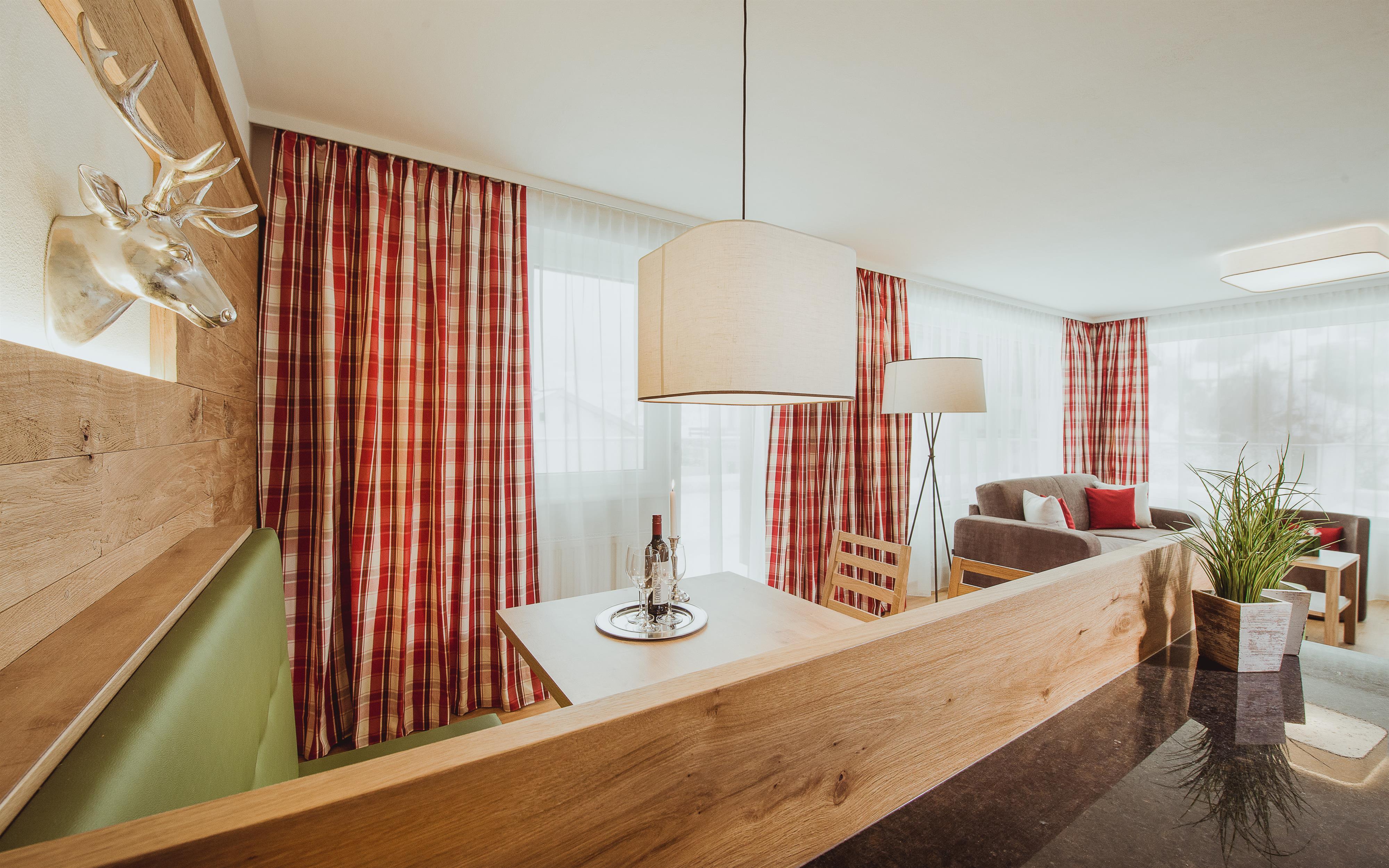 Appartement Edelweiss | 4 Personen, 70 m² . Offener Wohn-, Küche- & Essbereich, Wohnbereich mit Flatscreen Kabel TV, Sitzgruppe, Voll ausgestattete Küche, 2 getrennte Schlafzimmer jeweils mit Flatscreen Kabel TV,Kostenloser WLAN-Internetzugang, 2 Bäder (Haarfön, Handtuchheizung), Ski- und Schuhraum, 1 Parkplatz, Kleiderschrank mit Safe