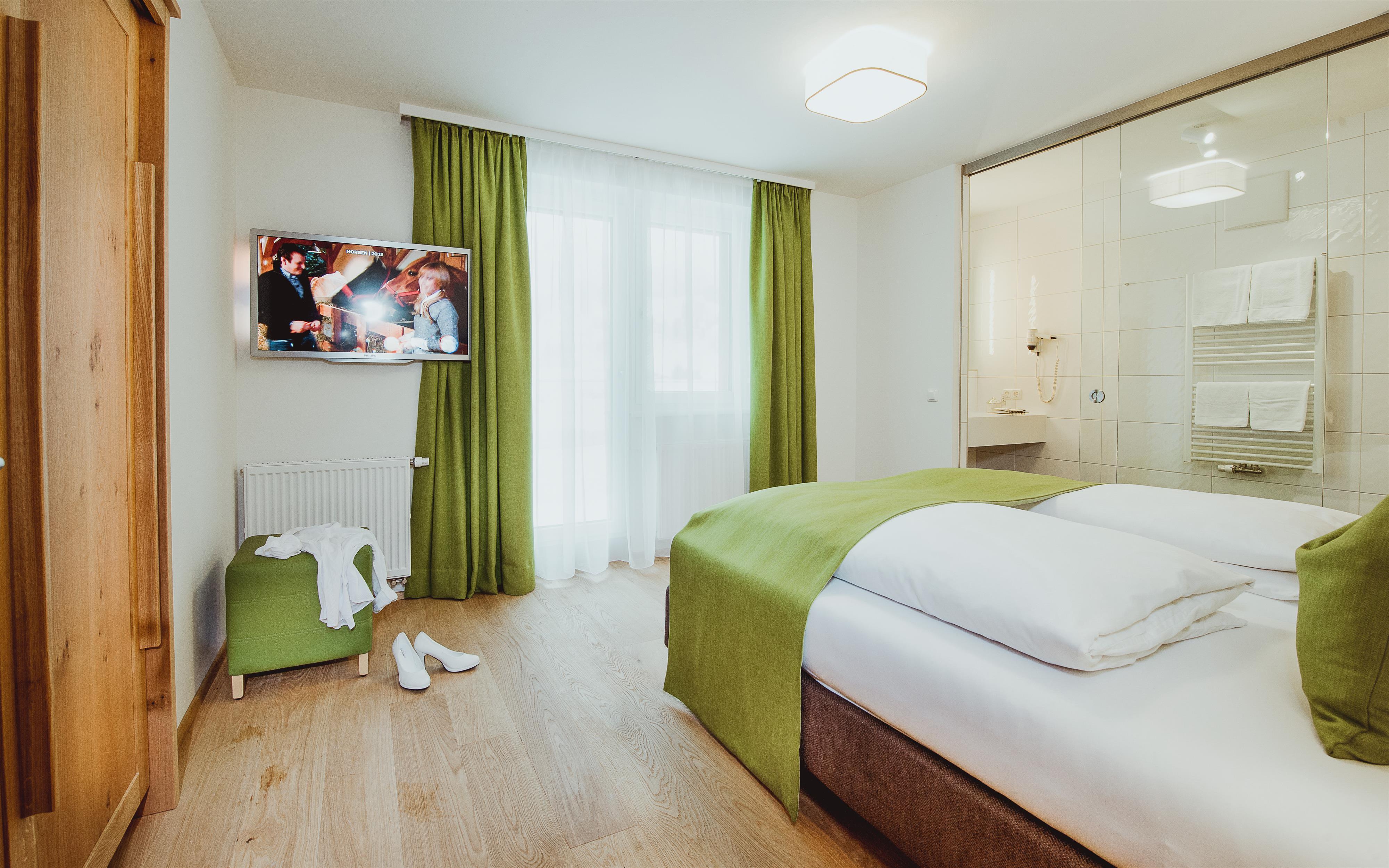 Wenn Tradition auf Moderne trifft – die Amarella Appartements bestechen durch ihre harmonische und stilvolle Einrichtung. Die Möbel, klassisch gehalten in Naturfarben, versprühen schon beim ersten Betreten Wohlfühlcharakter. Grüne Farbakzente verleihen der Unterkunft einen Touch Frische und Eleganz. Die Appartements, beginnend bei 45m² bis hin zu 70m², bieten Platz für zwei bis sechs Personen. Alle Wohnungen verfügen über 2 Schlafzimmer, sowie mindestens ein Badezimmer mit Dusche.