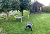 Bei schönem Wetter können Sie sich auf der privaten Terrasse, die über einen Tisch und Stühle, Grill, Liegestühle und einen Sonnenschirm verfügt, entspannen.