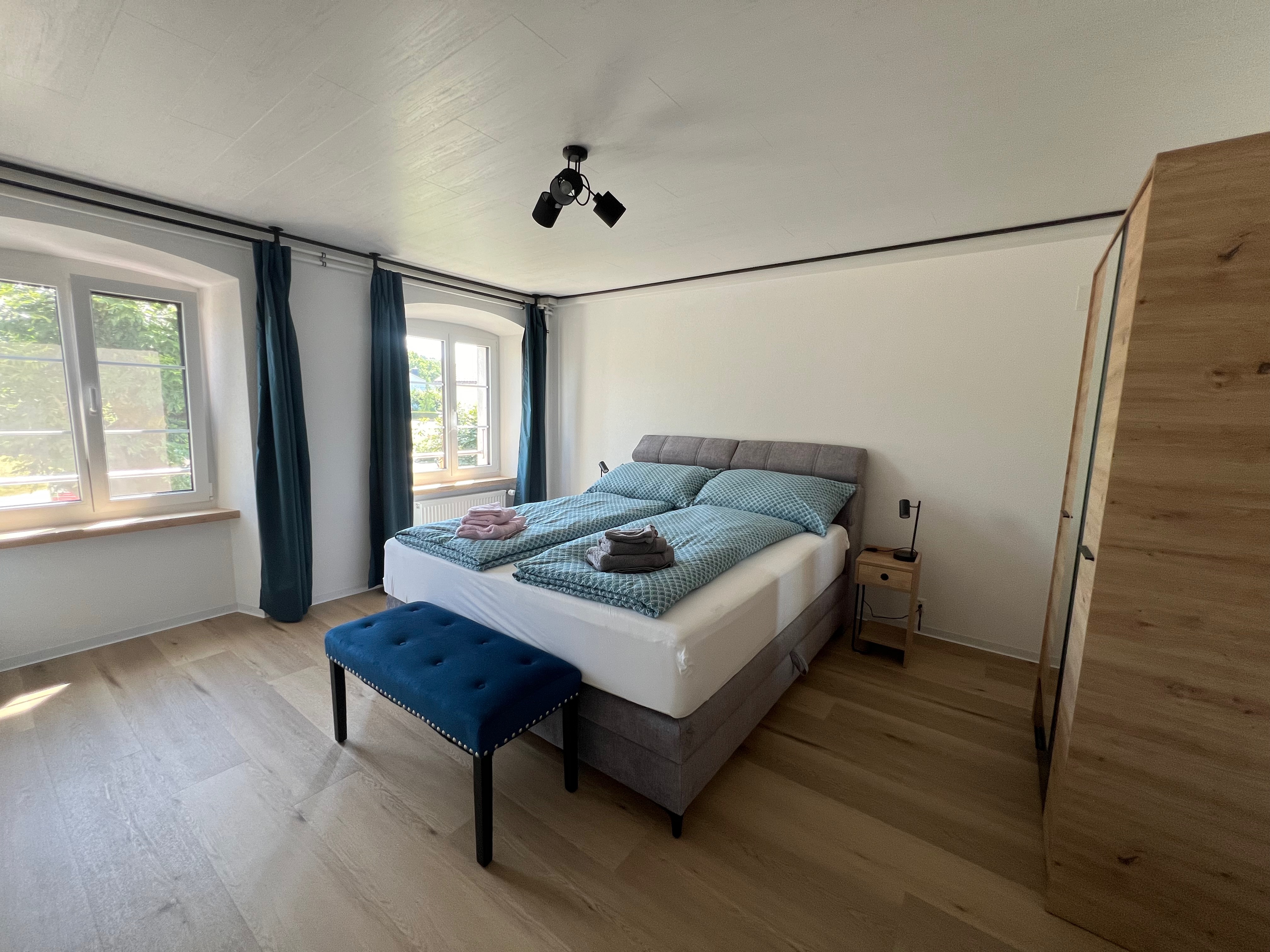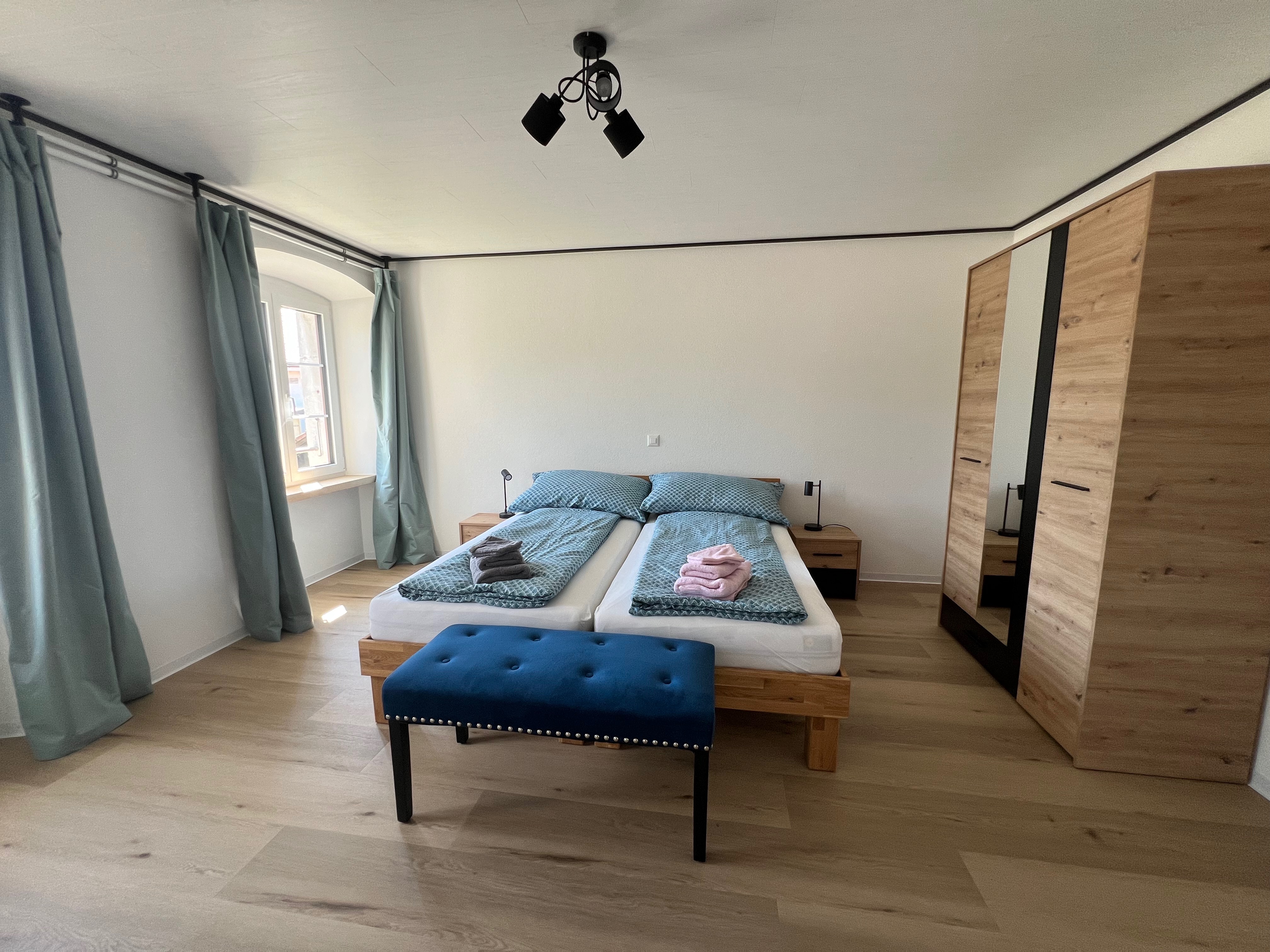 1 Schlafzimmer mit Boxspring-Bett (180x200) und Kleiderschrank;