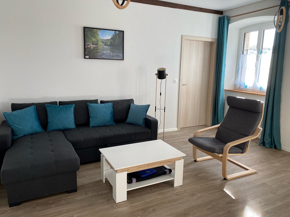 Willkommen im Café de la Poste! Die 2024 vollständig renovierte Wohnung befindet sich im ehemaligen Restaurant des charmanten Dorfes les Enfers an ruhiger Lage und mitten in der Natur.