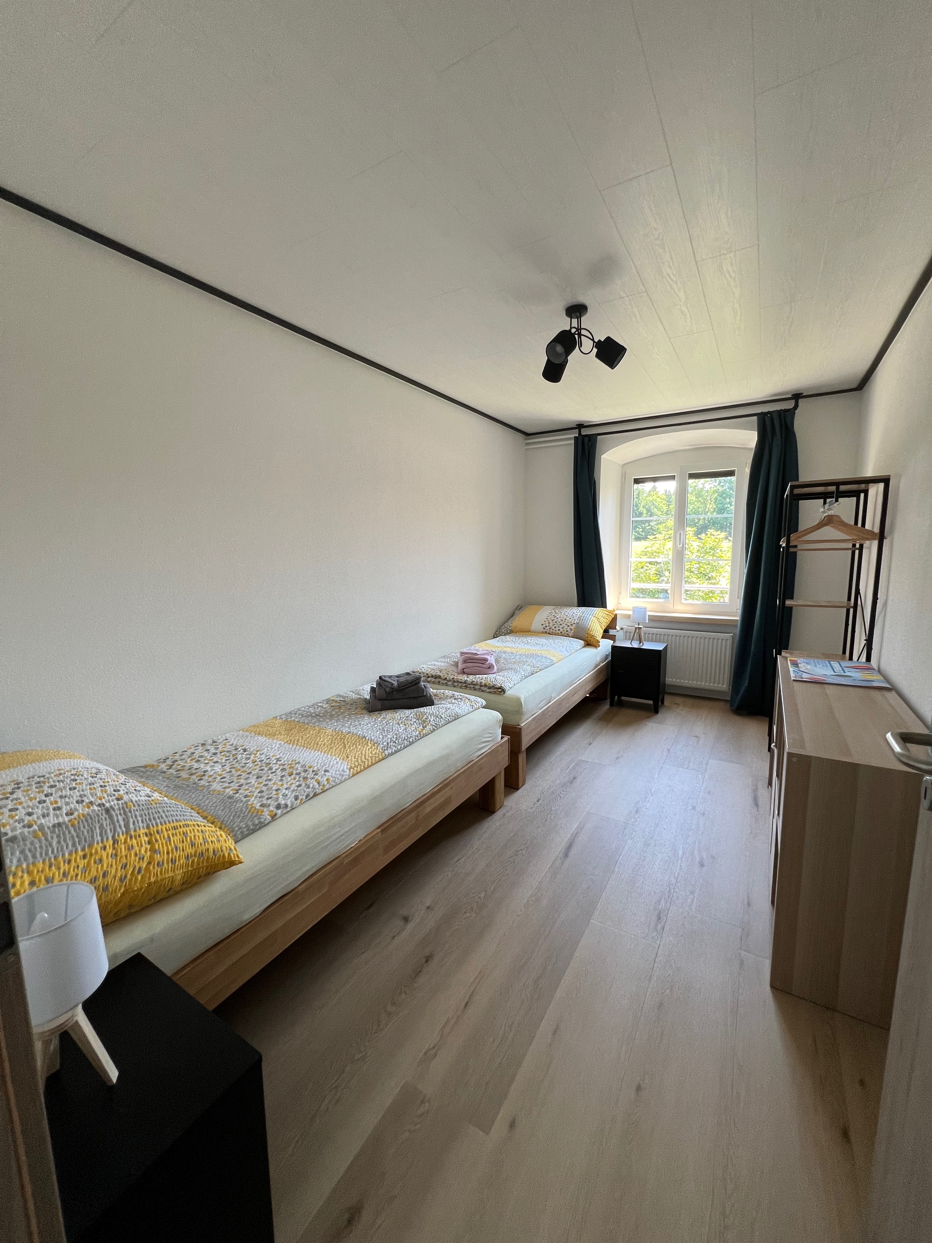 1 Schlafzimmer mit 2 Einzelbetten (90x200), Kleiderschrank, Büchern und Spielen;