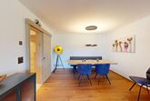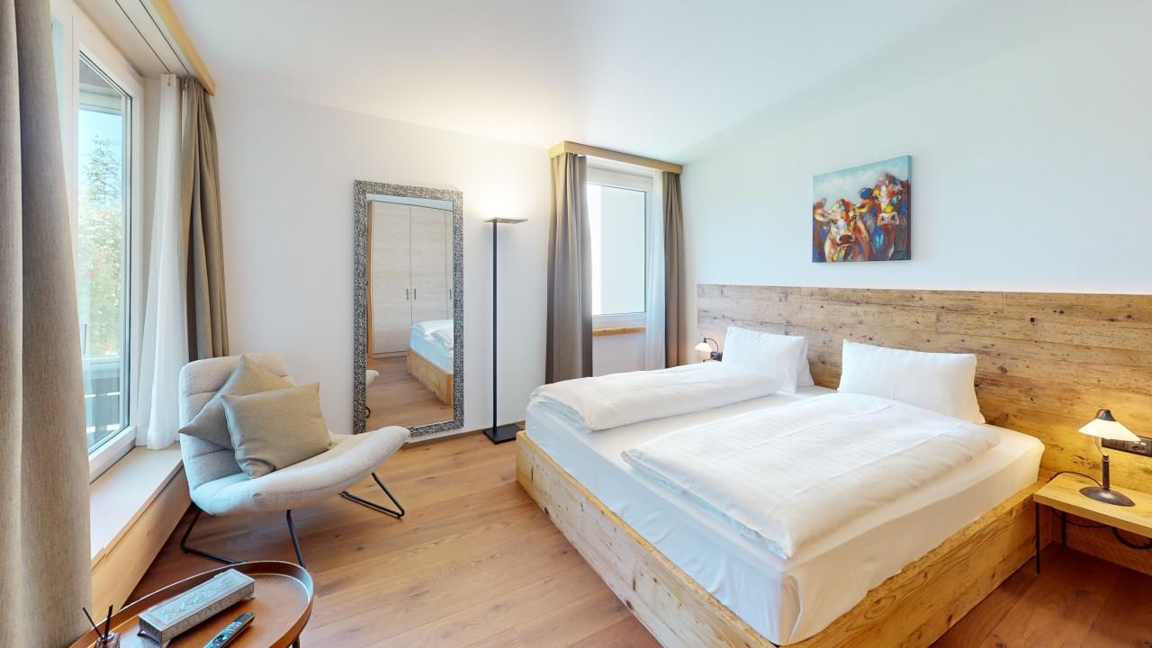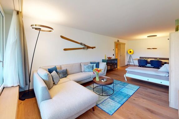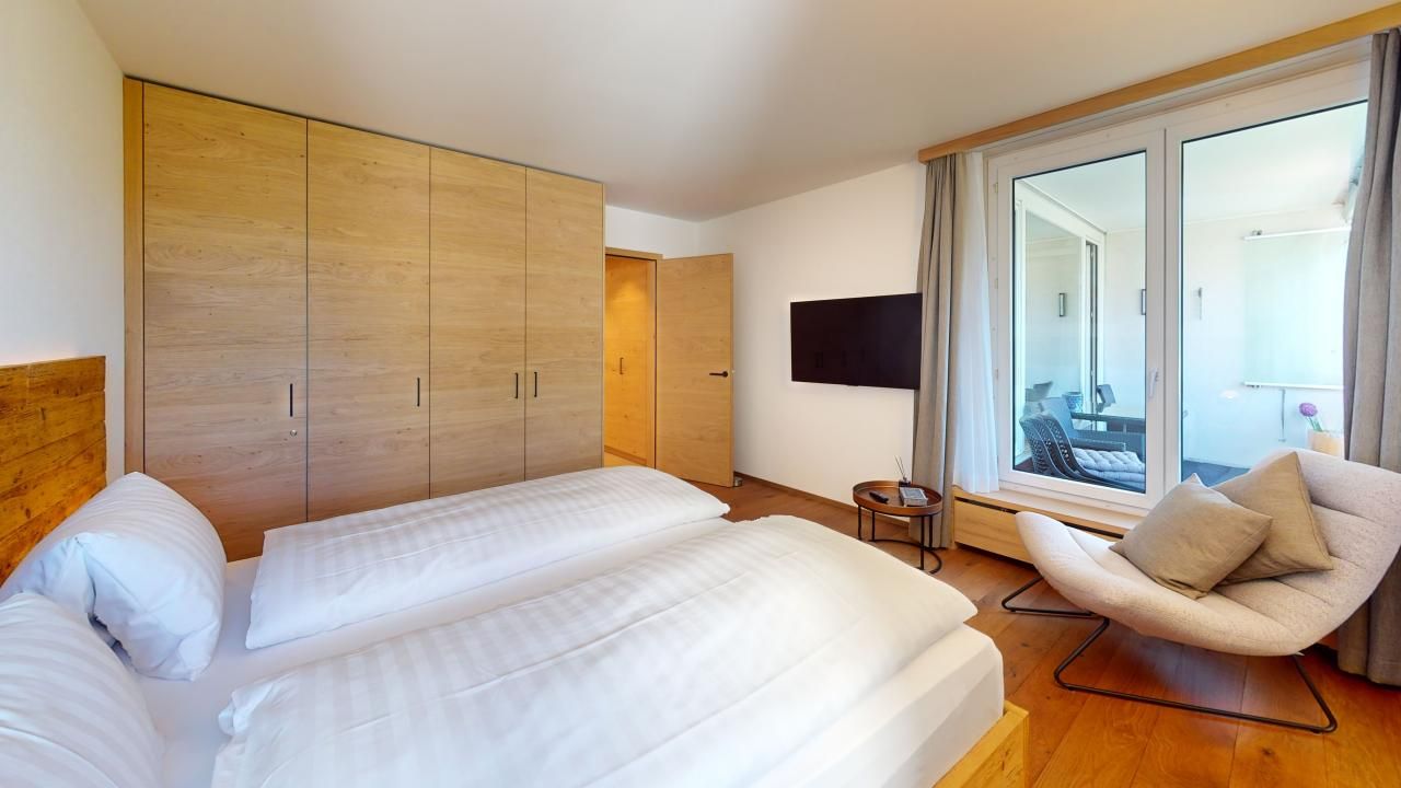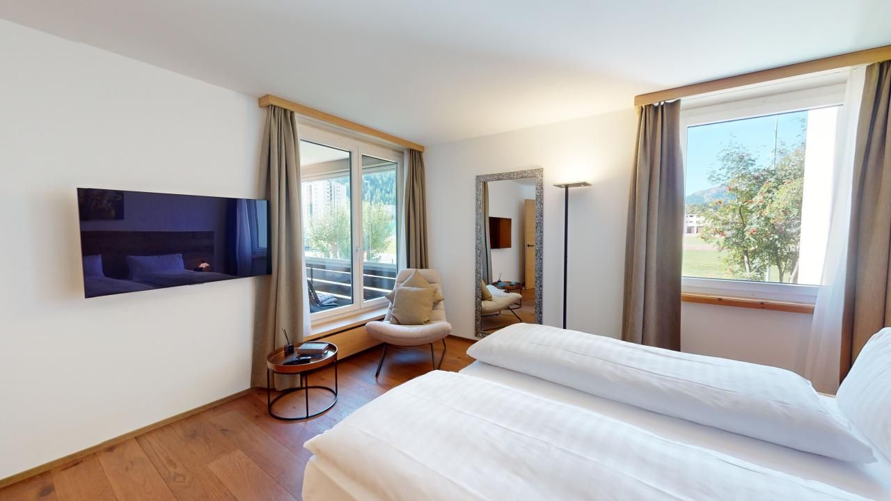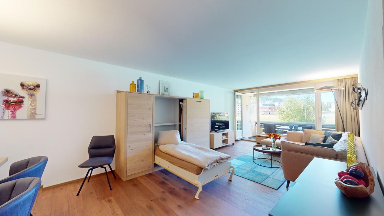 Diese neu renovierte, grosszügige 2.5 - Zimmer-Ferienwohnung im Hochparterre verbindet stilvolles Wohnen mit dem perfekten Ferienerlebnis in St. Moritz. Mit auserlesenen Materialien und einem durchdachten Design bietet diese Wohnung alles, was man für einen komfortablen und entspannten Ferienaufenthalt benötigt. Eingang mit moderner Küche und Garderobe. Trendiges Wohn- /Esszimmer mit 2 Klappbetten (90x190cm). Gedeckter Balkon zum Verweilen mit Verglasung. Helles mit Holz verkleidetes Doppelschlafzimmer. Beschränkte Anzahl Aussenparkplätze (max. 1 Auto/Wohnung, nicht reserviert). Fitnessraum zur öffentlichen Nutzung befindet sich im Ferien-Wohnhaus.