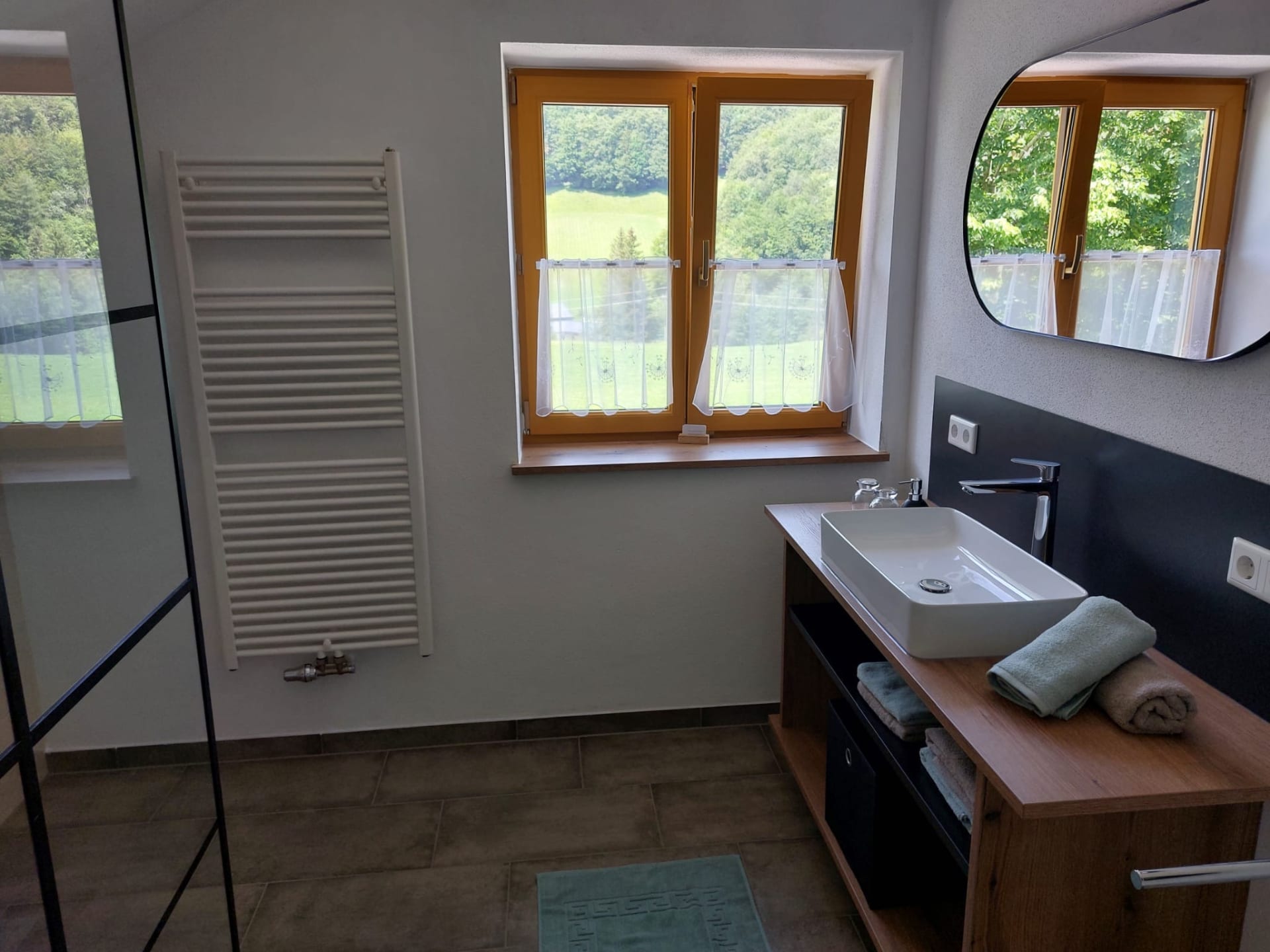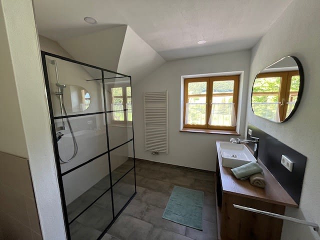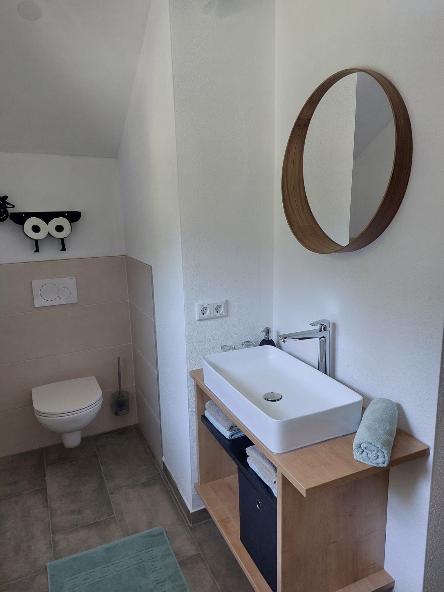• zwei Badezimmer mit Dusche und WC Haarföhn