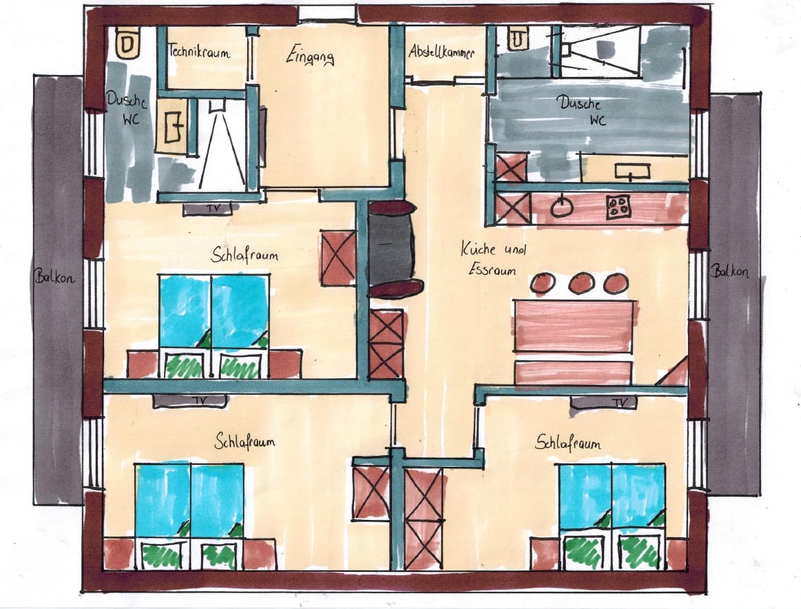 Das Appartement Berg-Luft bietet Platz für 6 Personen und besteht aus: