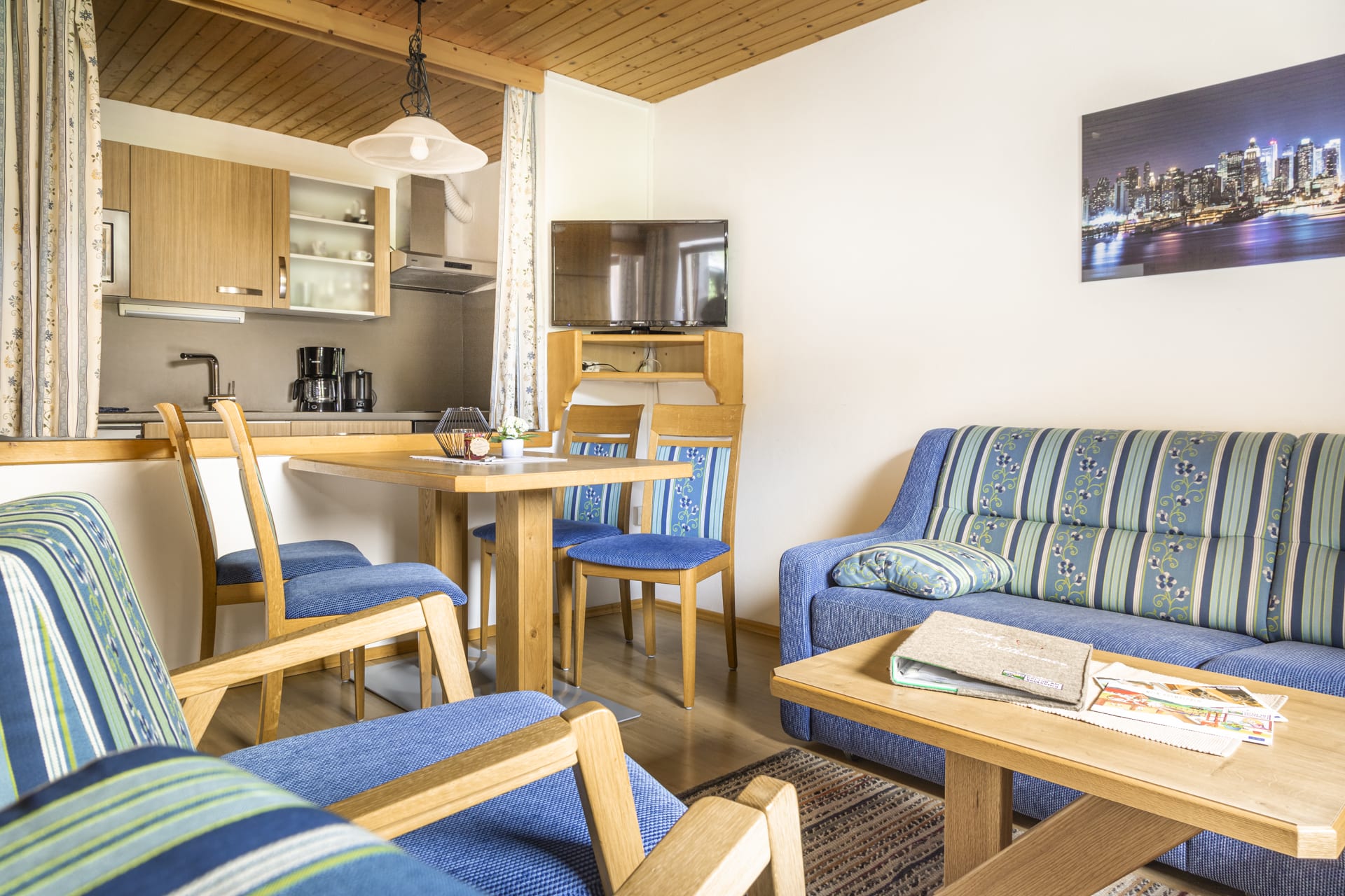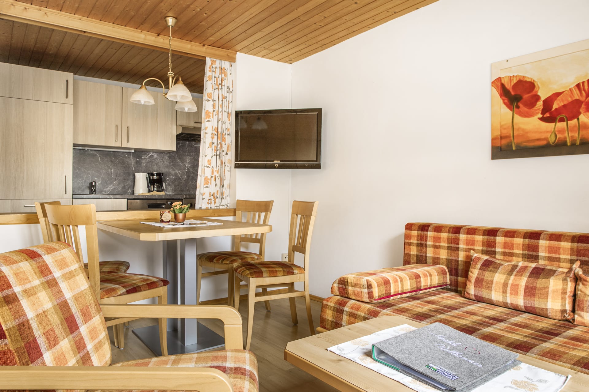 Die hellen, sonnendurchfluteten Zimmer und die hochwertige Ausstattung aller Ferienwohnungen bieten viel Raum für schöne Urlaubsstunden. Genießen Sie den traumhaften Panoramablick vom Balkon ins schöne Gasteinertal. Jede Ferienwohnung verfügt über ein Schlafzimmer, ein Badezimmer mit Dusche und WC und eine Küche mit Durchreiche ins Wohnzimmer mit Sitzecke und Couch. Kostenloser Internetzugang per W-LAN ist vorhanden.