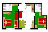 • 1 Wohnraum (Ausziehcouch) mit Küche