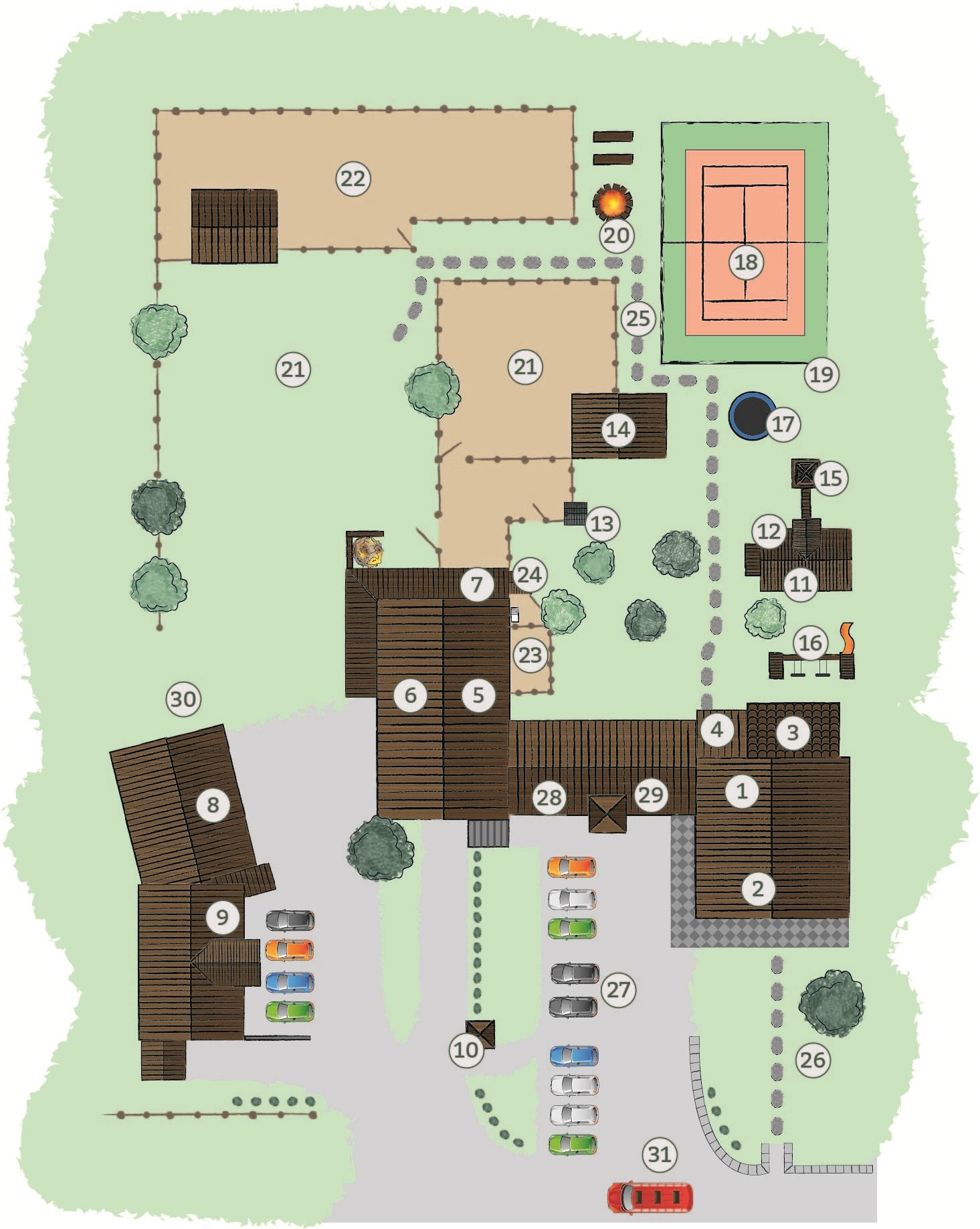 Zimmer mit Dusche/WC inkl. Frühstück oder Appartements für 4-8 Personen.