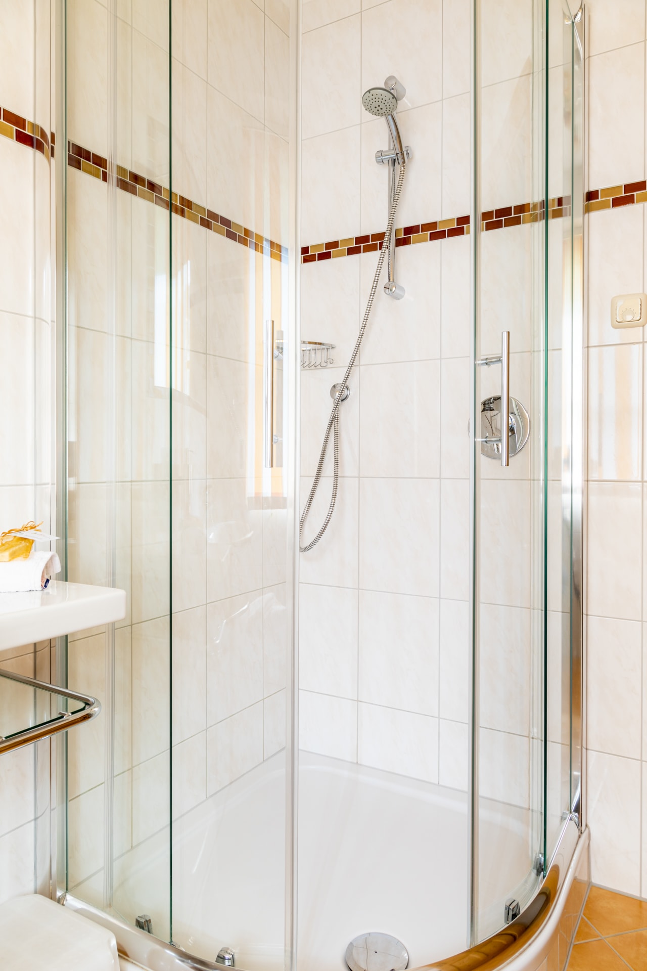 Im Flur ist pro Apartment ein Garderobenschrank inkl. Schuhtrockner.