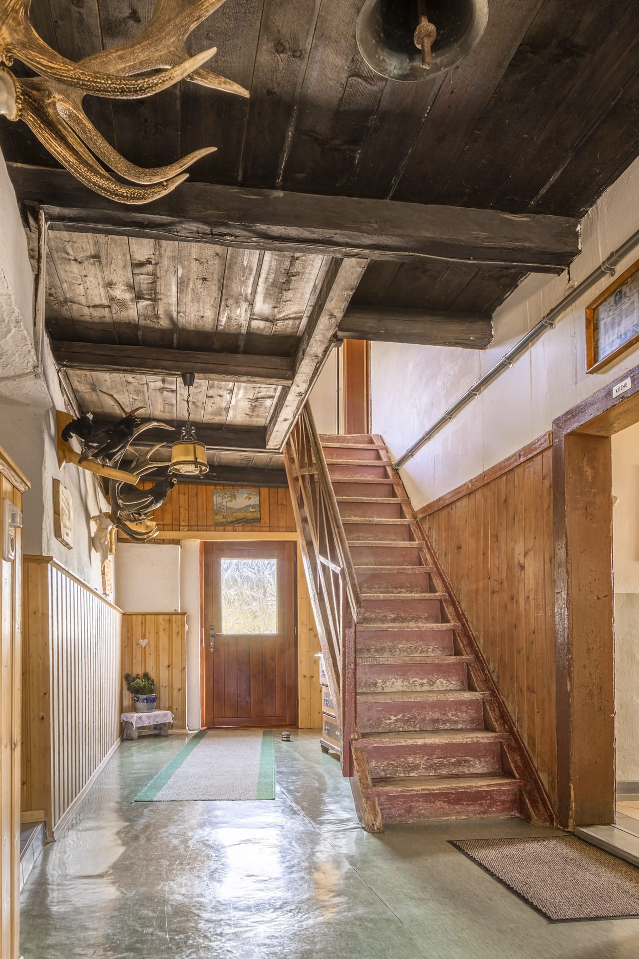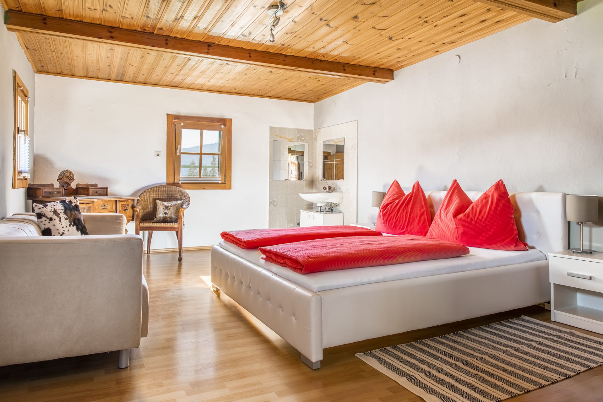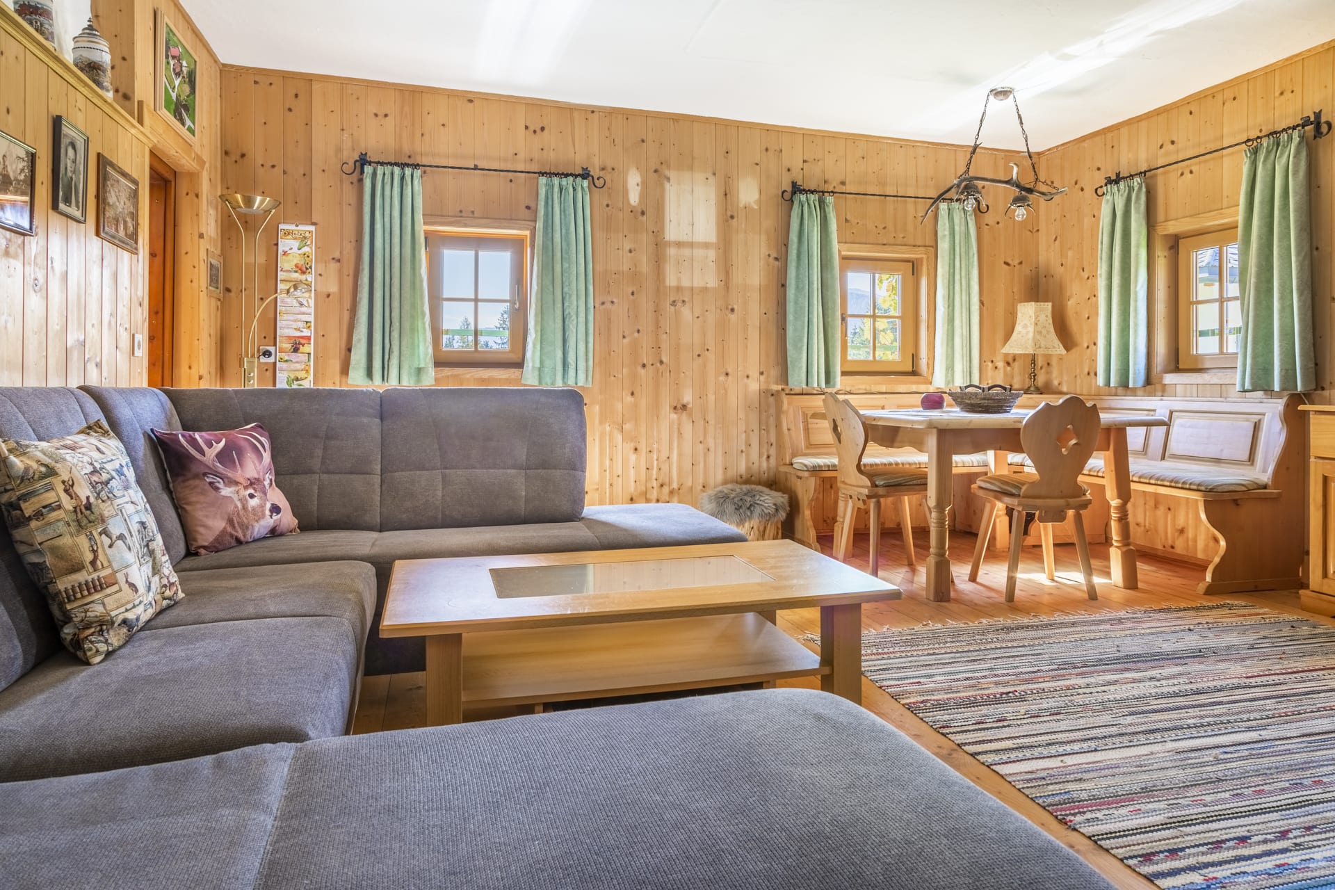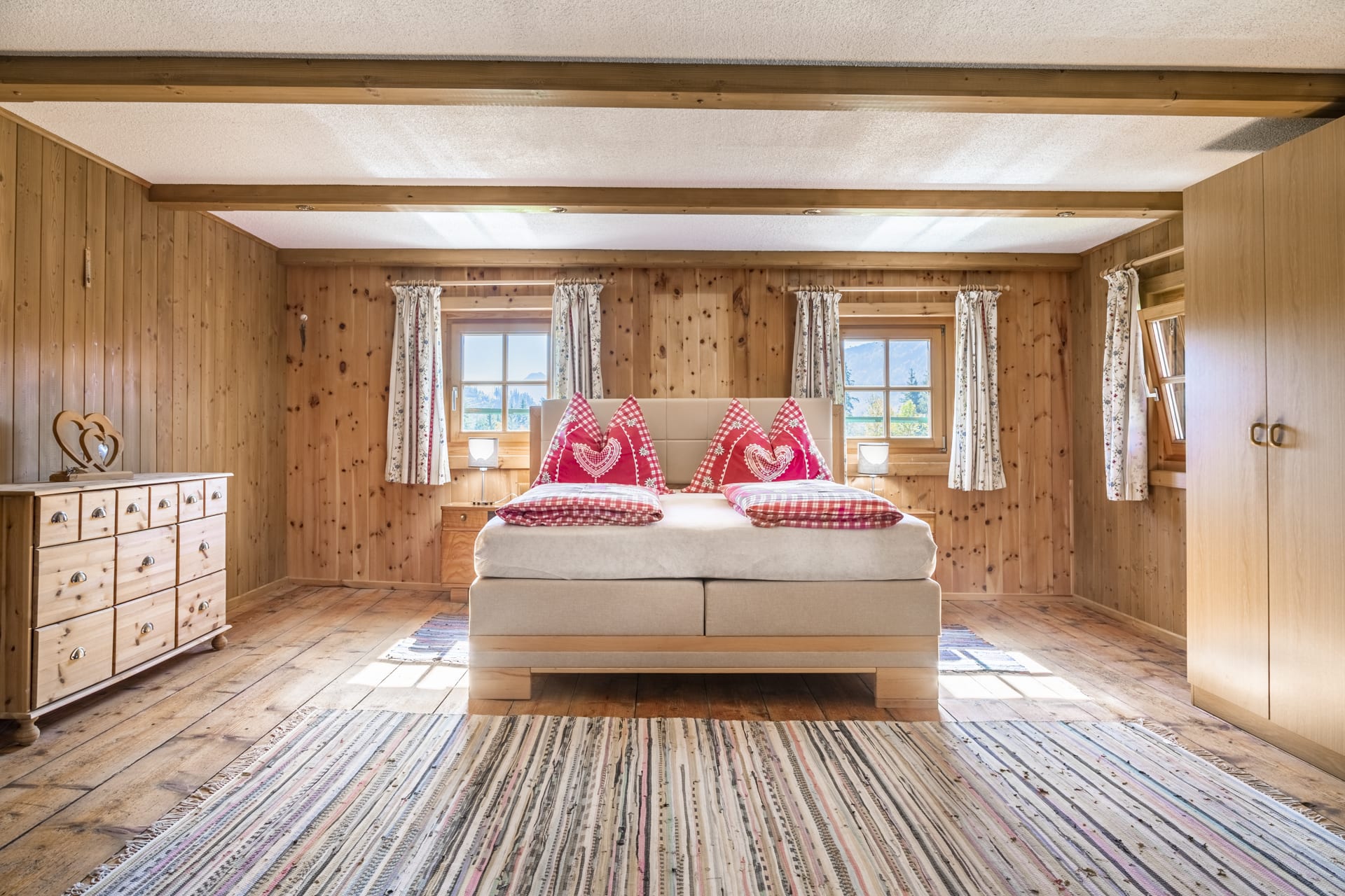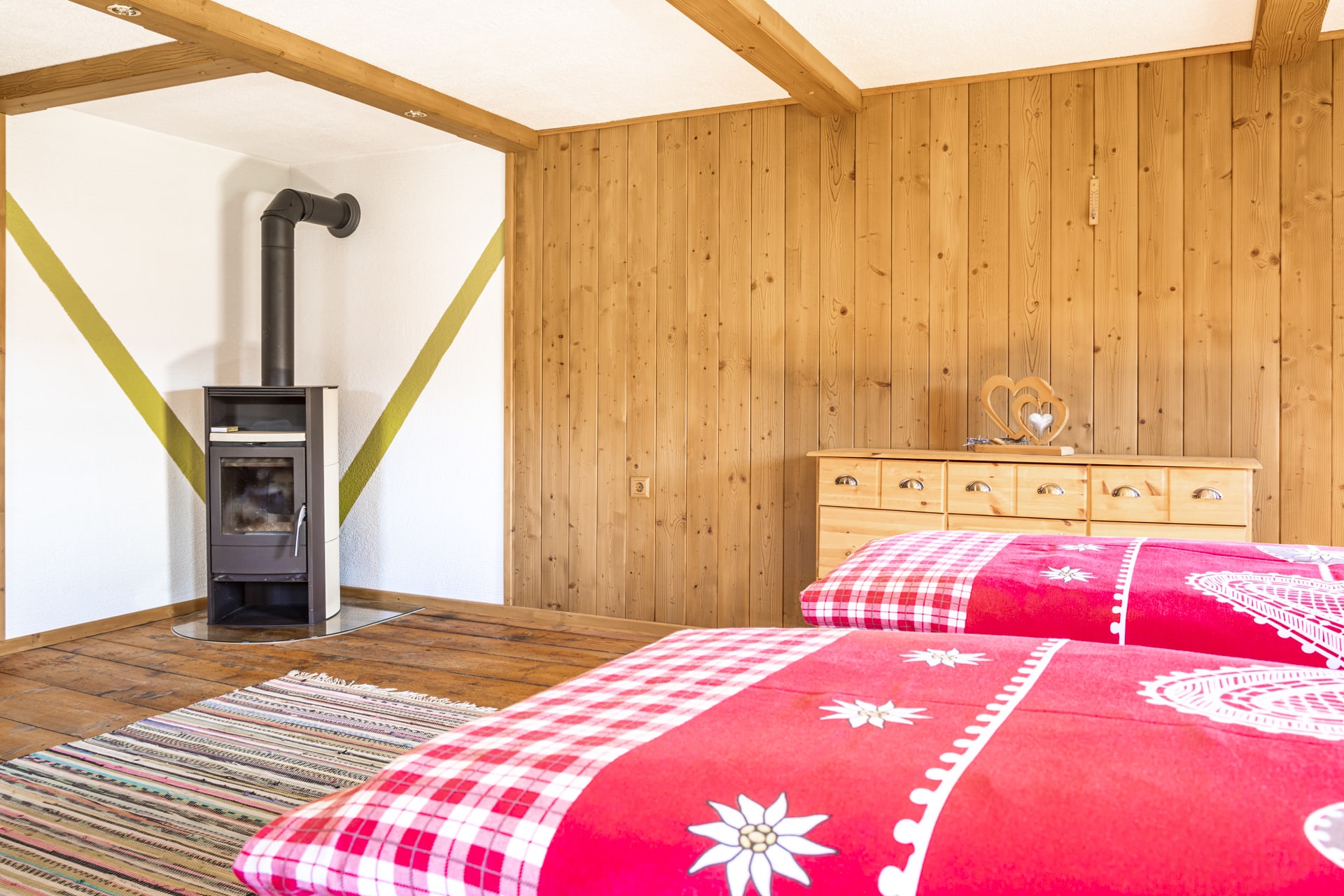 Das Ferienhaus Lehengut bietet ingesamt vier Schlafzimmer, ein Bad und zwei Toiletten. Zwei Schlafzimmer haben einen Balkon mit Blick auf die umliegenden Berggipfel. Geheizt wird mit einem großen, alten Holzofen, der für eine wohlige Wärme sorgt. In der Stube gibt es eine gemütliche Couch und einen Fernseher. In der voll ausgestatteten Küche gibt es einen großen Esstisch und viel Platz für alle. Die zwei großen Vorräume im Erd- und Obergeschoß erinnern an die großzügige Bauweise von früher. Außerdem befindet sich im Ferienhaus Lehengut noch ein kleiner Wirtschaftsraum mit Waschmaschine.