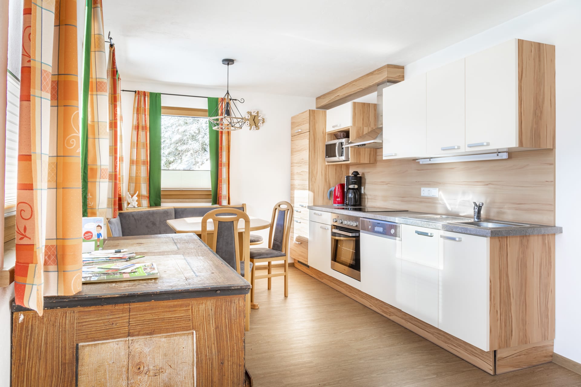 Das gemütliche Appartement im Erdgeschoss bietet eine vollausgestattete Küche, Esstisch, 2 Schlafzimmer, Bad mit WC, Sat-TV und W-Lan. Von der Terrasse aus haben Sie einen unvergesslichen Blick auf die Hohen Tauern.