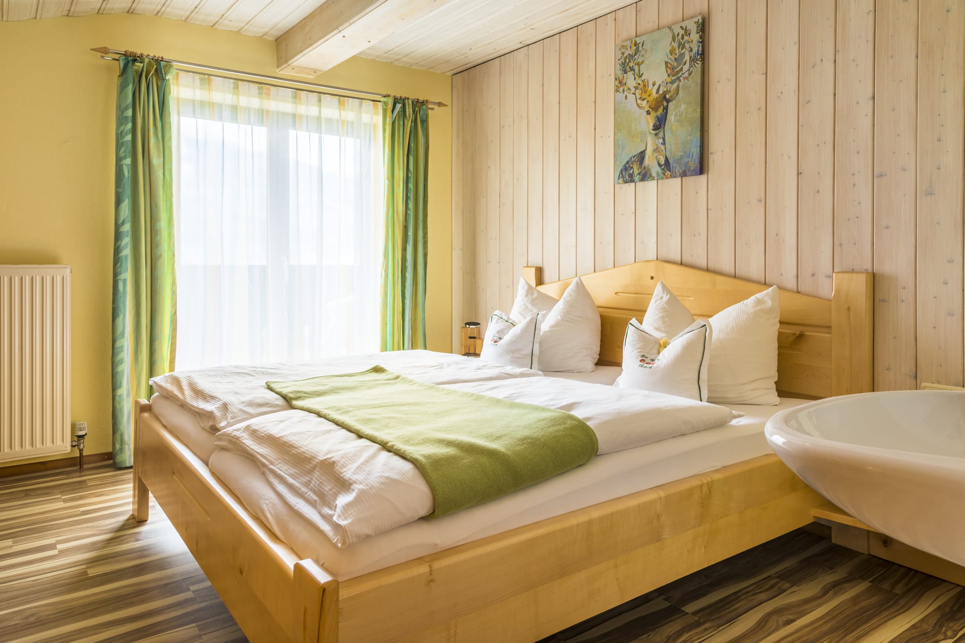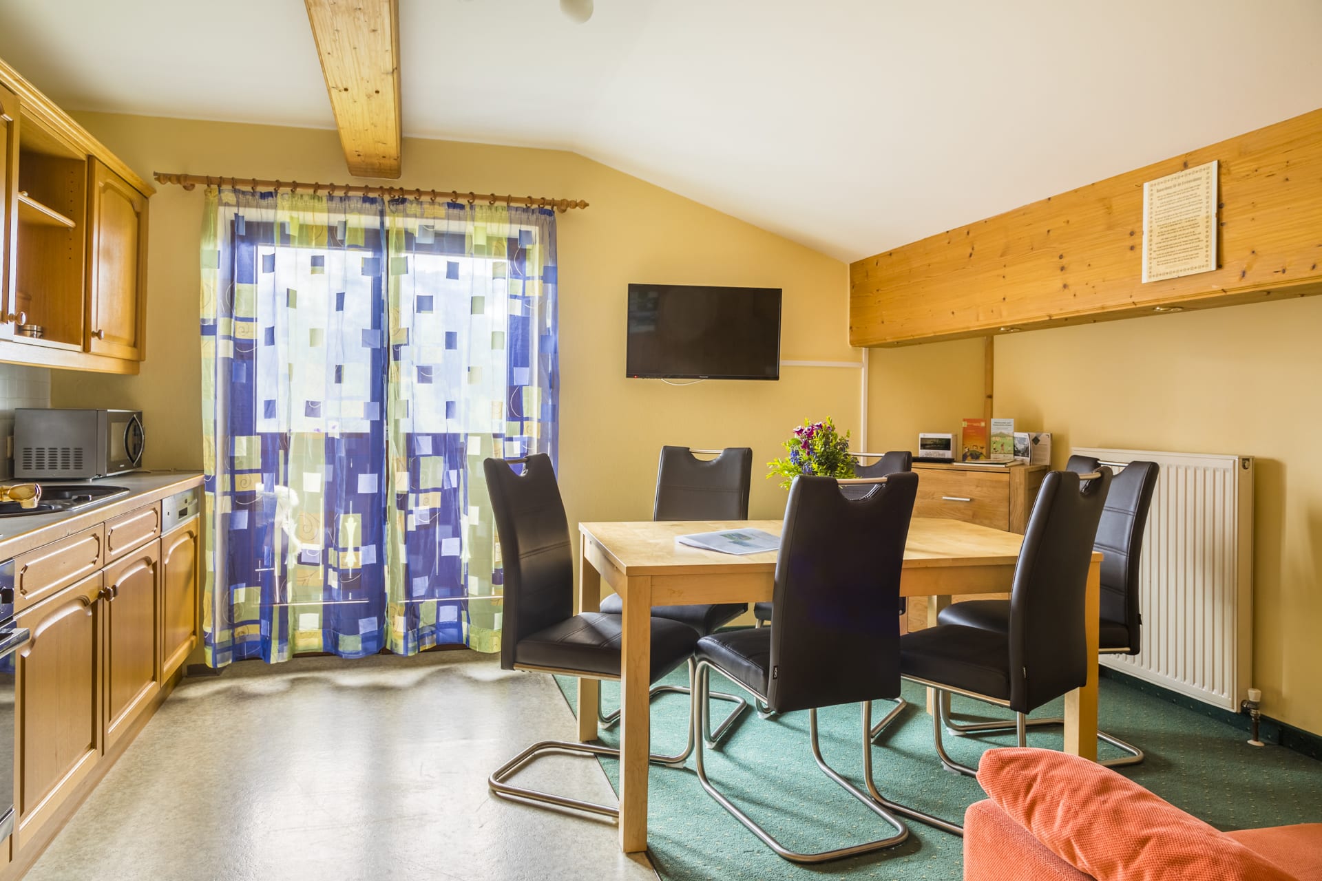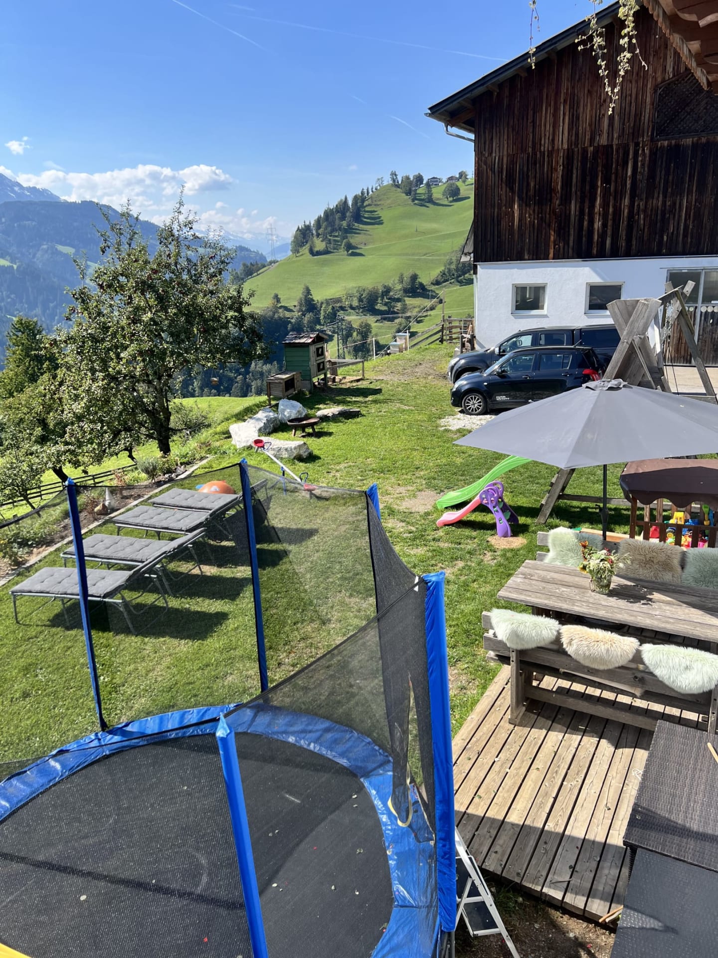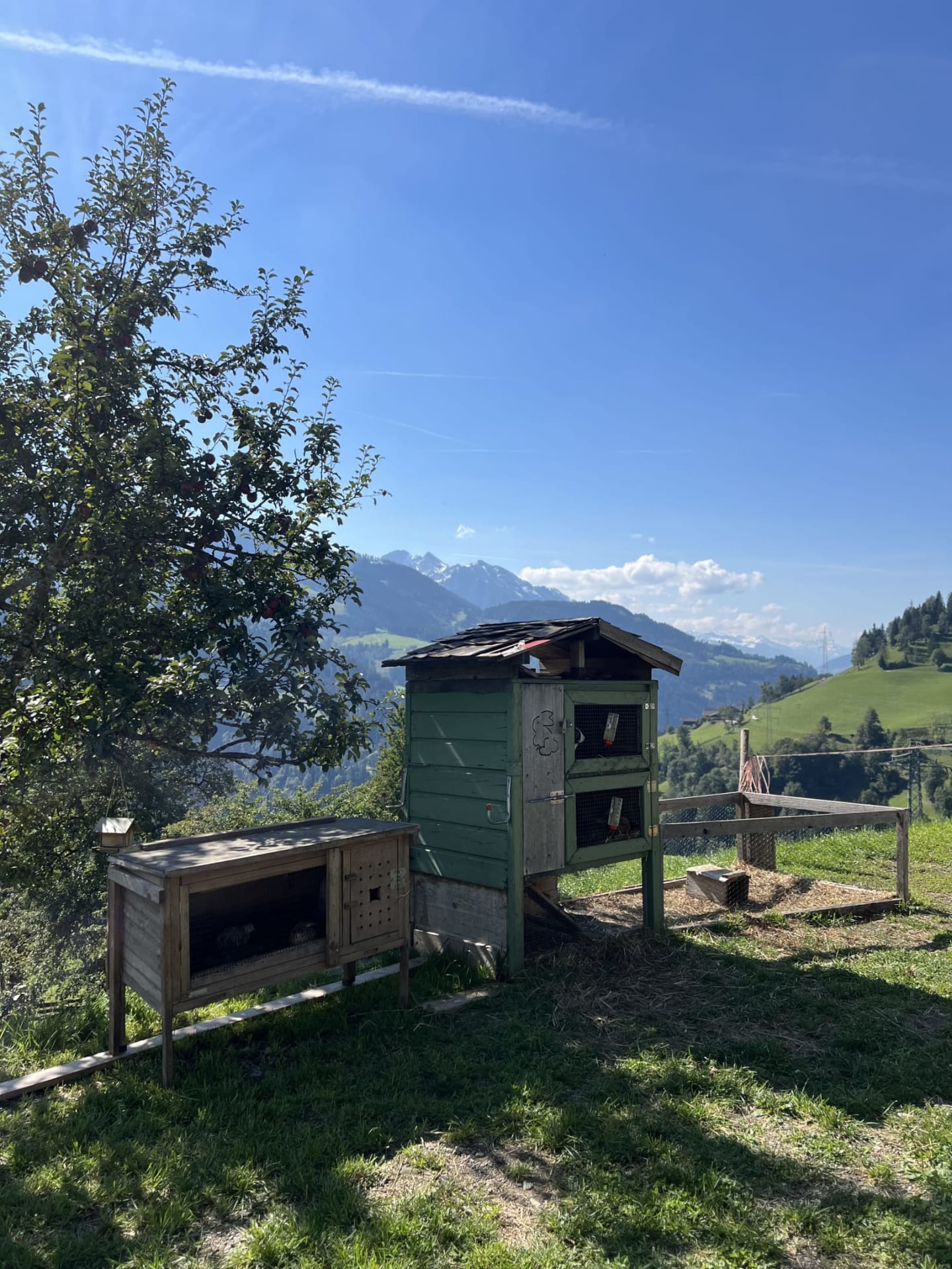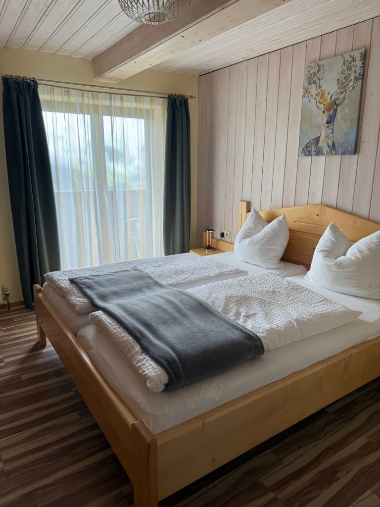 Unsere Ferienwohnung befindet sich im 2. Stock des Bauernhauses. Auf 75 m2 gibt es 2 Schlafzimmer mit je einem Doppelbett. Ein Badezimmer mit Dusche und Badewanne, 1 WC und eine Wohnküche mit Ausziehsofa bieten Wohnkomfort in der Ferienwohnung. Ein traumhaftes Panorama erwartet Sie vom Balkon aus.