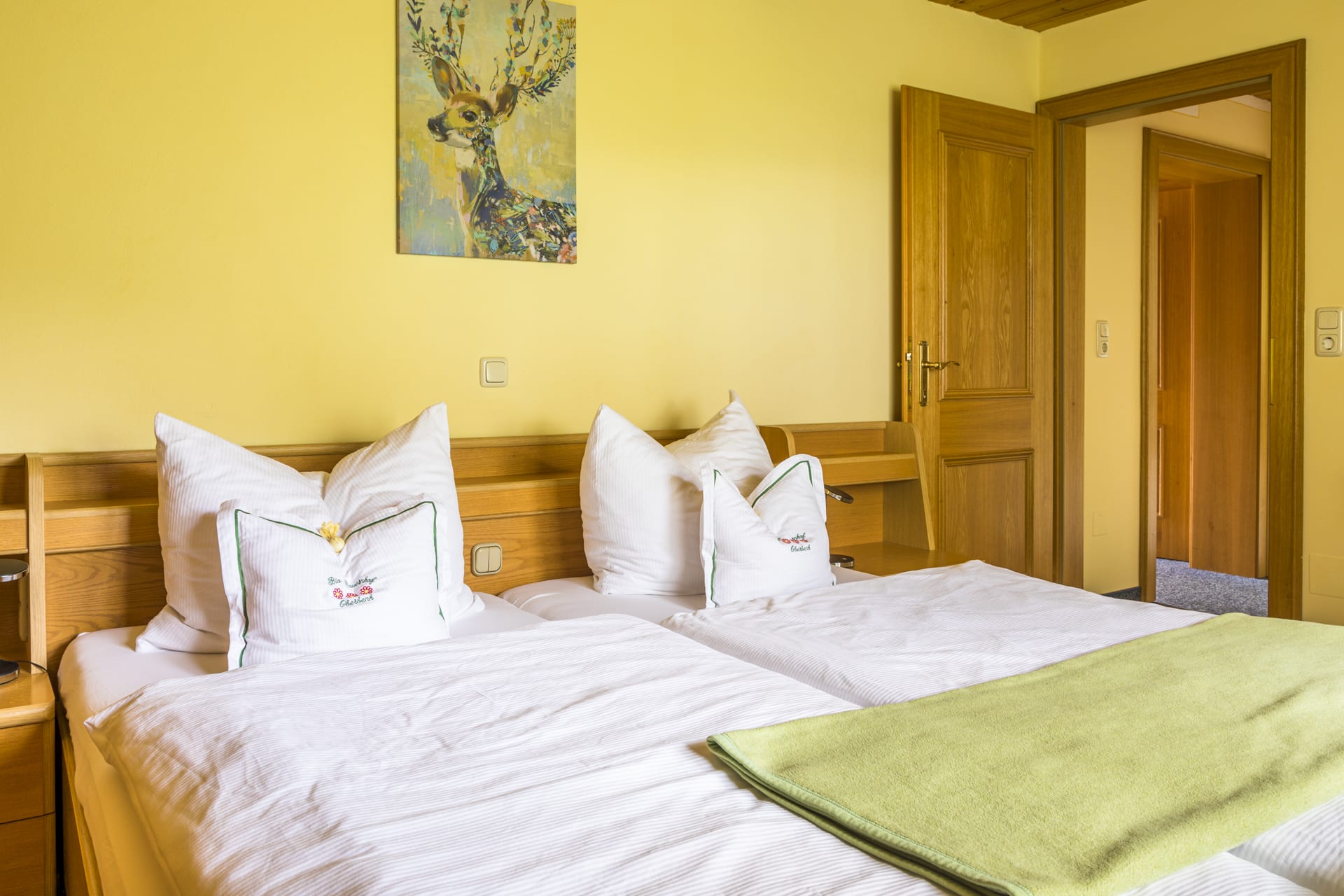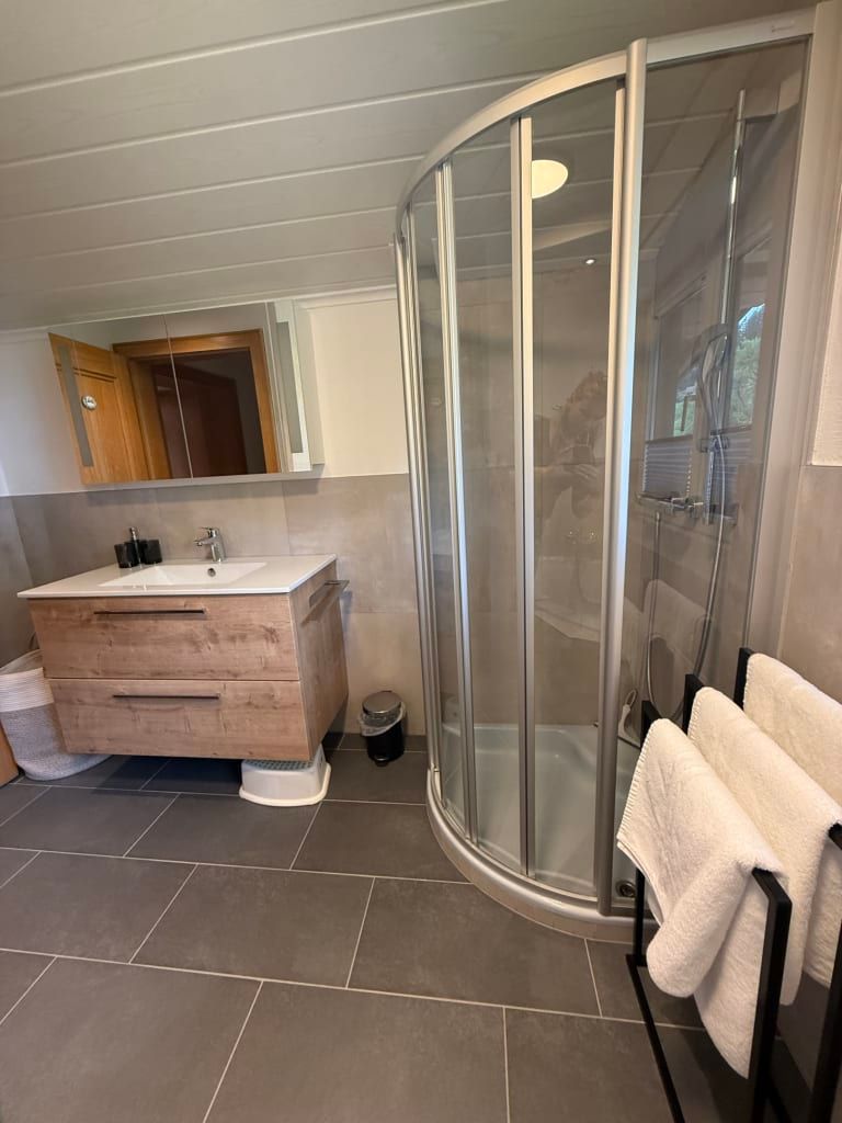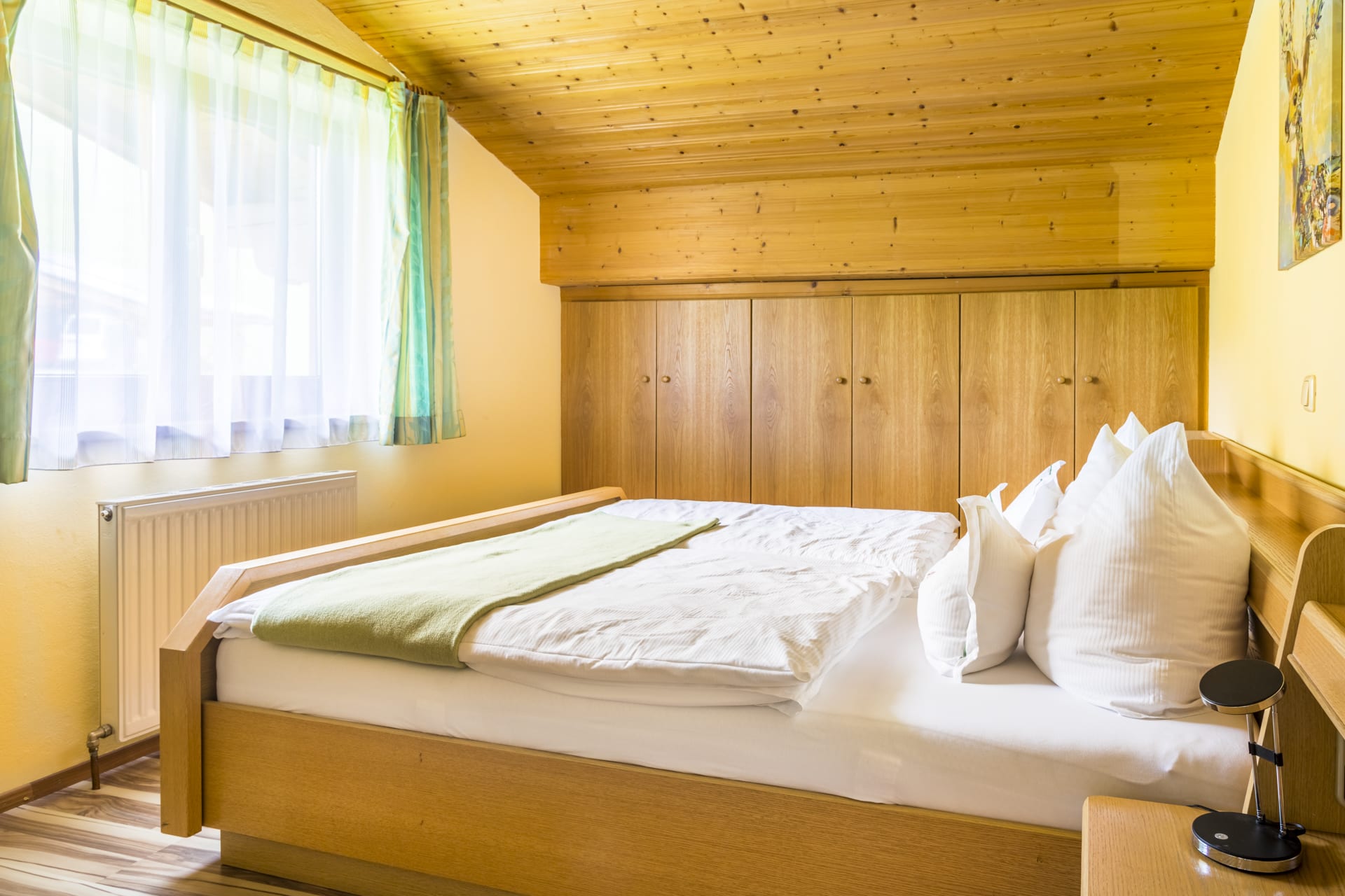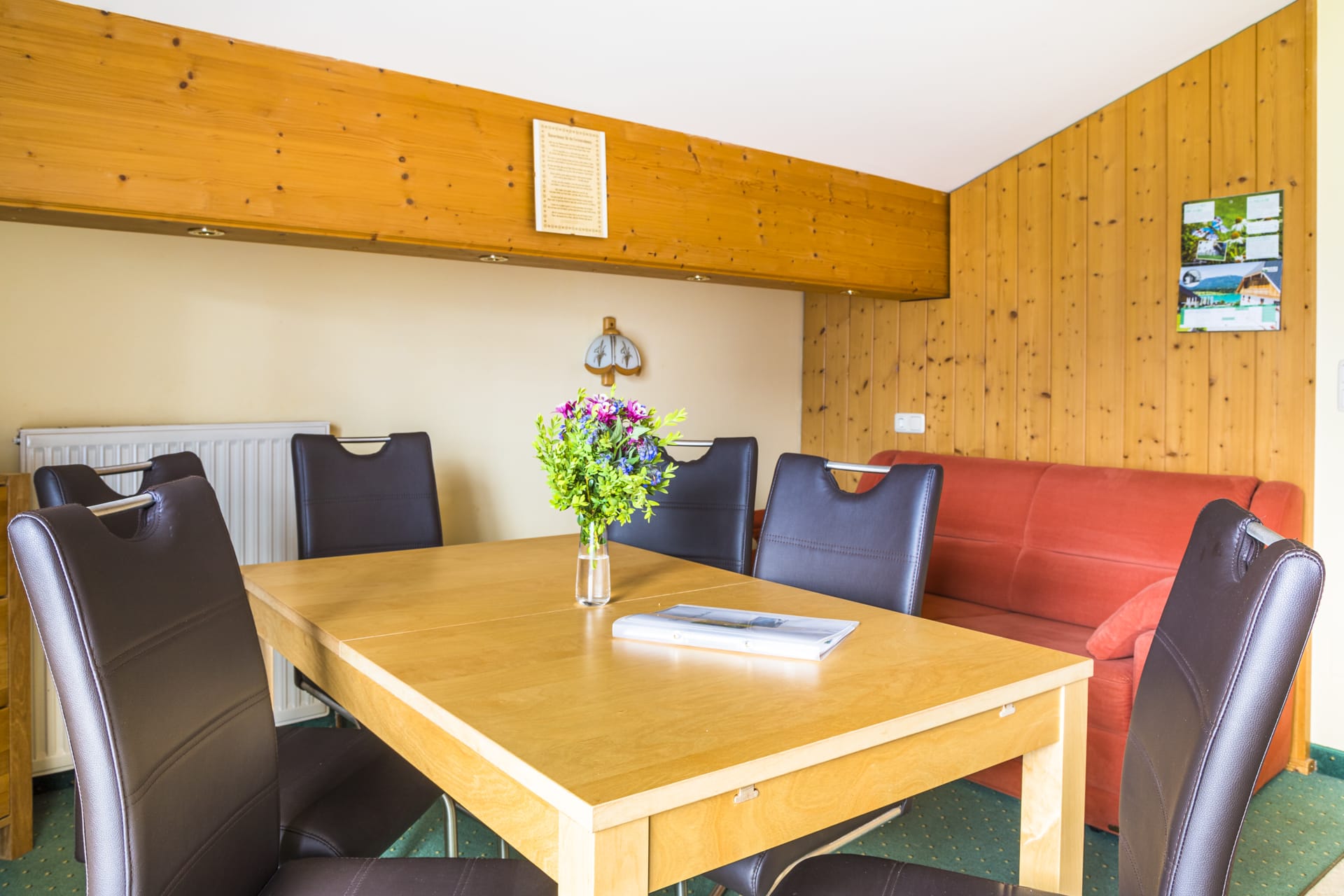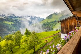 Unsere Ferienwohnung befindet sich im 2. Stock des Bauernhauses. Auf 75 m2 gibt es 2 Schlafzimmer mit je einem Doppelbett. Ein Badezimmer mit Dusche und Badewanne, 1 WC und eine Wohnküche mit Ausziehsofa bieten Wohnkomfort in der Ferienwohnung. Ein traumhaftes Panorama erwartet Sie vom Balkon aus.