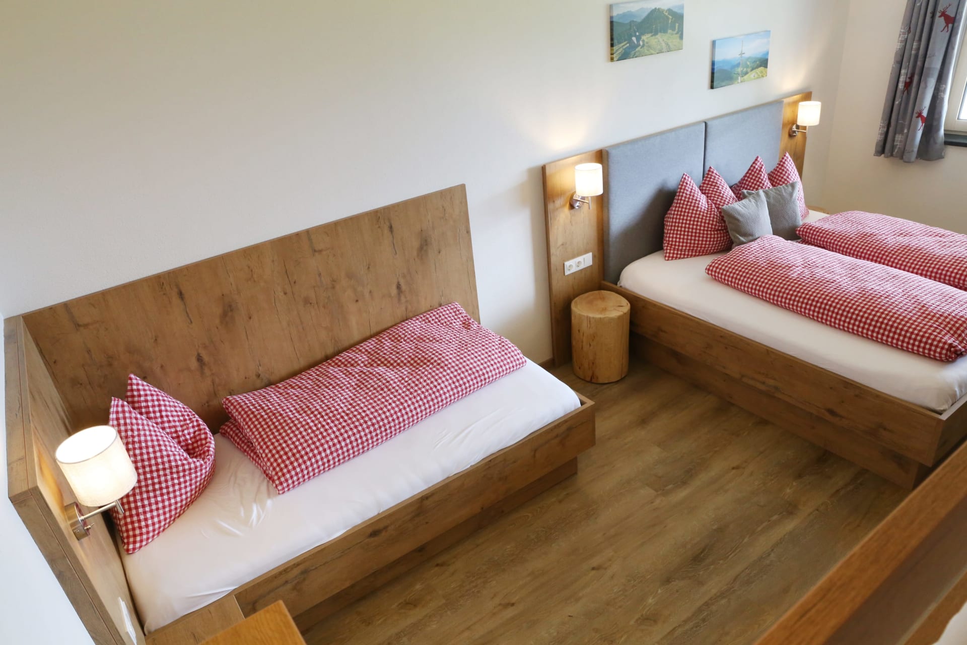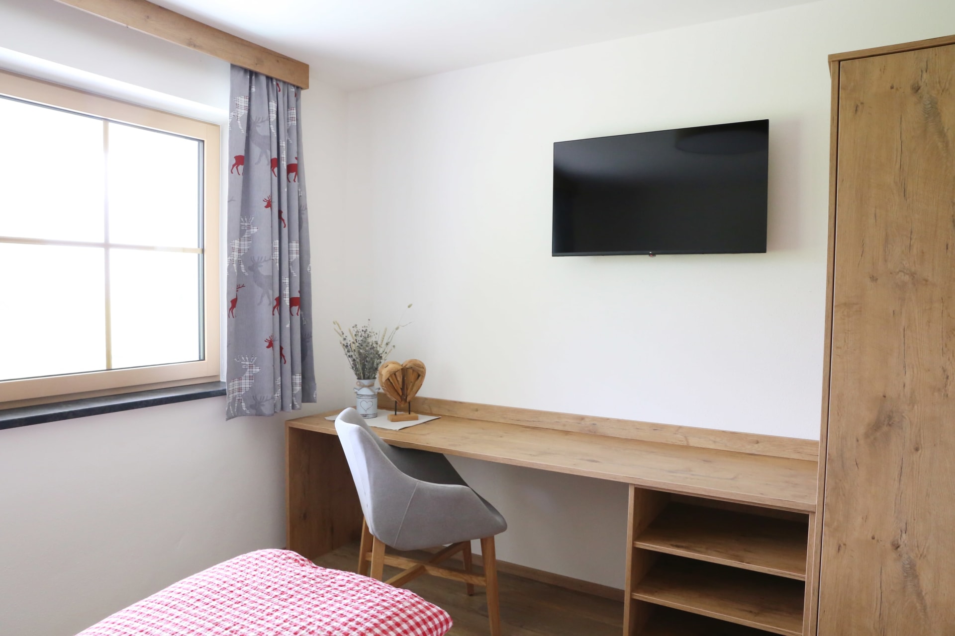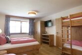 2. Schlafzimmer: Doppelbett, Stockbett, Einzelbett, Schrank, Nachttisch und TV.