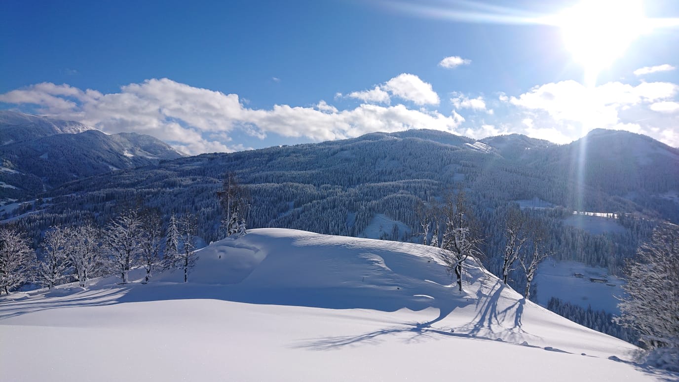 Wenn am Morgen im Winter die Sonne aufgeht und der Schnee glitzert, dann startet ein herrlicher Tag am Lindbichlhof – der optimale Ausgangpunkt für Ihren Winterurlaub.