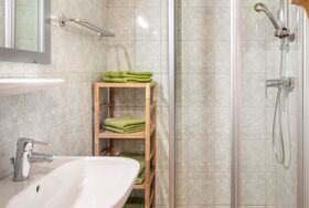 Die Ferienwohnung bietet auf 56 m² Platz für bis zu 4 Personen. Freut euch auf eine gut ausgestattete Wohnküche, zwei Schlafzimmer mit Doppelbett und ein Bad mit Dusche sowie ein separates WC. Am großen Balkon könnt ihr von morgens bis abends die Sonne genießen.
