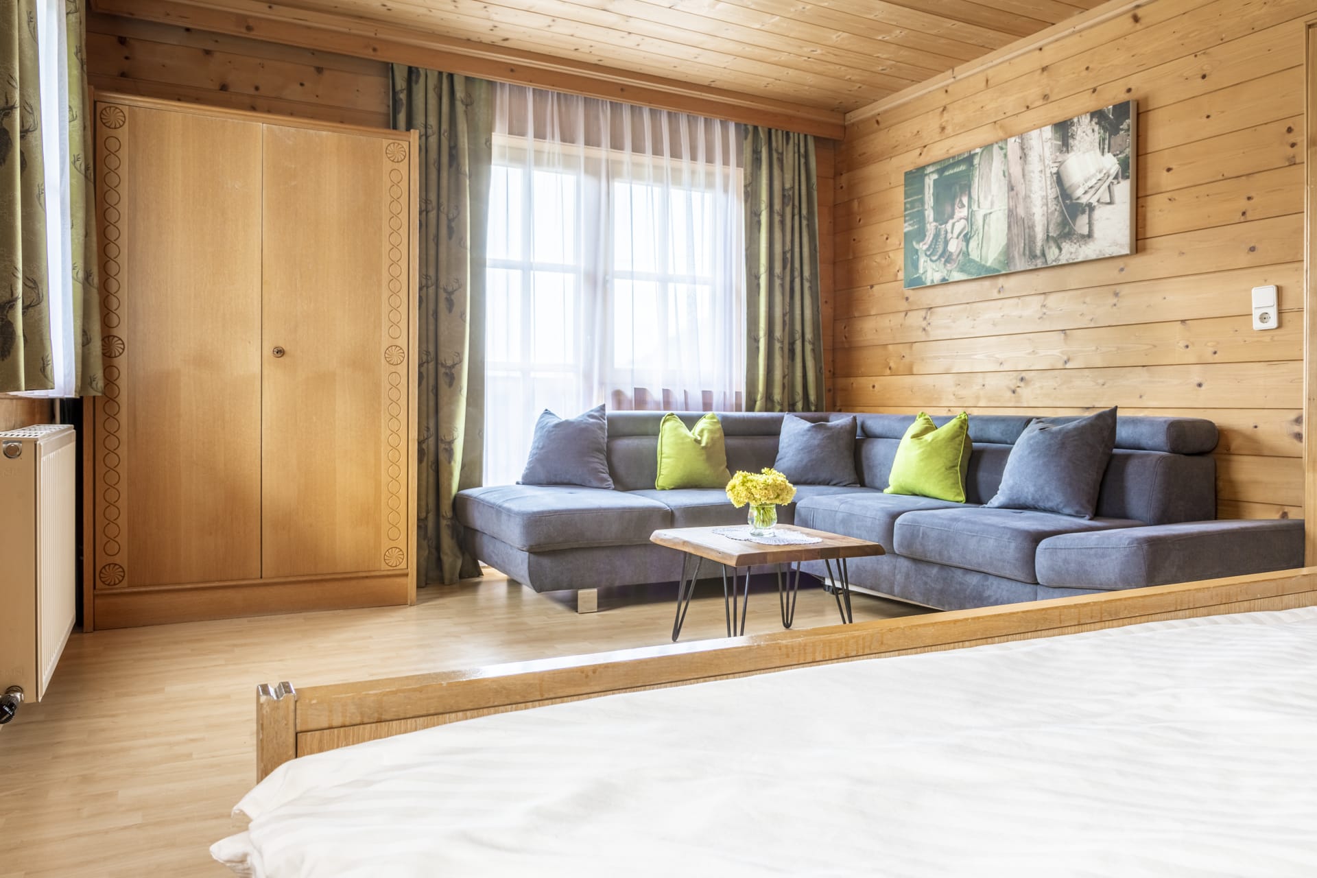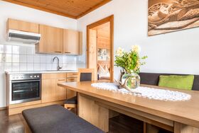 Die Ferienwohnung bietet auf 59 m² Platz für bis zu 4 Personen. Freut euch auf eine gut ausgestattete Wohnküche, ein Schlafzimmer mit Doppelbett, ein Schlafzimmer mit Doppelbett und Ausziehcouch, ein Bad mit Dusche und ein separates WC. Helle Räume und viel Holz sorgen für eine gemütliche Wohnatmosphäre. Vom großen Balkon genießt ihr die Aussicht auf den Hochkönig.