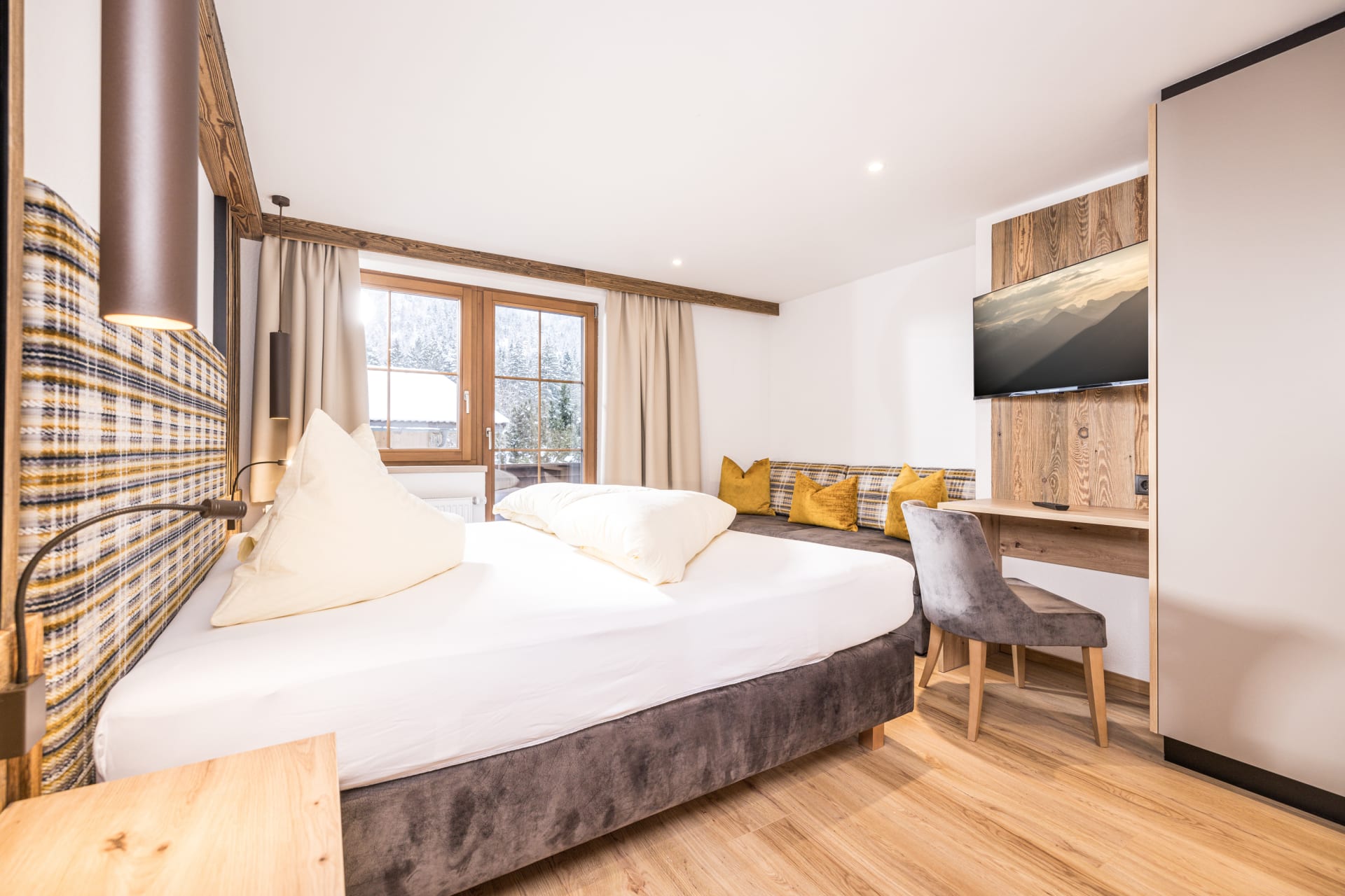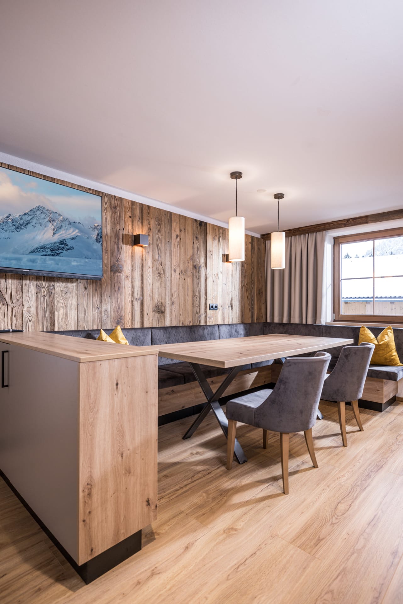 Großräumiges Appartement im edlen Tiroler Holzdesign. Drei großzügige Schlafzimmer mit gemütlichen Doppelbetten, Schreibtisch, Flat-TV und komfortable Wohn-Schlaf Couch. Zwei Badezimmer mit begehbarer Dusche und WC, Fön, Handtüchern und Naturpflegeprodukte. Voll ausgestattete Wohnküche mit gemütlicher Essecke, Couch und großem Flat-TV, großer sonniger Balkon mit Blick auf den Berg Seekar und wunderbaren Bergpanorama. Freie W-Lan Benützung. Das Appartement Enzian wurde mit hochwertigen Naturmaterialien ausgestattet und besticht durch sein gemütliches und warmes Flair. Durch die sehr großzügige räumliche Aufteilung eignet sich das Appartement Enzian perfekt für Urlaube mit großen Familien, Freunden und Paaren und ermöglicht somit eine unvergessliches und erholsames Urlaubserlebnis am Achensee.