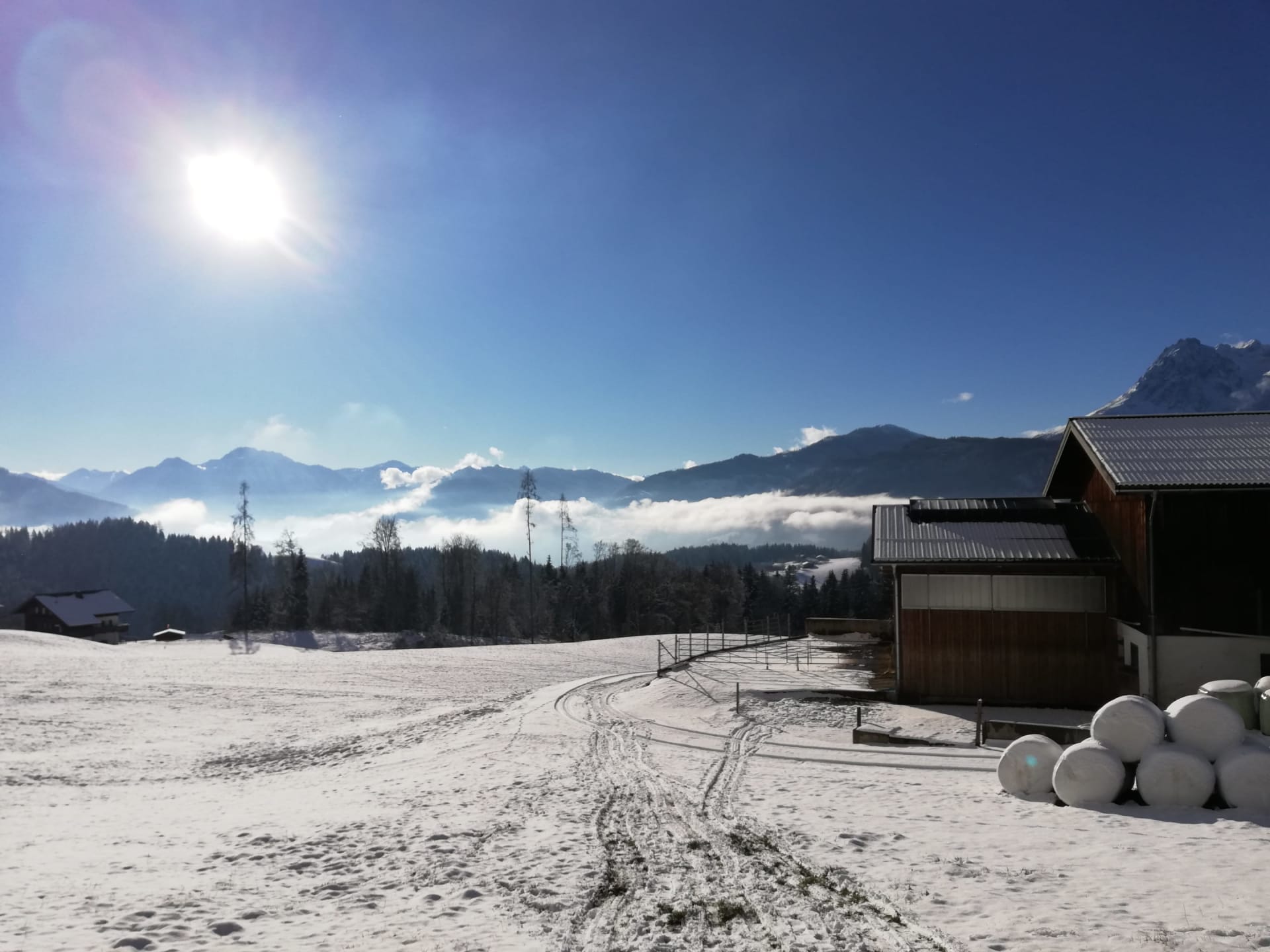 Im Winter können die Kinder den Hang in unserer Wiese mit dem Schlitten runter sausen, während die Erwachsenen die Langlaufloipe – welche direkt an unserem Hof vorbeigeht – ausprobieren. Direkt bei unserer Einfahrt befindet sich auch eine Skibushaltestelle, welche Sie bequem zur Skipiste und wieder retour bringt – natürlich kostenlos.