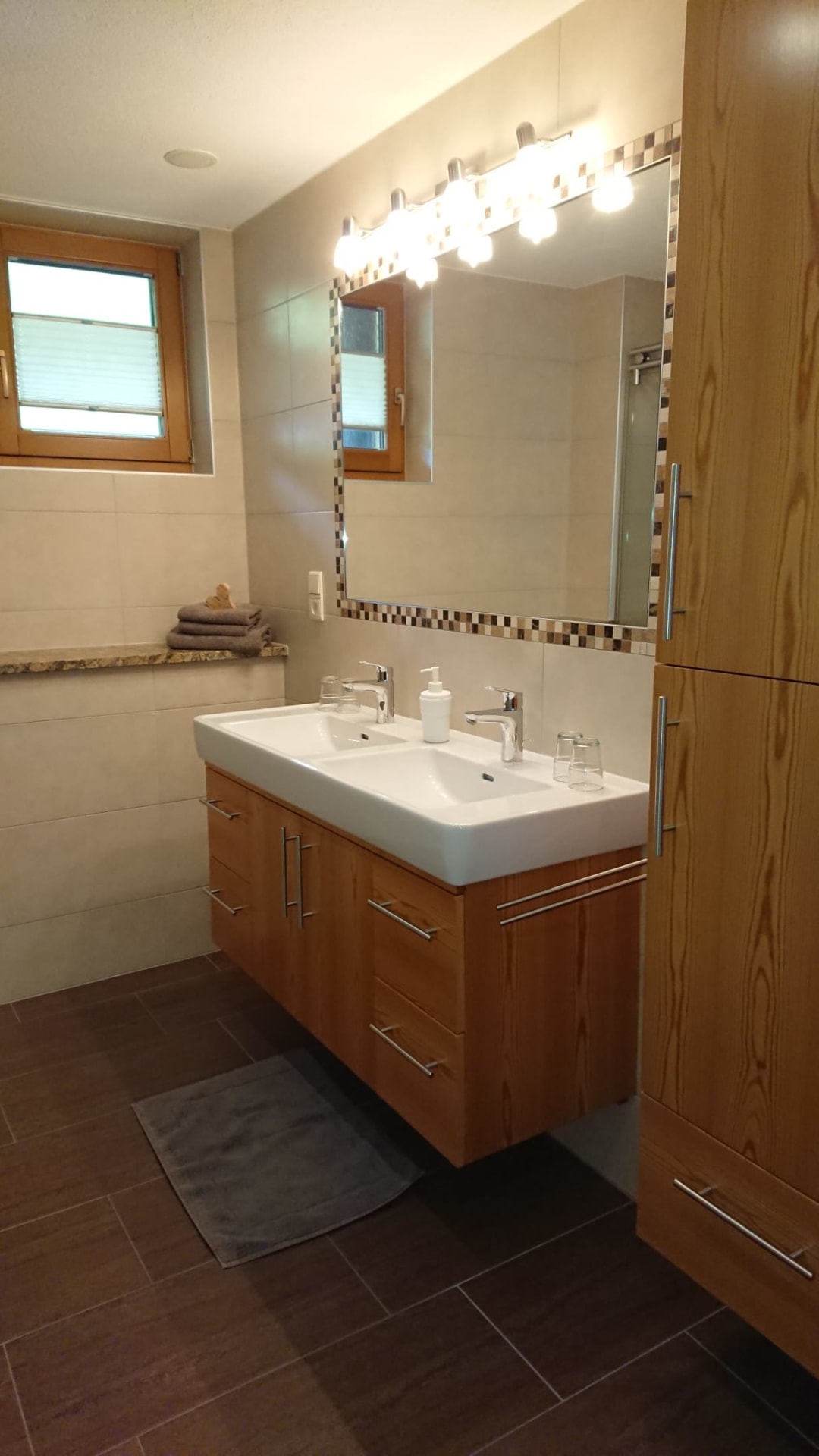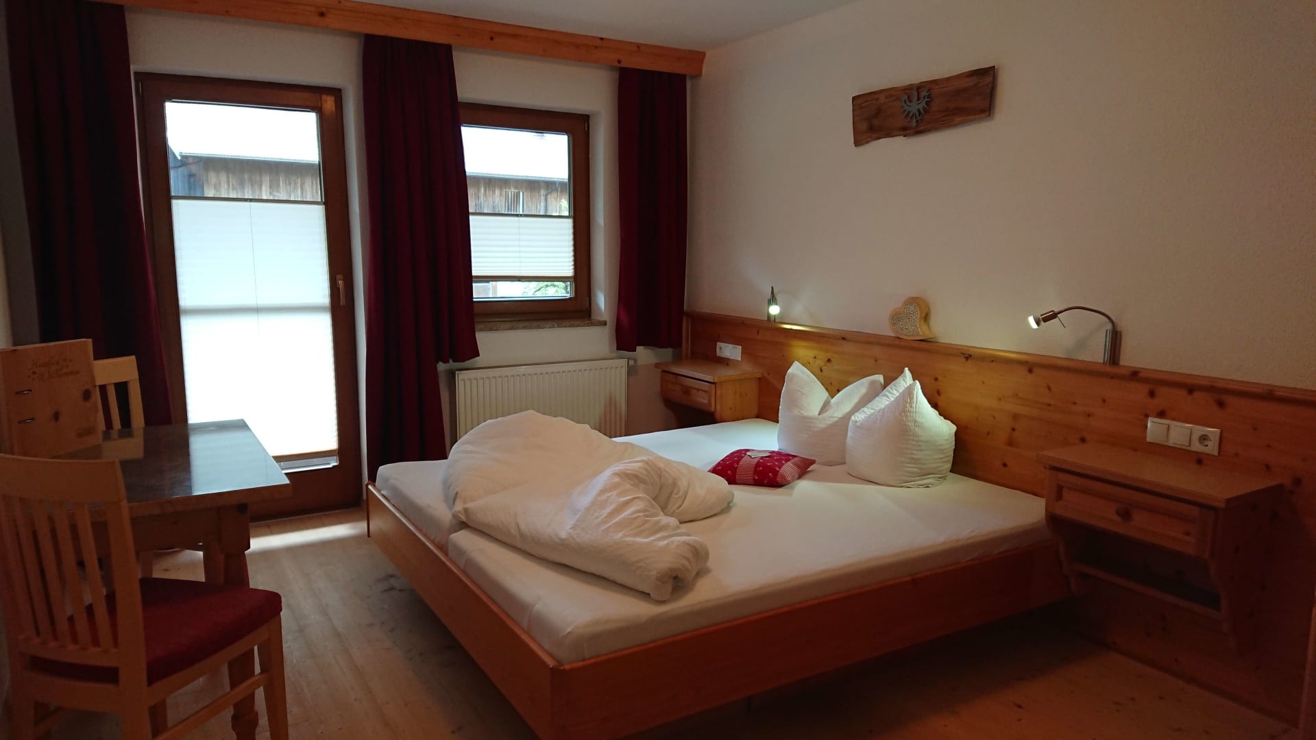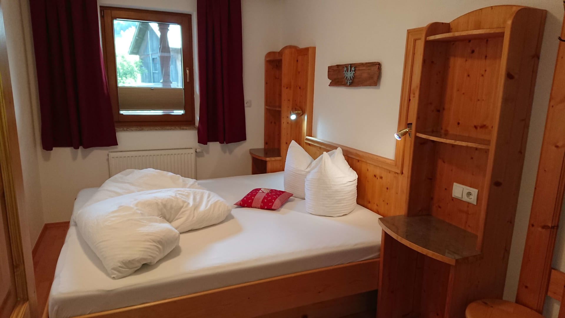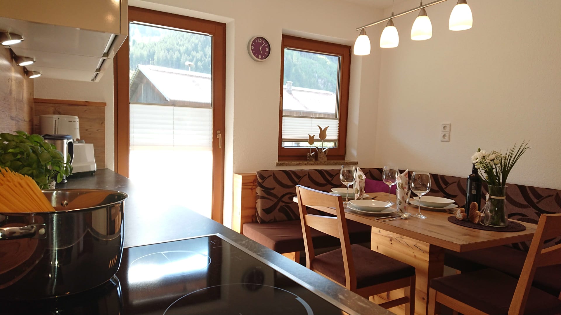 Ferienwohnung Tirol unsere sonnendurchflutete Ferienwohnung. Die Wohnung ist im Landhausstil eingerichtet und bietet genügend Platz. Insgesamt ist die Wohnung mit 3 Schlafzimmern ( 2x Doppelbett, 1x Doppelbett und Stockbett), einem Badezimmer (Doppelwaschbecken, Dusche und Badewanne), einem separaten WC, einer Küche und einer gemütlichen Essecke ausgestattet. Vom Balkon aus sieht man direkt auf die Zillertaler Berglandschaft.