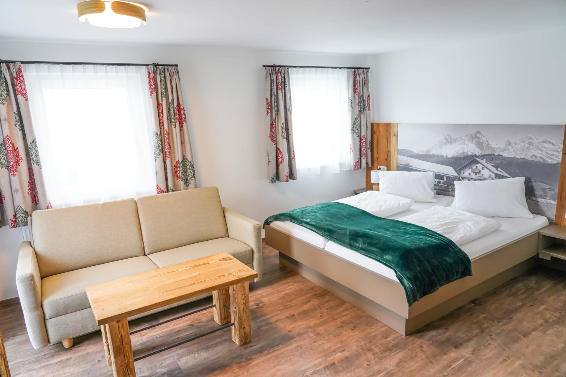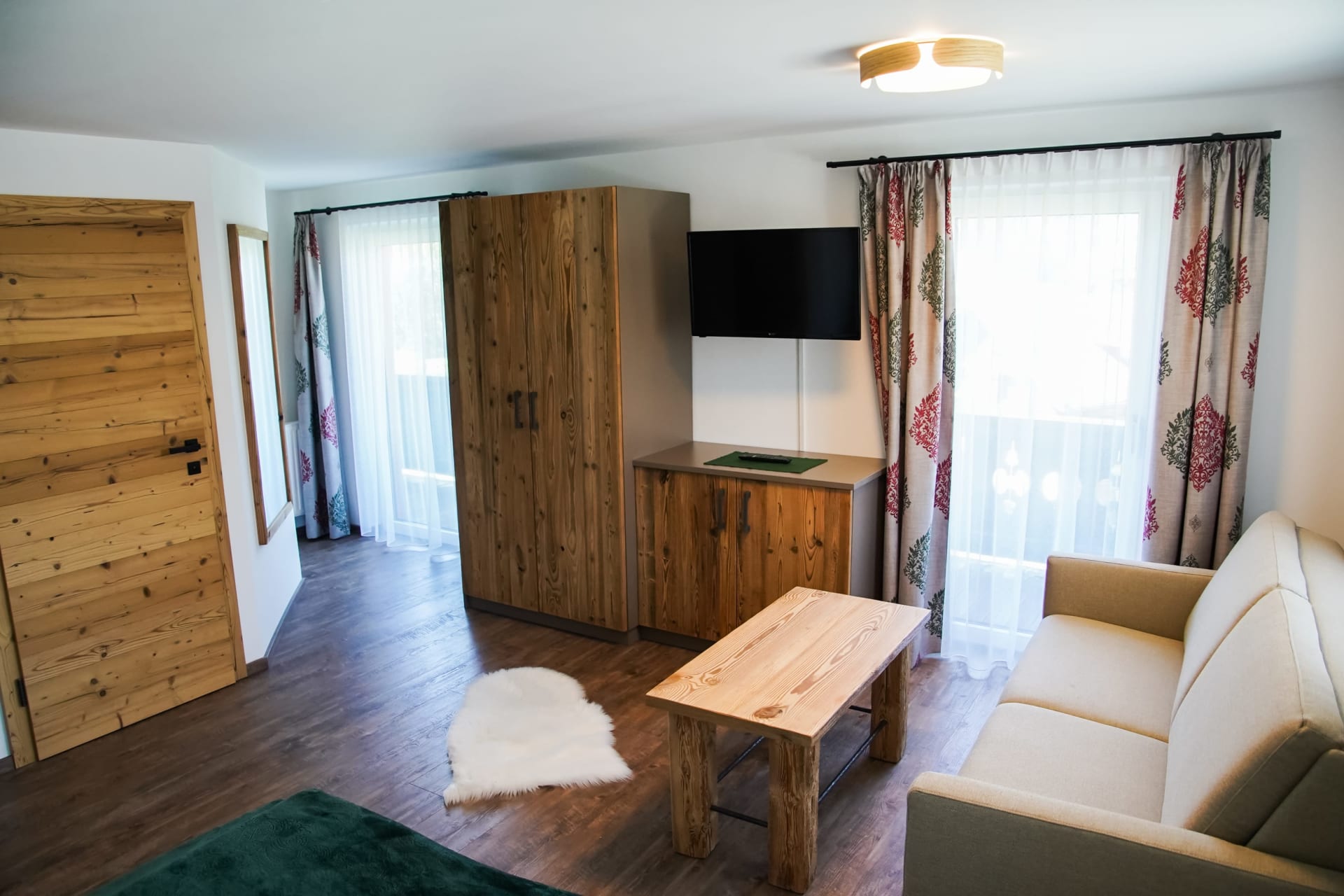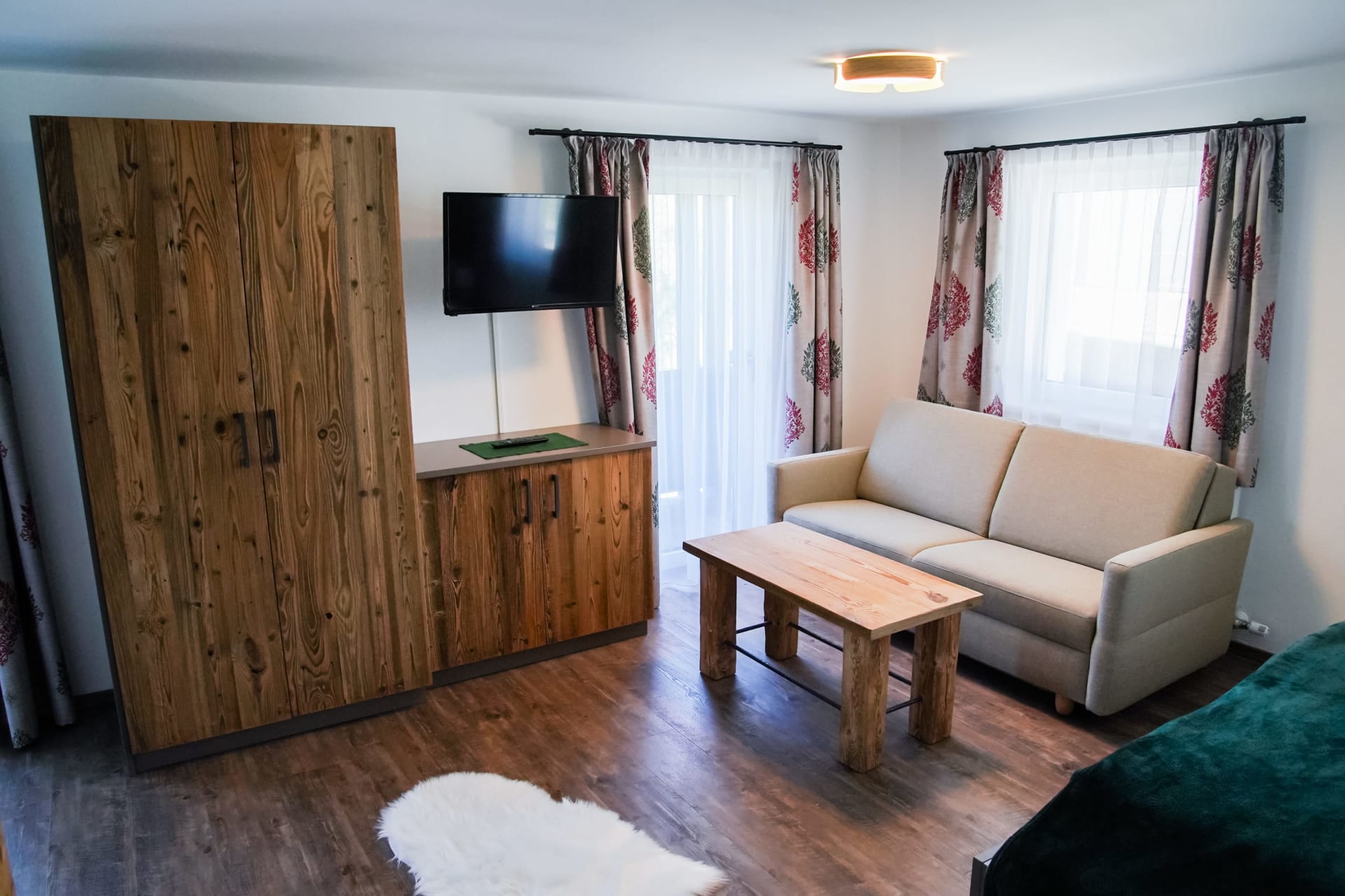 Das Appartement Hundstein befindet sich im 1. Stock unseres Bauernhauses und bietet auf 70 m² Platz für bis zu 6 Personen. Freut euch auf