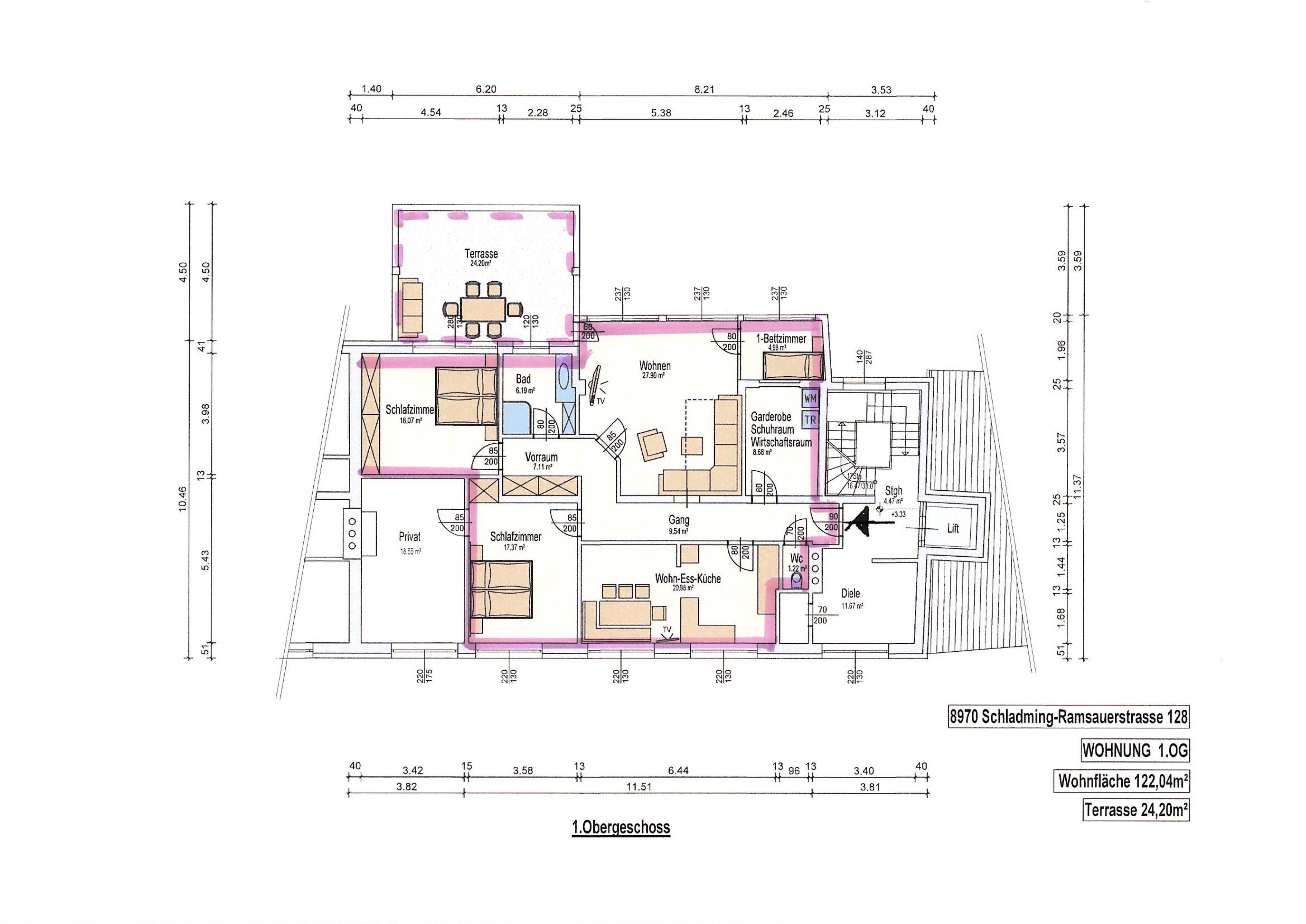 Für 4 – 6 Personen, 122m² Wohnfläche, 2.OG