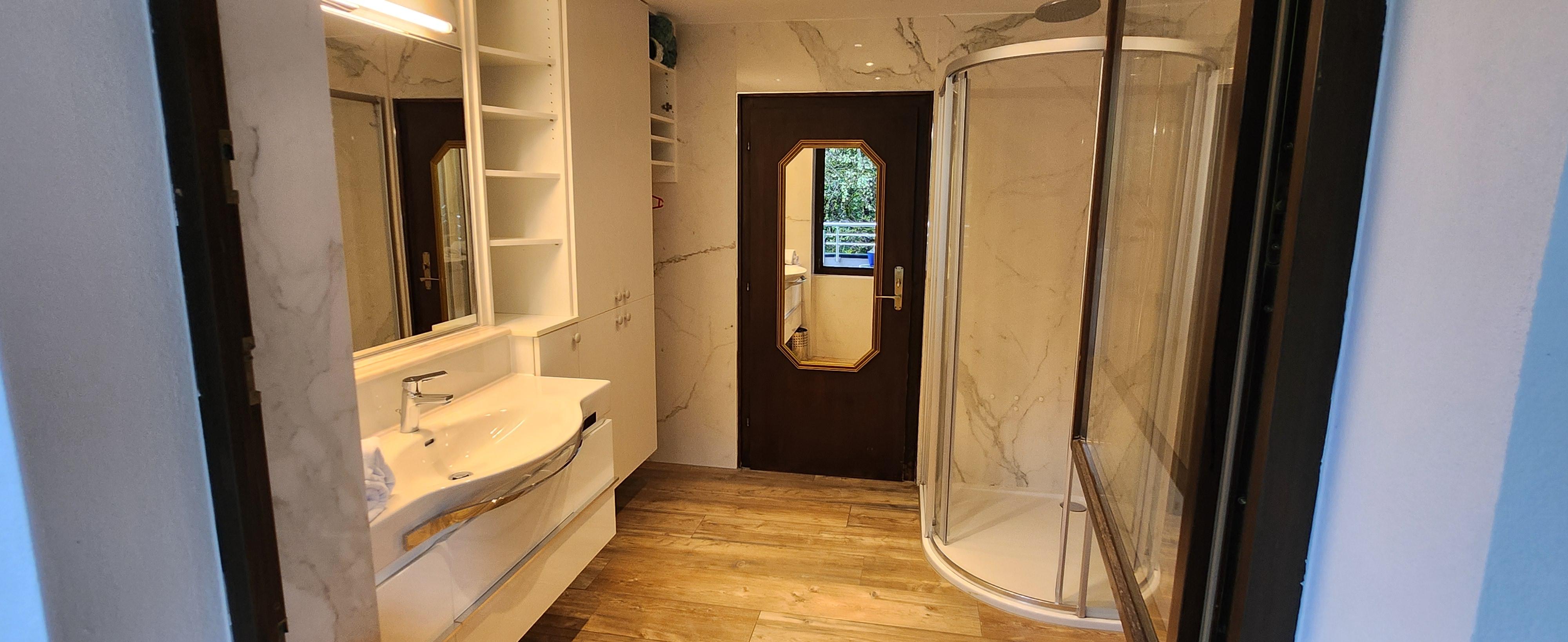 Mit 122 m² bietet das Appartement Platz für bis zu 6 Personen – ob Familien, Gruppen oder befreundete Paare, die gemeinsam die Berge entdecken wollen. Zwei gemütliche Doppelzimmer und eine praktische Schlafcouch bieten allen genug Raum, um nach einem aufregenden Tag abzuschalten und zu entspannen. Das moderne Badezimmer und das separate WC garantieren zusätzlichen Komfort.