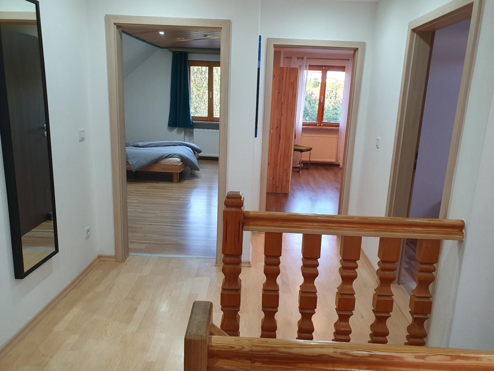 Unser Ferienhaus mit 90 m² Wohnfläche über zwei Etagen bietet Platz für 2-5 Personen. Das gemütliche Wohnzimmer mit Schlafsofa und Flachbild-TV lädt zum Verweilen ein. Die komplett ausgestattete Küche mit Kühlschrank, Backofen, Herd, Kaffeemaschine, Wasserkocher, Toaster, Mikrowelle und Geschirrspülmaschine lässt keine Wünsche offen. Das Ferienhaus verfügt über 3 Schlafzimmer (2 Doppelzimmer und 1 Einzelzimmer). Das geräumige Badezimmer mit Fenster, WC und Dusche und eine separates WC runden das Gesamtbild ab. Ein Spielezimmer für Kinder mit Schlafcouch und Schreibtisch lassen keine Wünsche offen. Zum Reinigen der Kleidung stehen eine Waschmaschine und ein Trockner im Haus zur Verfügung. Vor allem im Sommer können sie entspannte Grillabende (Gasgrill vorhanden) in unserem Garten verbringen. Bitte beachten sie, dass keine Haustiere erlaubt sind. Das WLAN und den Parkplatz vor dem Haus können sie kostenfrei nutzen.
