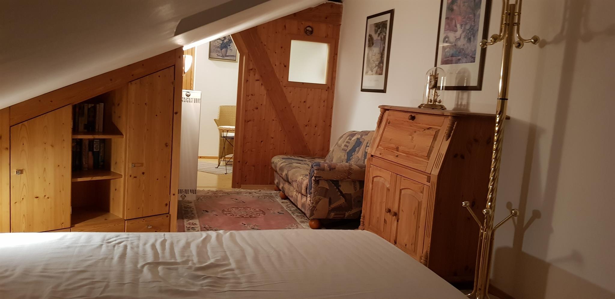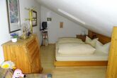Schlafzimmer 1 oben: großes Doppelbett, Sekretär,Ottomane(1,60x50cm), Sat-TV Flachbilds.