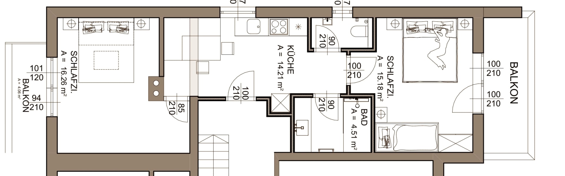 • beide Schlafzimmer mit Balkon (Richtung Ost / Richtung West)