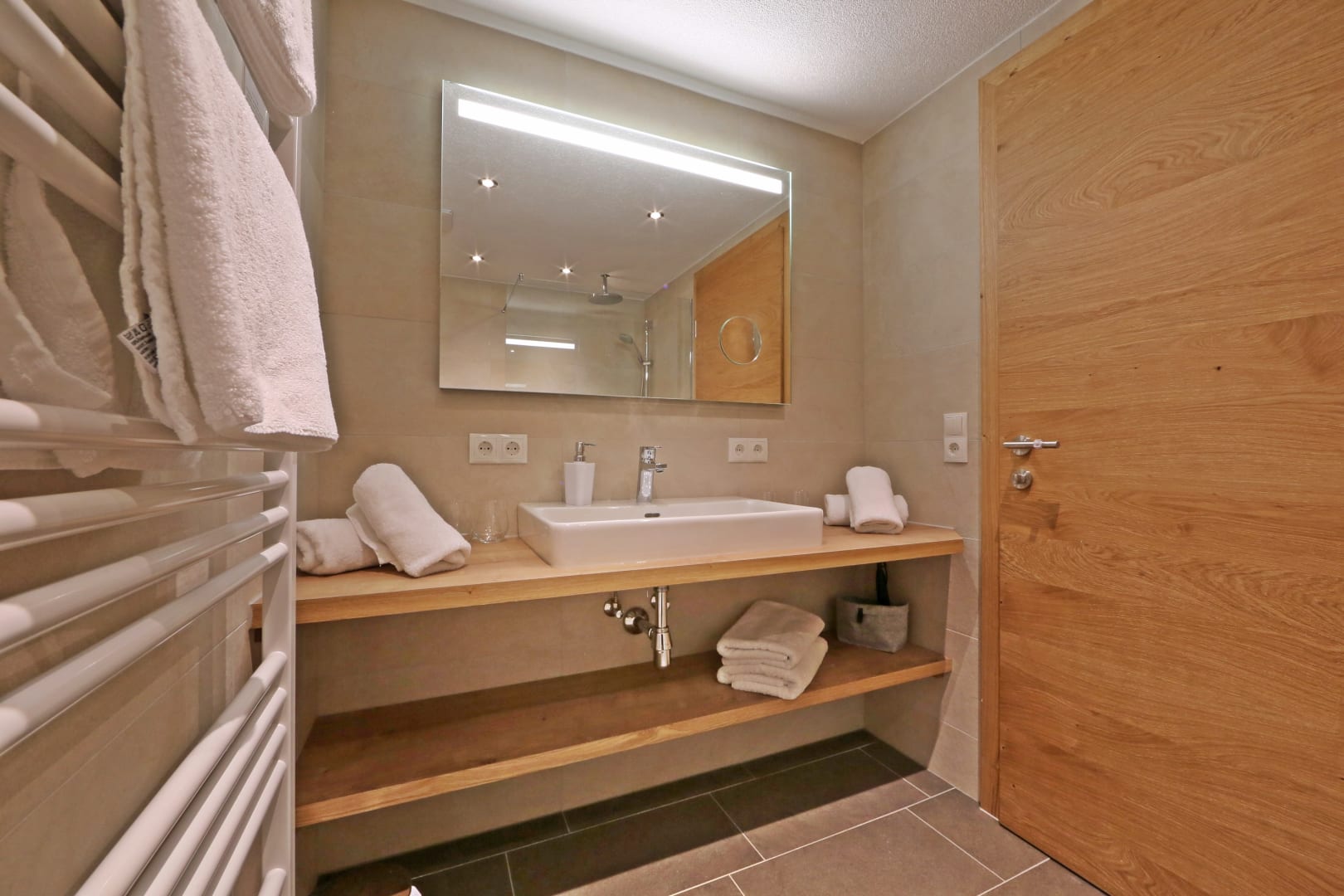 • geräumiges Badezimmer mit ebenerdiger Dusche