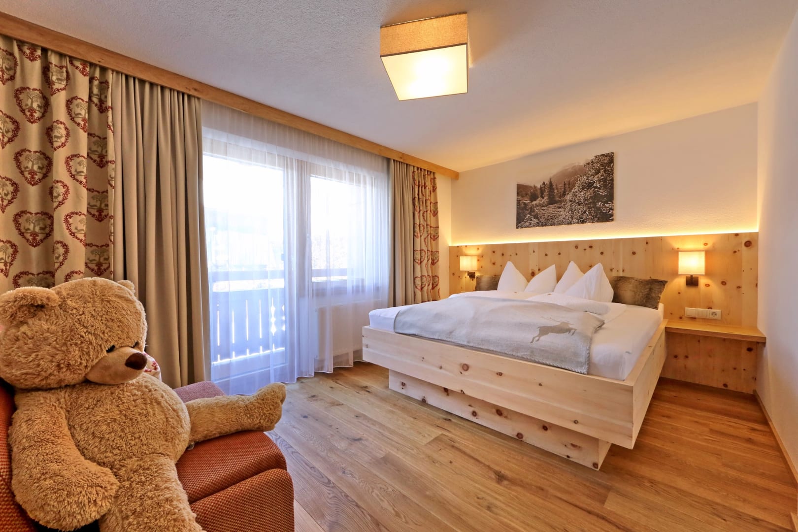 • 2 großzügige Schlafzimmer mit Zirbenbetten (bei einer Belegung von 2 Personen ist nur ein Schlafzimmer im Preis inkludiert) sowie Verdunkelungsvorhängen