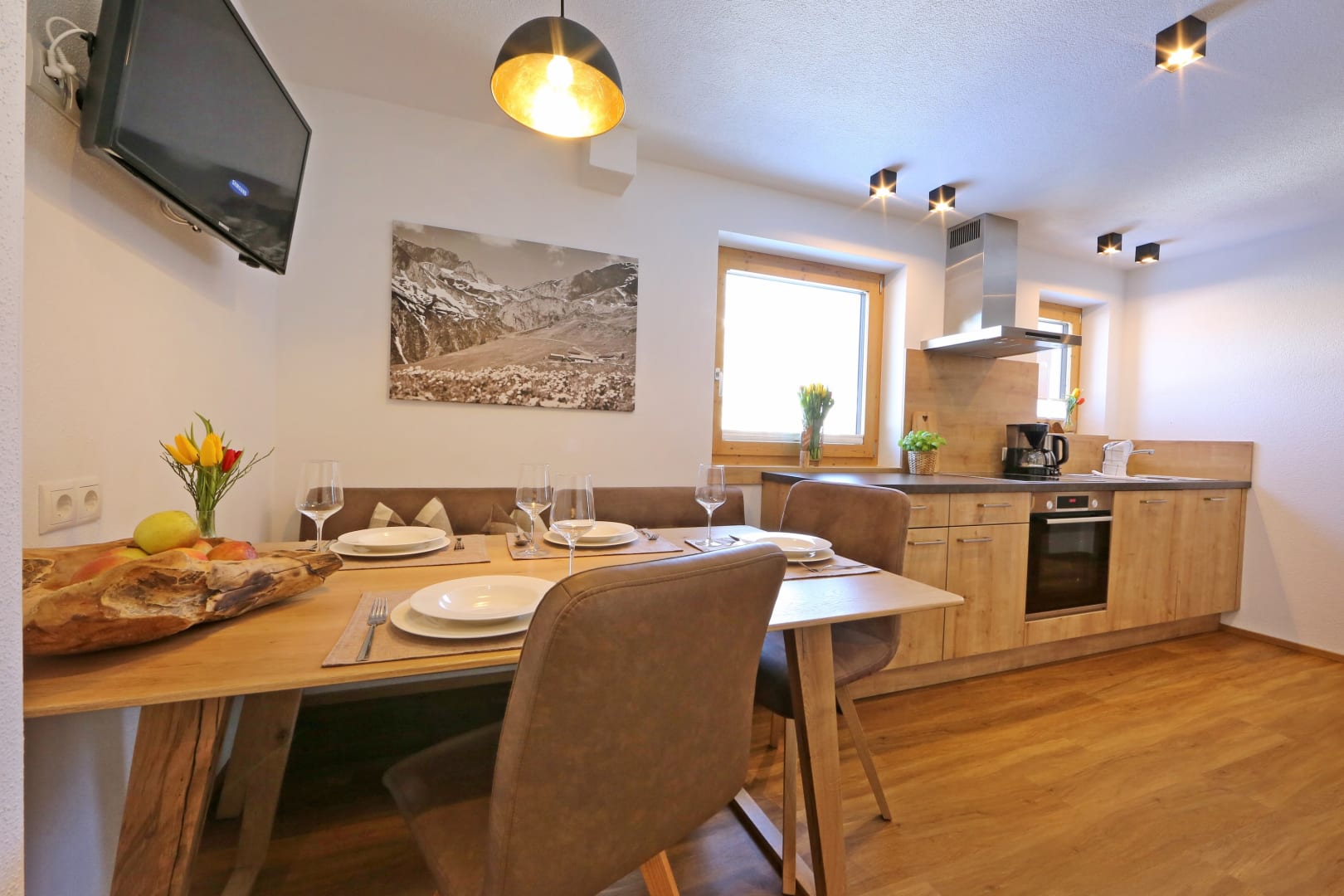 • moderne Wohnküche mit gemütlichem Essbereich und umfangreicher Küchenausstattung