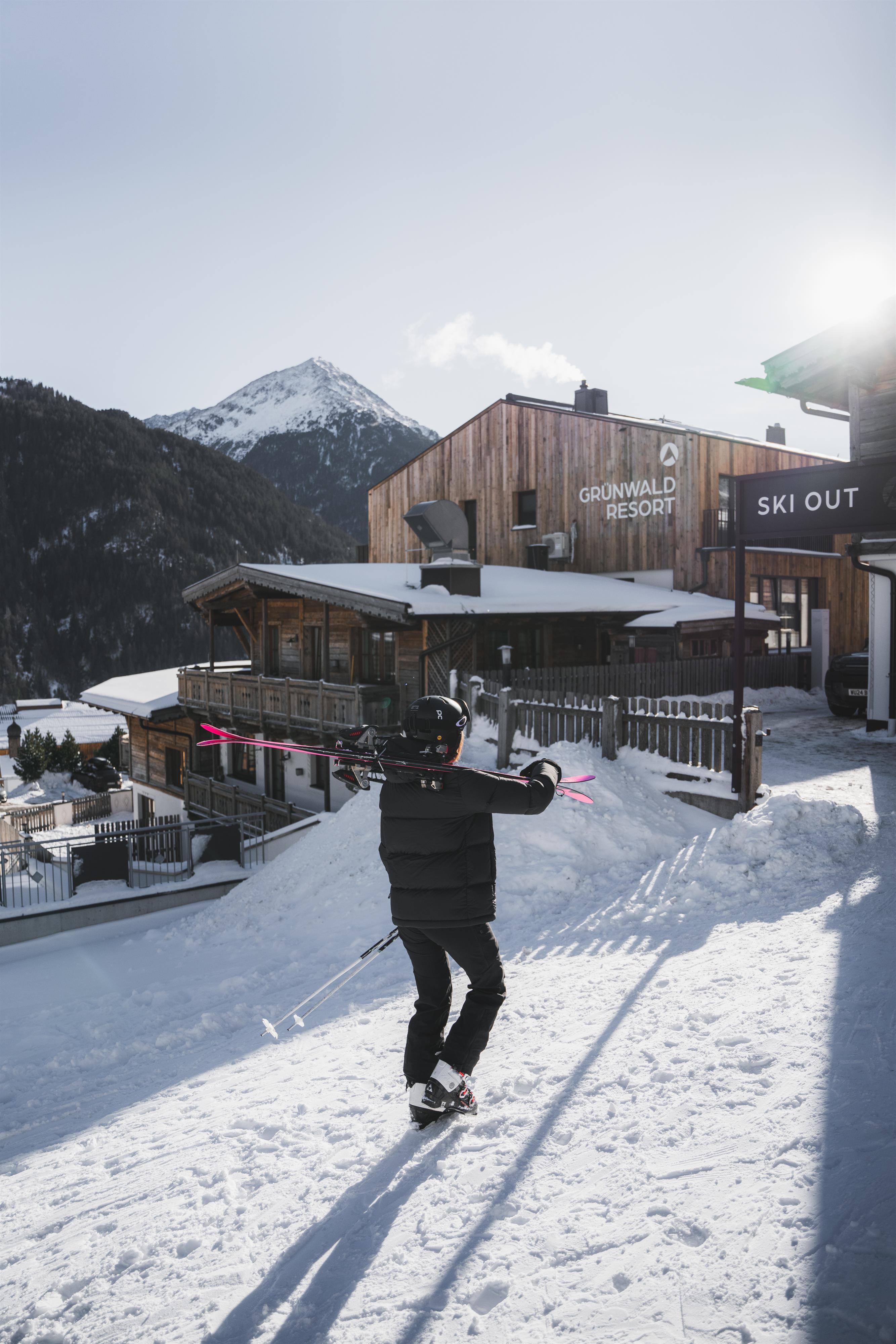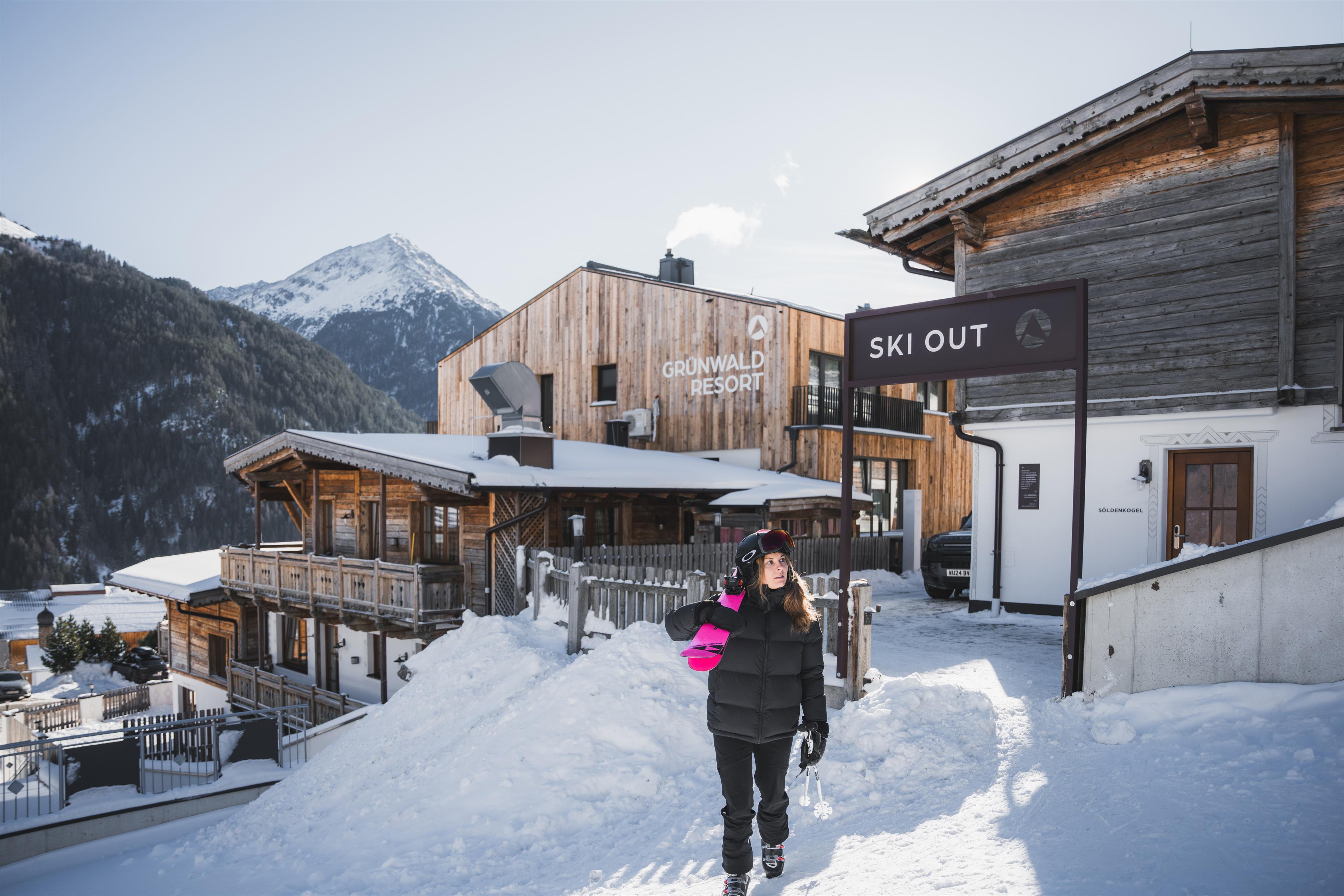 Die perfekte Ausgangslage sportlicher Aktivitäten umgeben von den markanten Bergmassiven Tirols, erhebt sich das Grünwald Resort auf einem Sonnenplateau 300 Meter hoch über den pulsierenden Ferienort Sölden. Wählen Sie aus unsere komfortablen Apartments oder unseren Superior Chalets mit eigener Sauna direkt an der Skipiste und mitten im Wandergebiet. Unser Après Ski und Restaurant der Panorama Alm verwöhnt Sie im Winter mit Tiroler Köstlichkeiten und dem hippsten Aprés Ski der Region.
