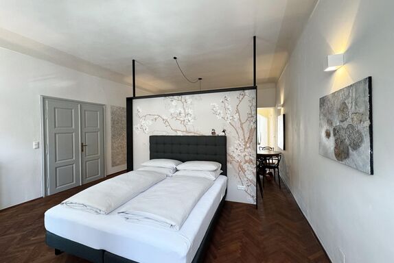 Willkommen in unserer Biedermeier Loft Suite, einer harmonischen Mischung aus historischem Charme und modernem Komfort. Diese luxuriöse Wohnung ist ideal für Paare oder Alleinreisende, die ein stilvolles Ambiente und eine zentrale Lage zu schätzen wissen. Sie können ihr Auto im Innenhof parken.