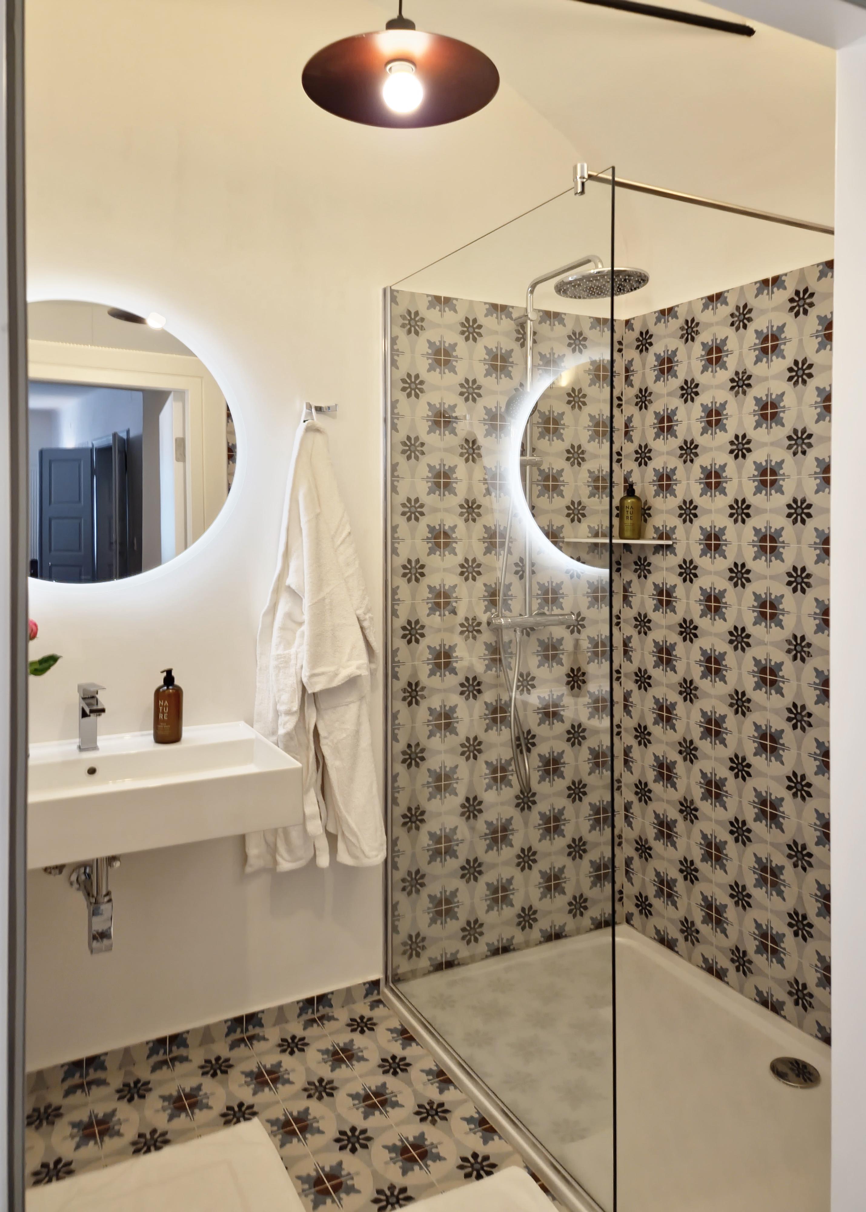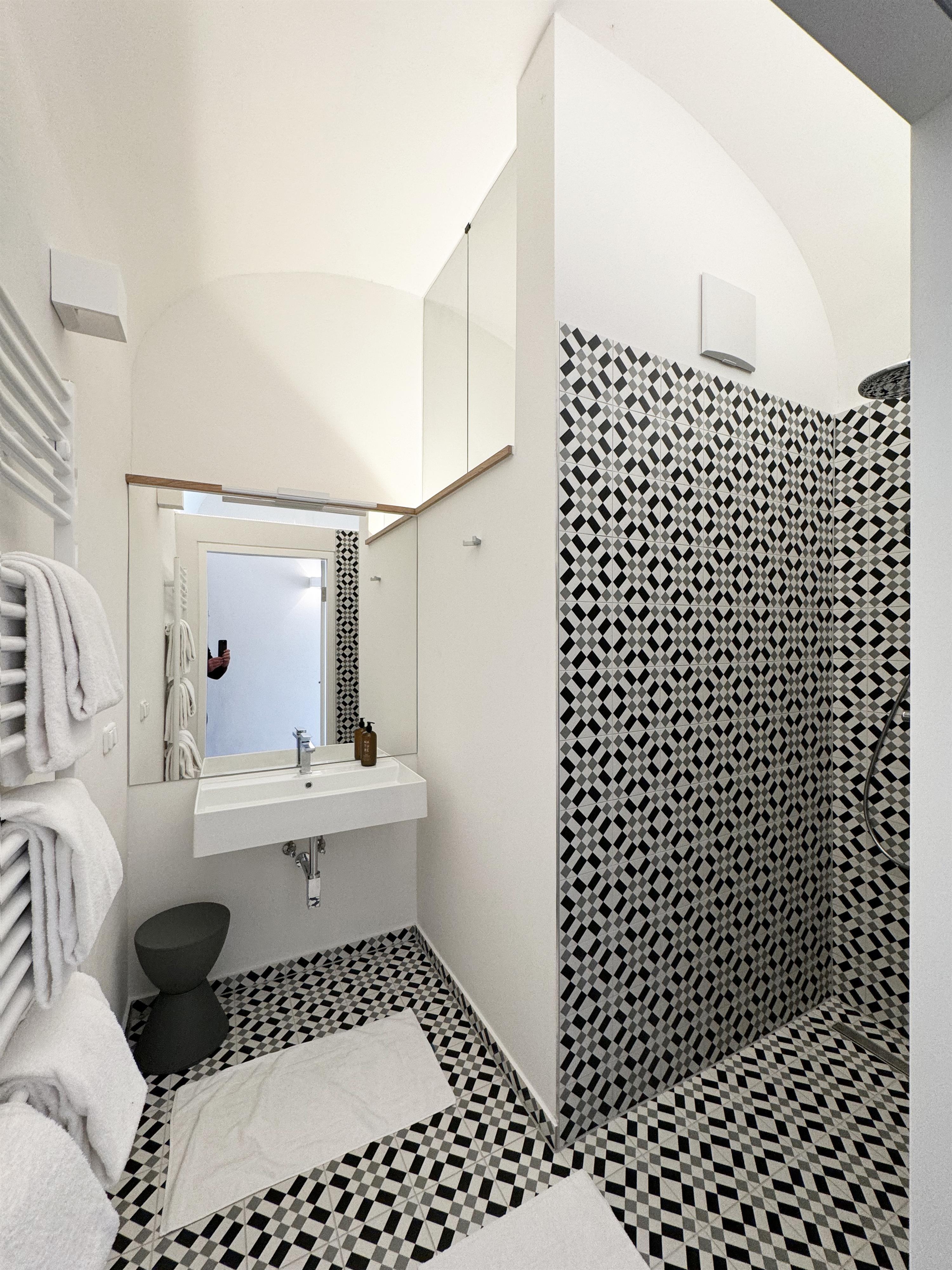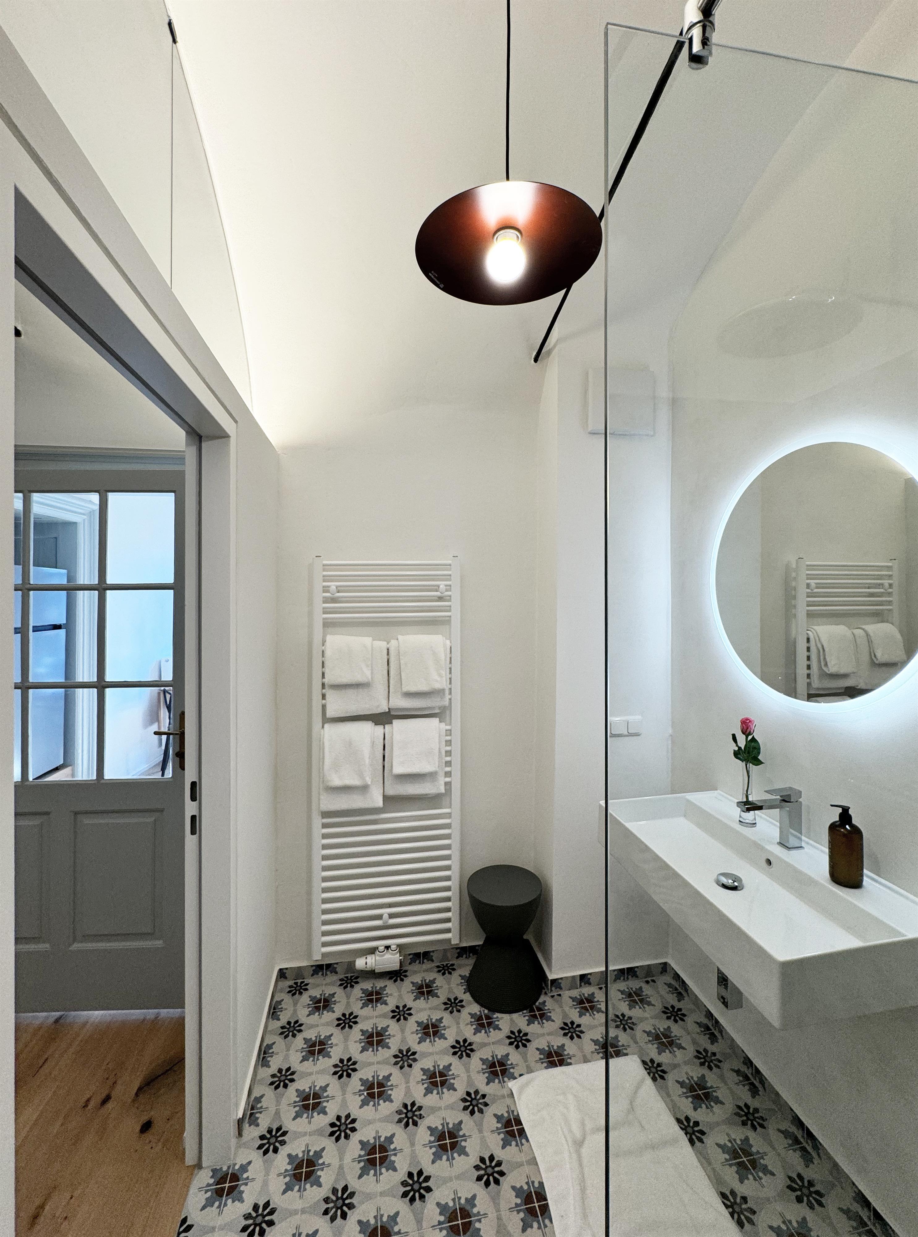 • Modernes Badezimmer mit Regendusche und hochwertigen Pflegeprodukten